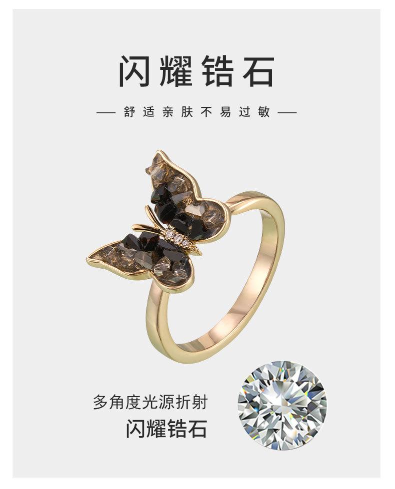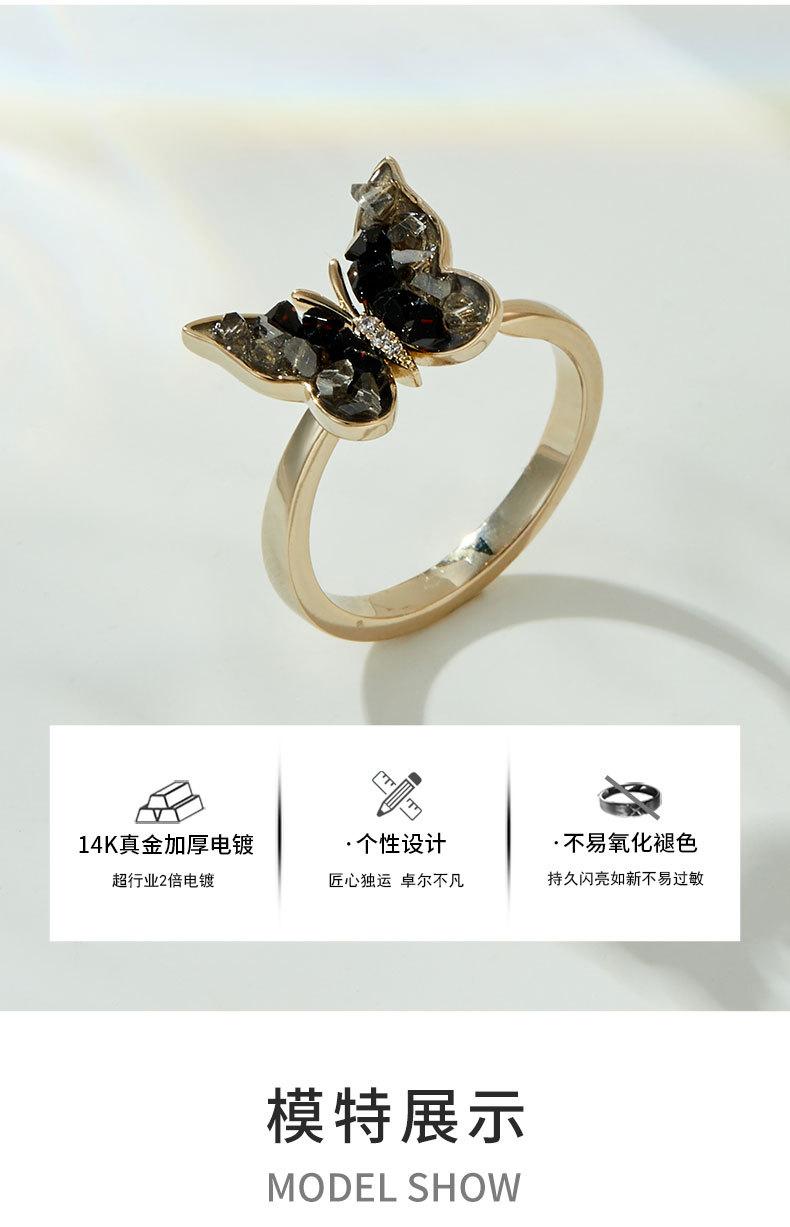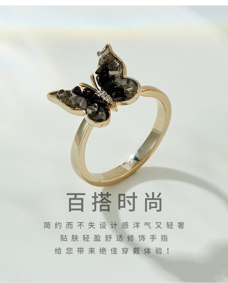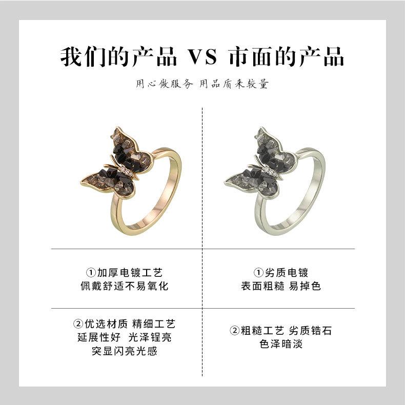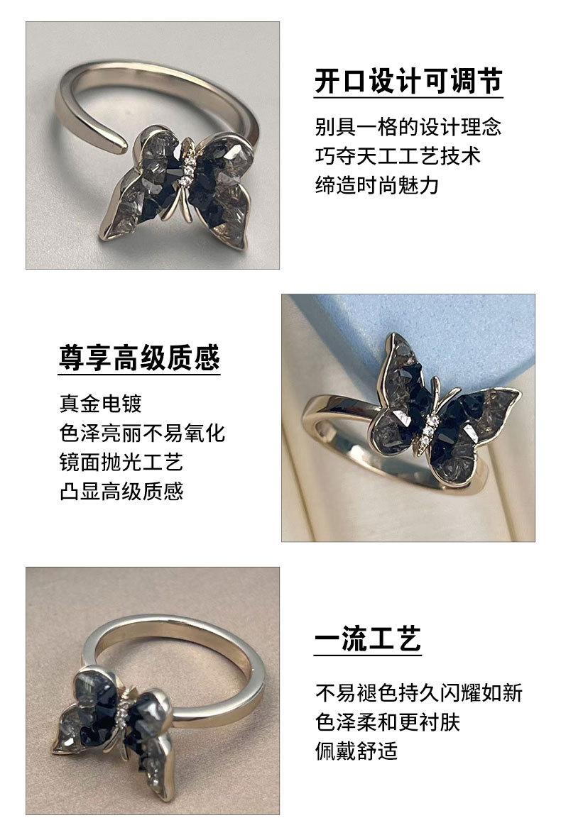 My mu yu new arrival black gradient crystal butterfly open ring, Women's adjustable ring