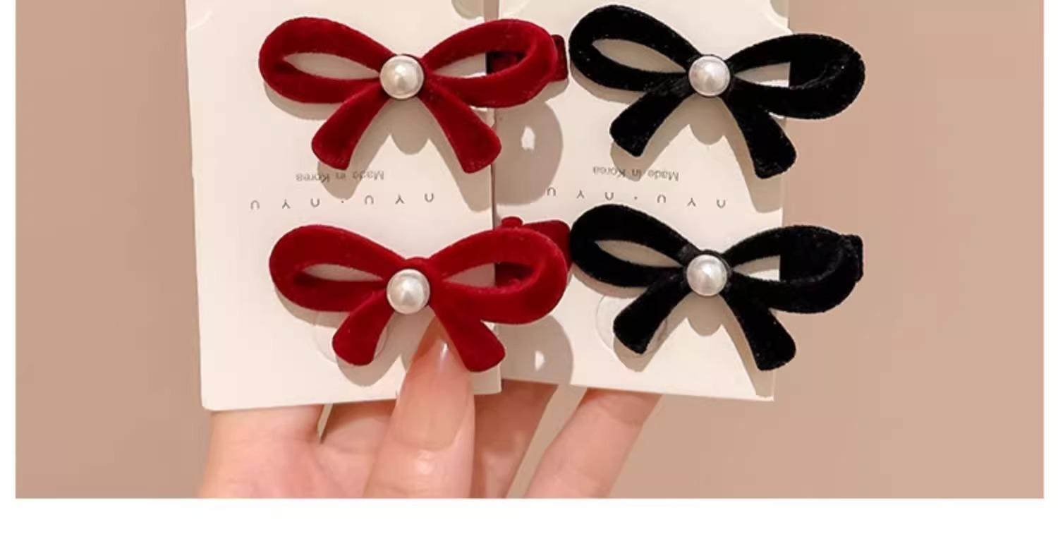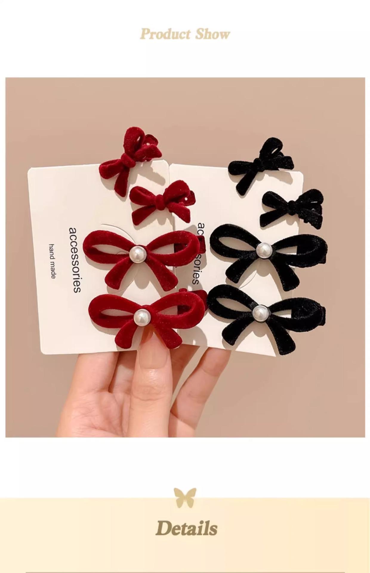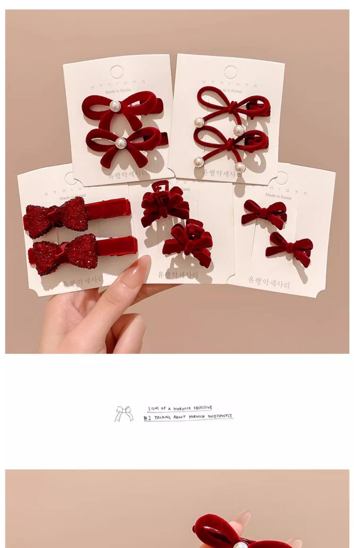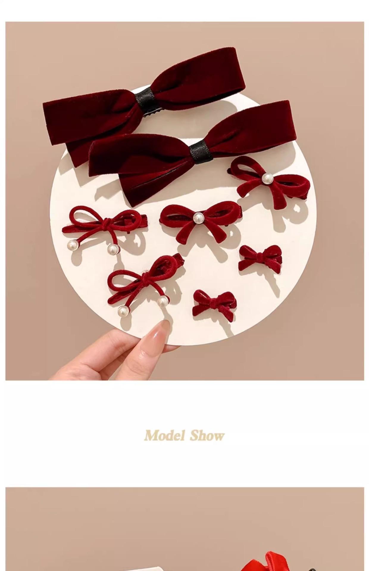 1#One pair of alloy black clips, 2#Alloy red clip, 6#Alloy burgundy bow hairpin-single, 7#Alloy black bow hair...