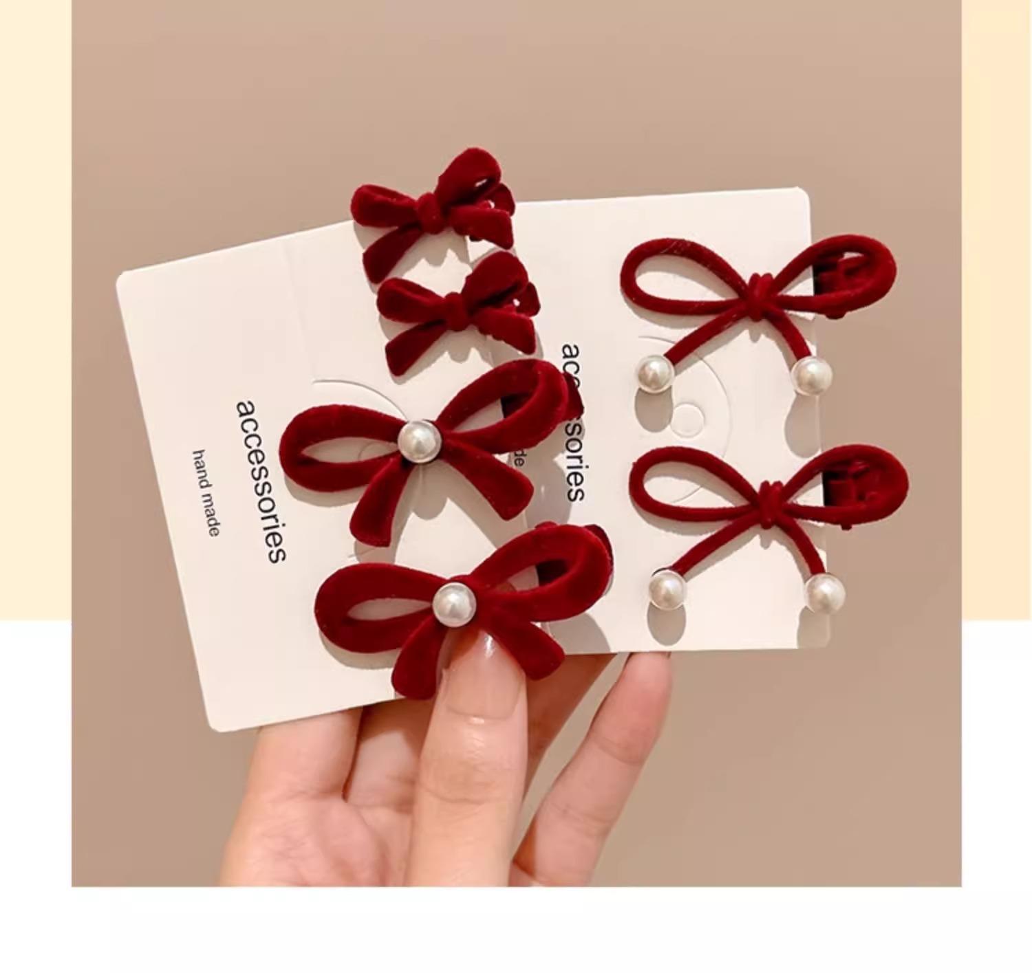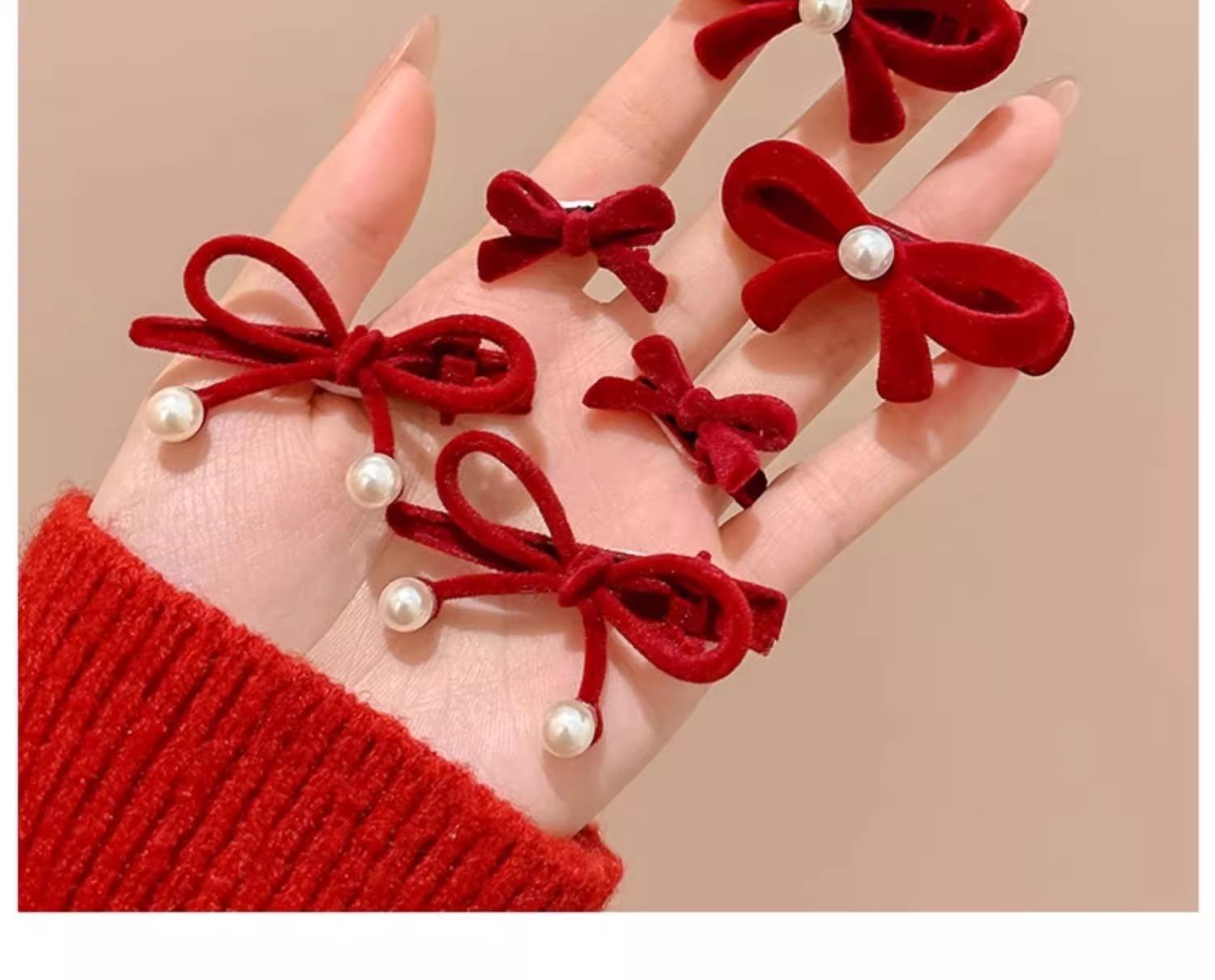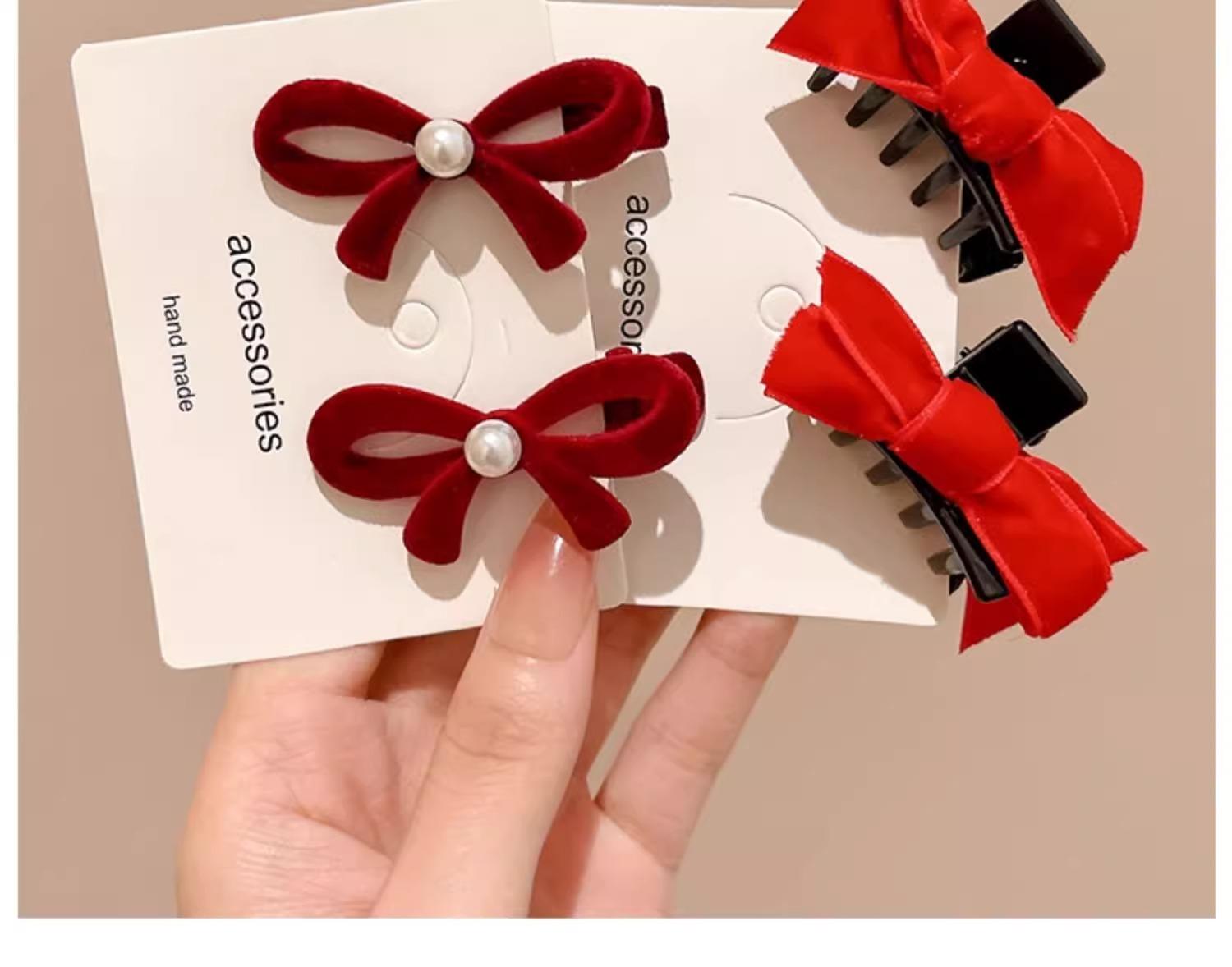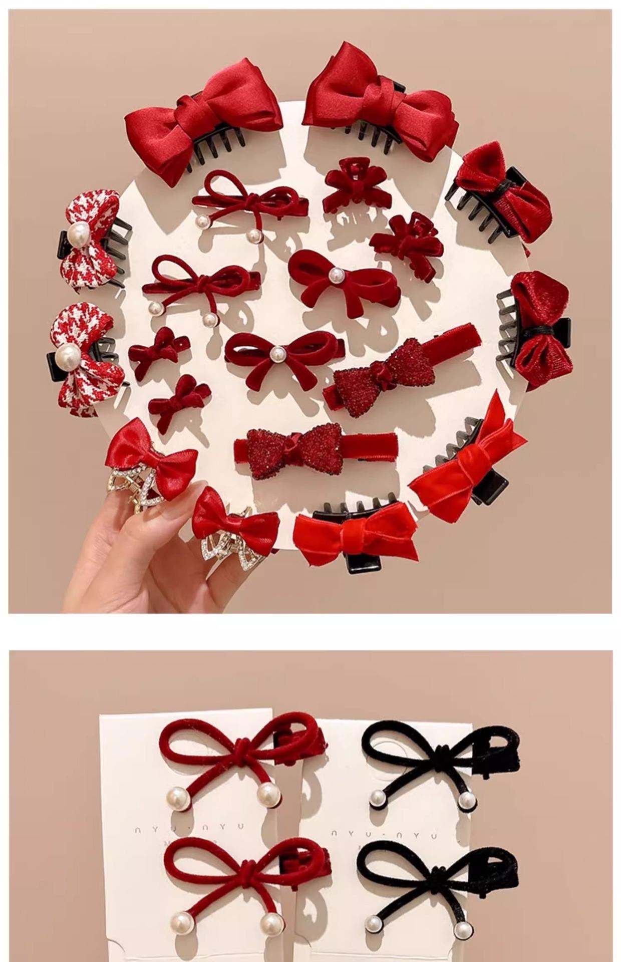 1#One pair of alloy black clips, 2#Alloy red clip, 6#Alloy burgundy bow hairpin-single, 7#Alloy black bow hair...