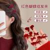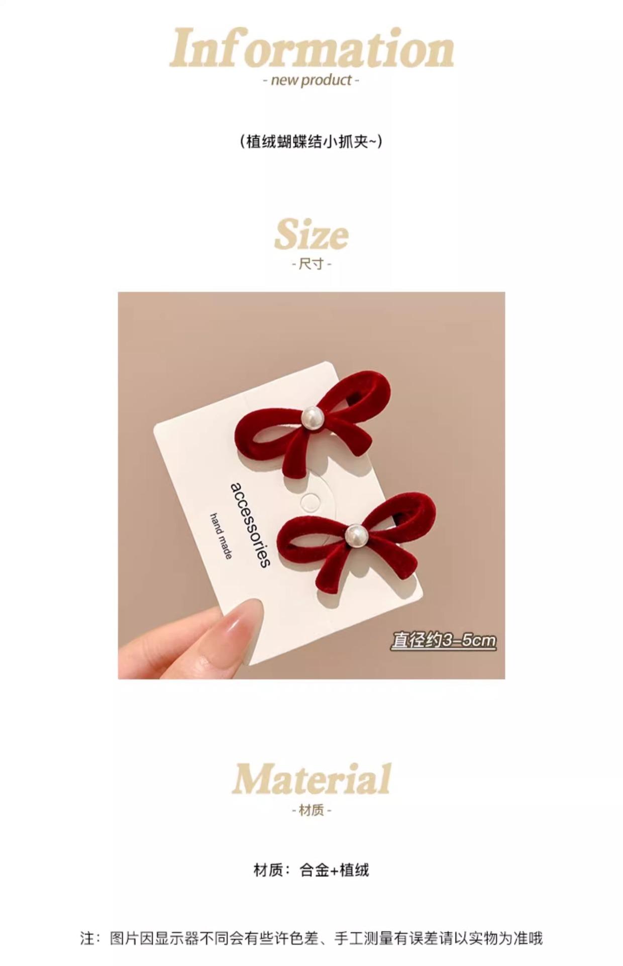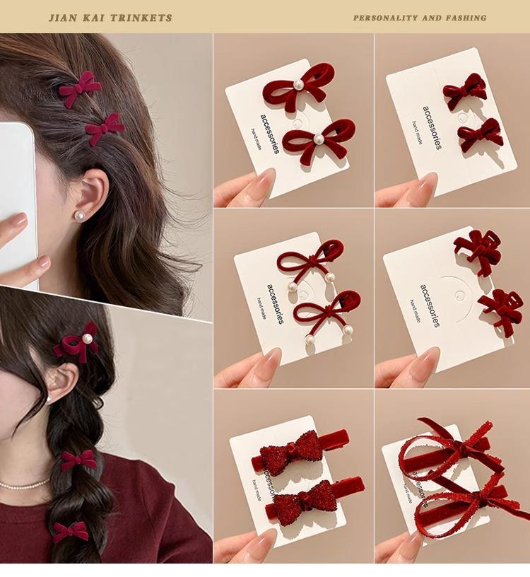 Moño Rojo Flocado Pasador Pequeño para el Cabello, Pinza de Pico de Pato de Alta Gama, Dulce Perla Flequillo Cabello Suelto, Pasador Lateral Accesorio para el Cabello