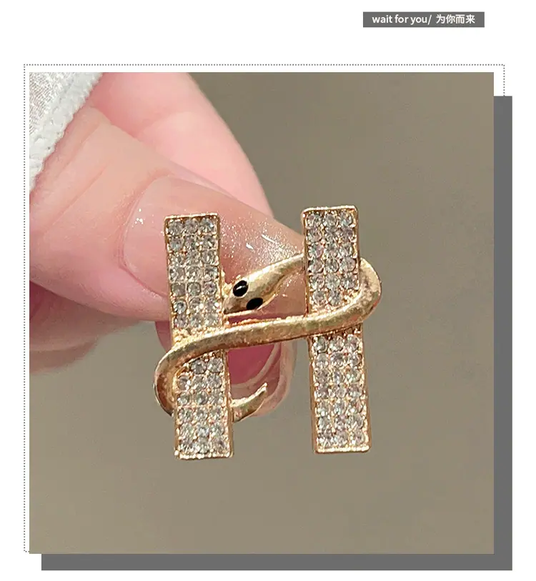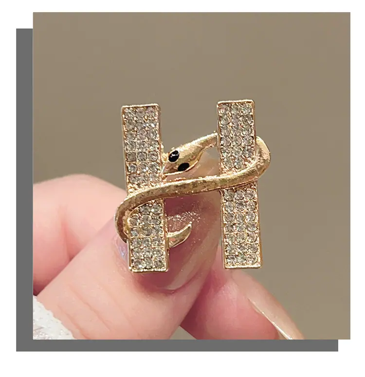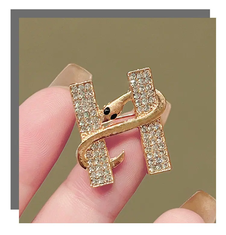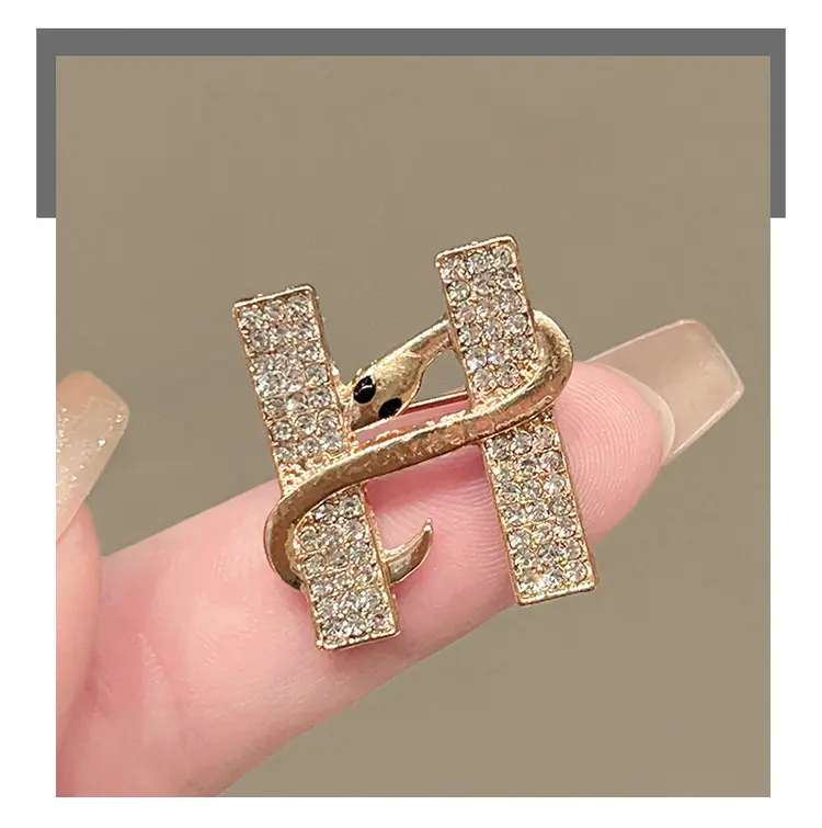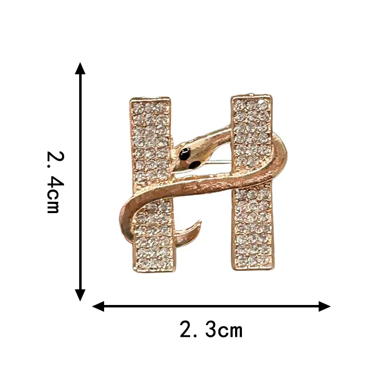 Broche de Serpiente Entrelazada con Diamantes Completos Letra H para Hombre y Mujer, Broche de Lujo Ligero de Alta Gama, Pin Exquisito para Adorno y Decoración de Ropa