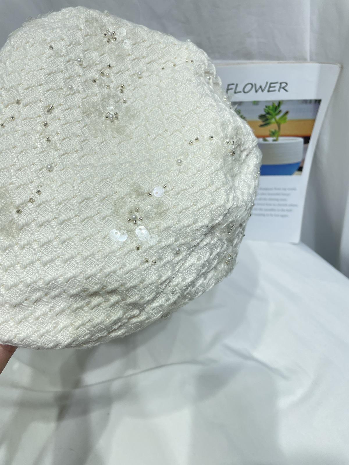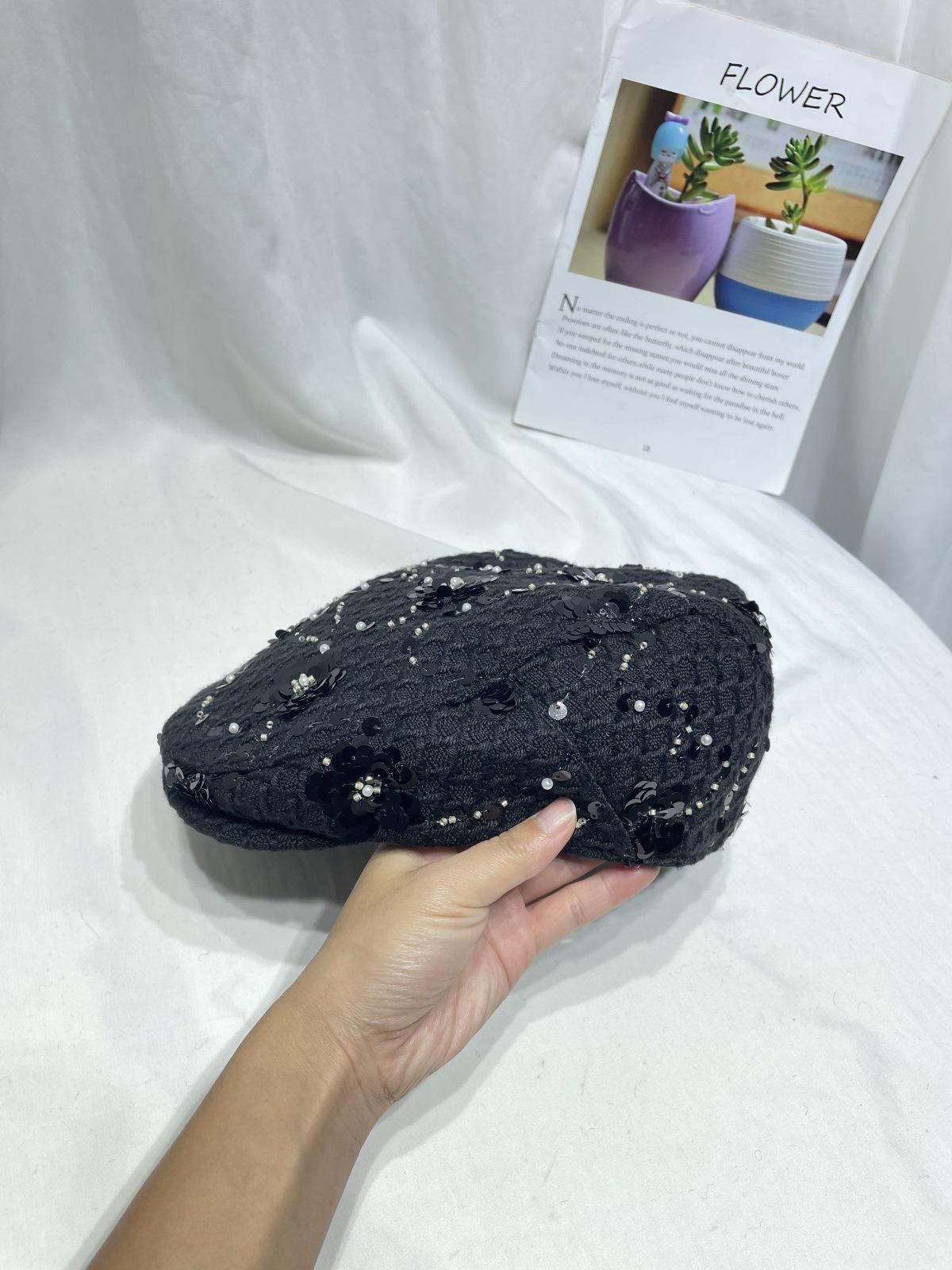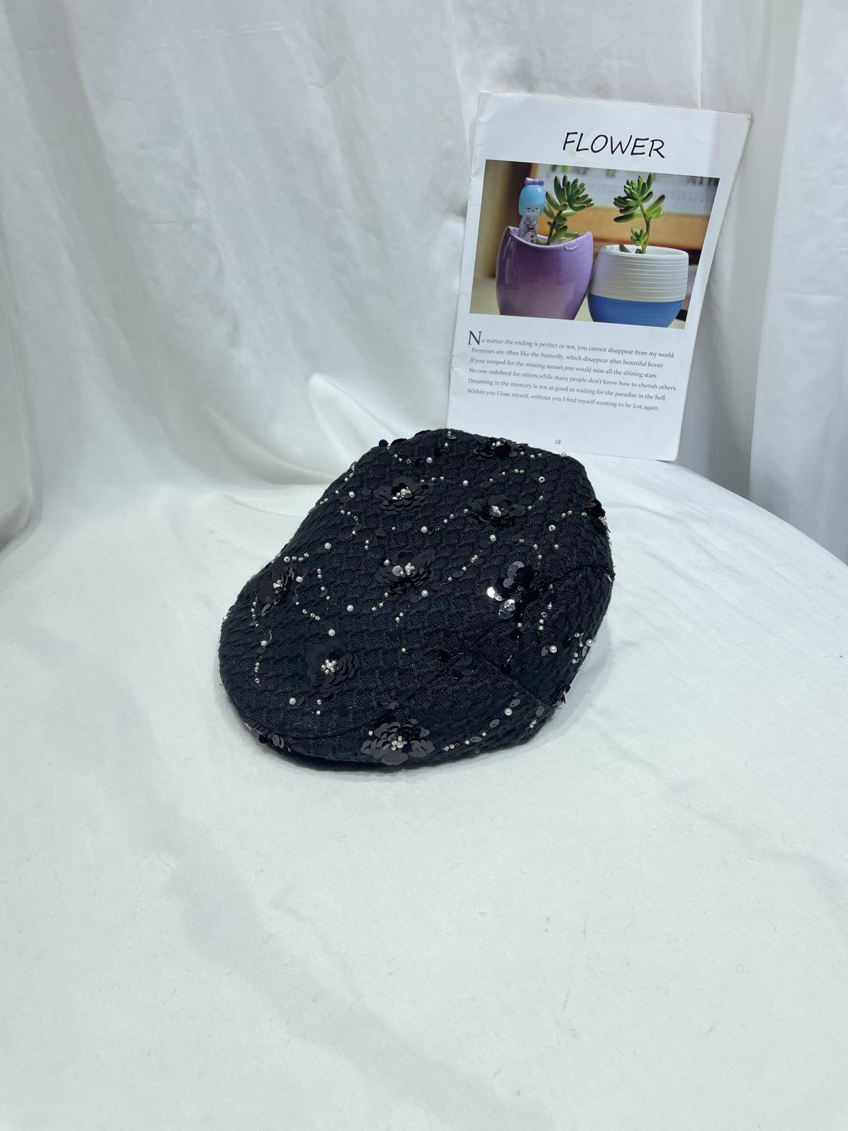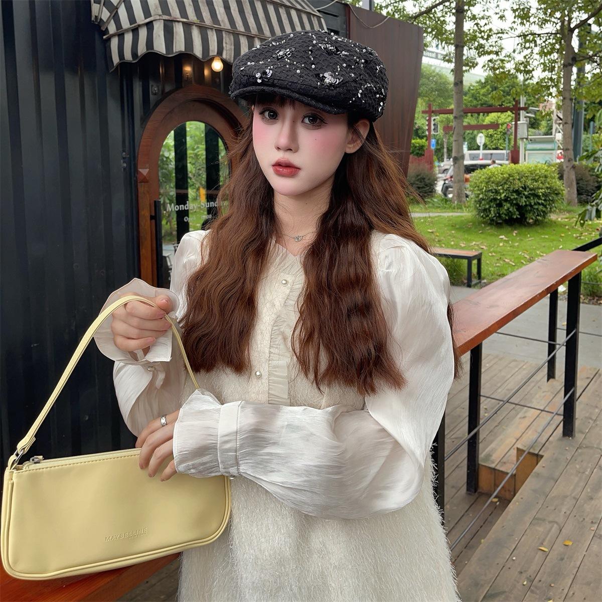Gorra de nicho retro con lentejuelas y flor hacia adelante para mujer, otoño e invierno, moda coreana elegante, boina de pintor, gorra combinable