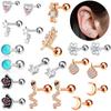 Pendientes de acero inoxidable con forma de luna de estilo europeo y americano de 20 g con rosca para perforar y dormir.