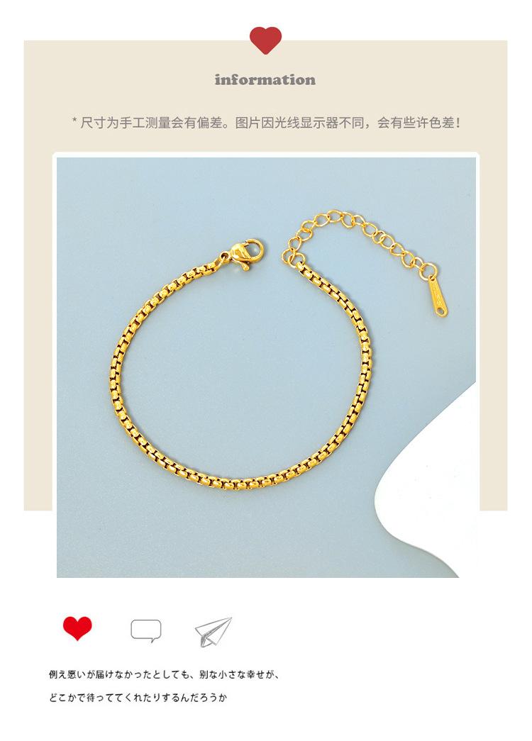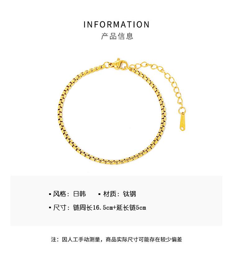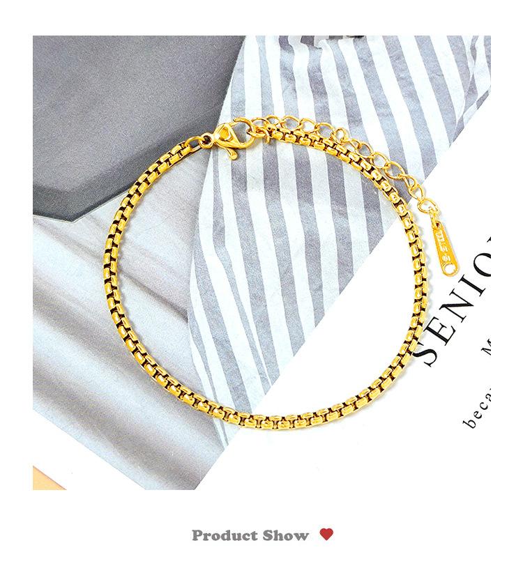Exquisita pulsera de moda de acero de titanio dorado para mujer de 2 mm geométrica unisex de cadena de caja pulsera joyería al por mayor