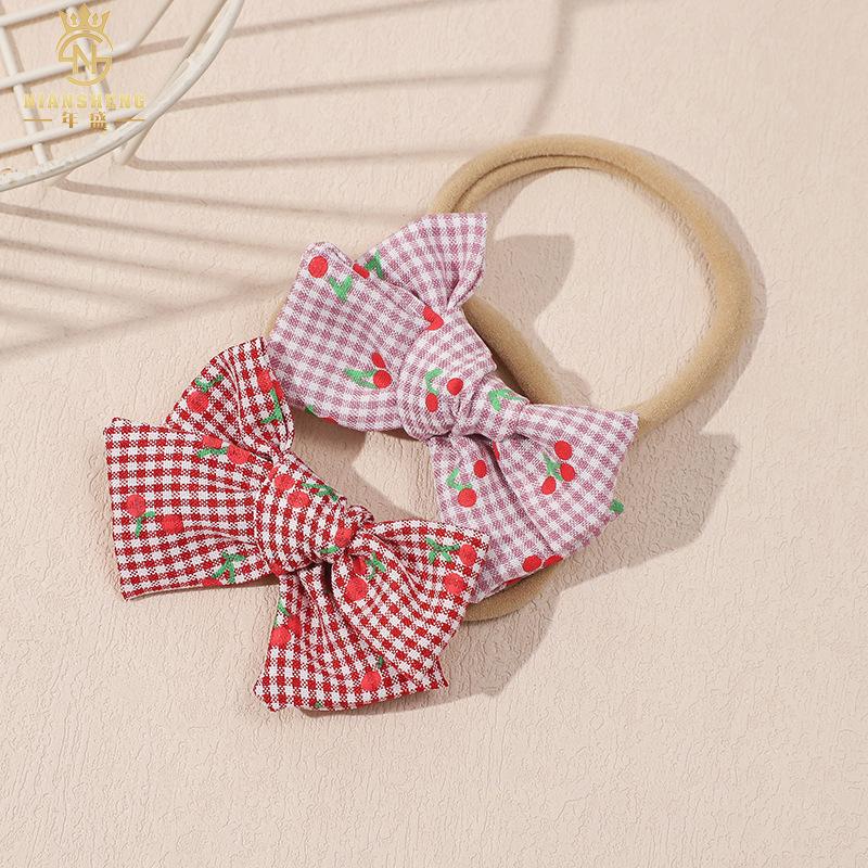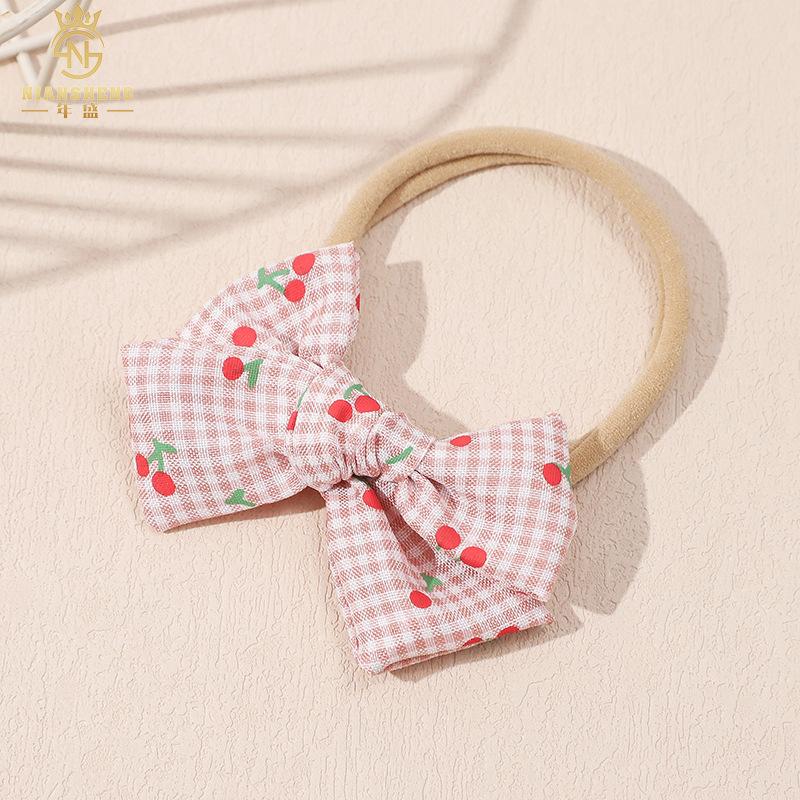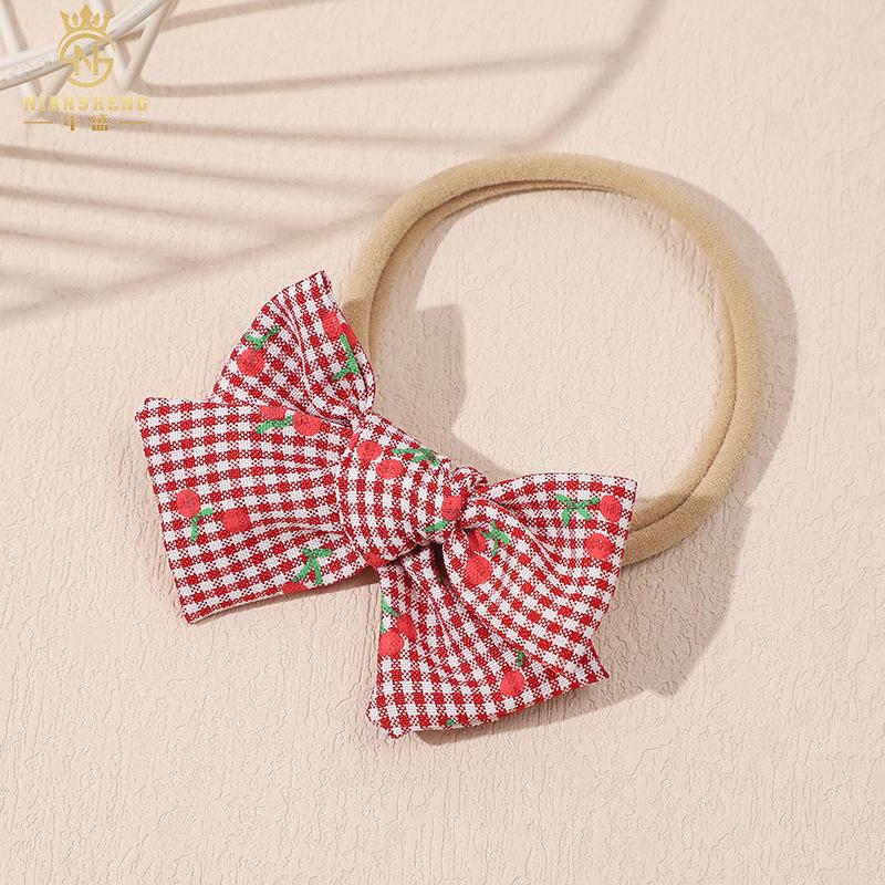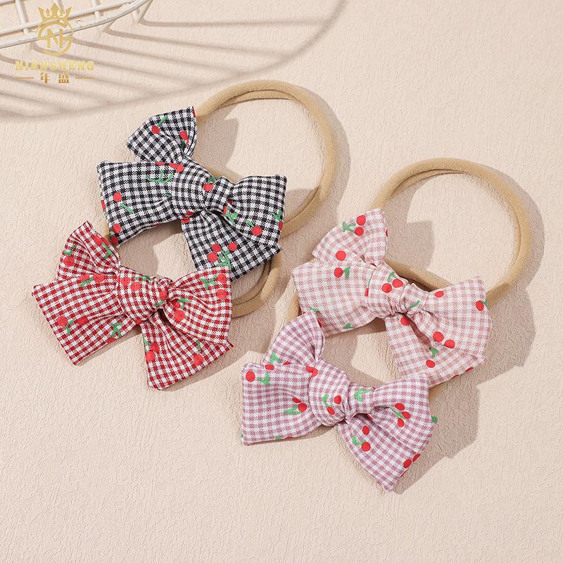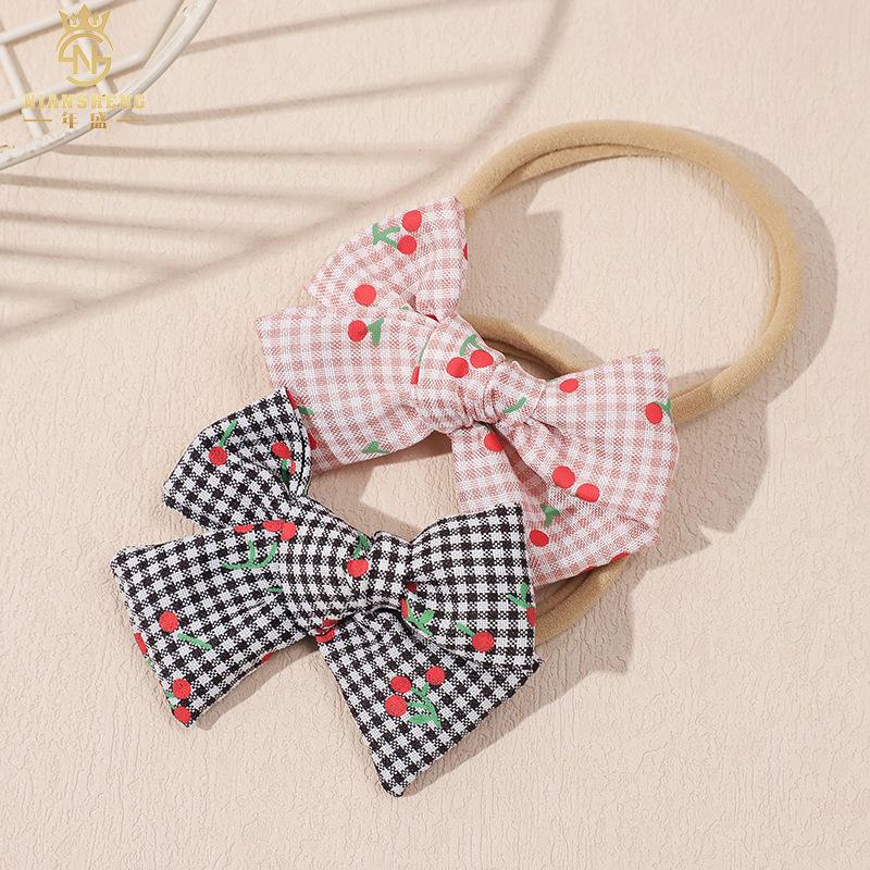 Invierno Transfronterizo Nuevo Banda de Cabello Delgada a Cuadros con Lazo para Niños Banda de Cabello de Tela con Estampado de Cerezas para Bebé Adorno para la Cabeza de Bebé