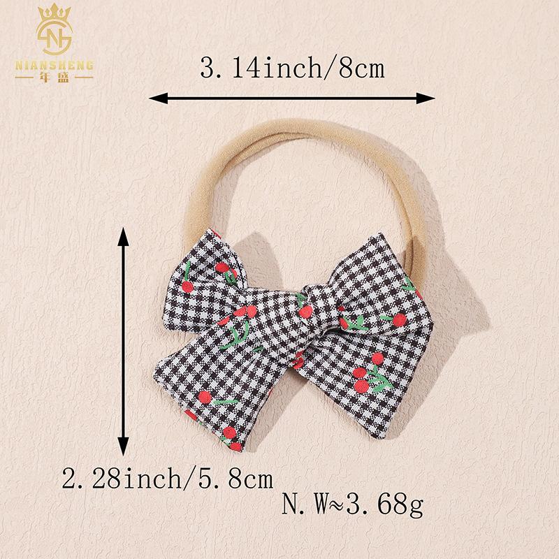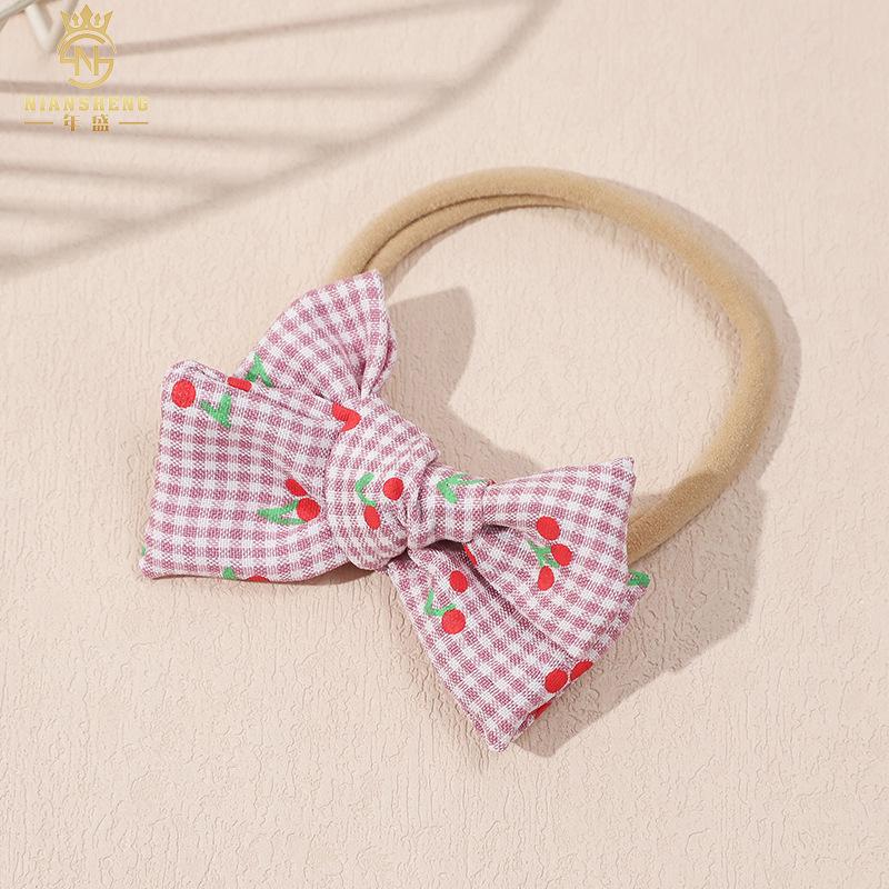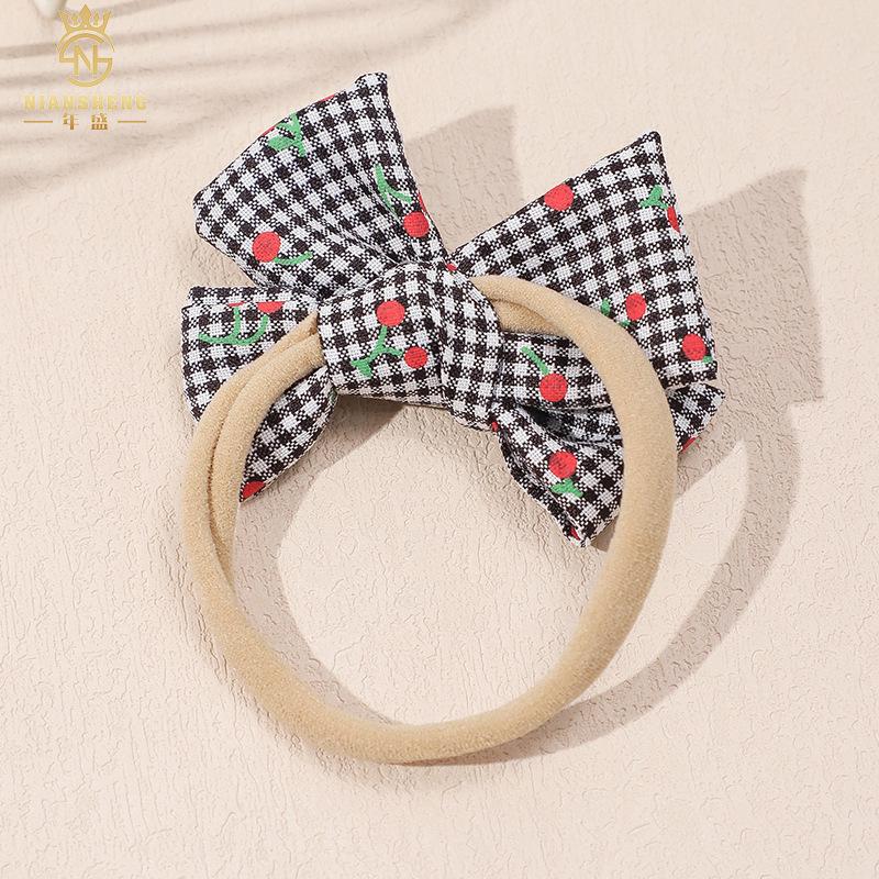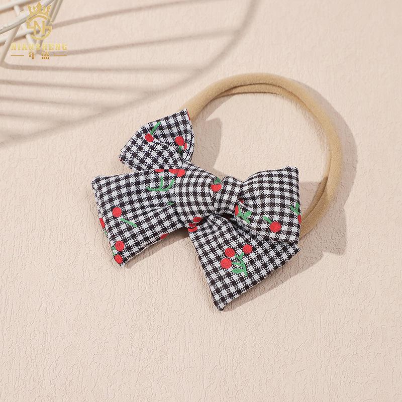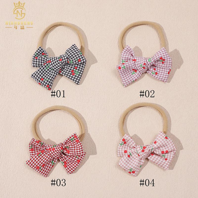 Invierno Transfronterizo Nuevo Banda de Cabello Delgada a Cuadros con Lazo para Niños Banda de Cabello de Tela con Estampado de Cerezas para Bebé Adorno para la Cabeza de Bebé