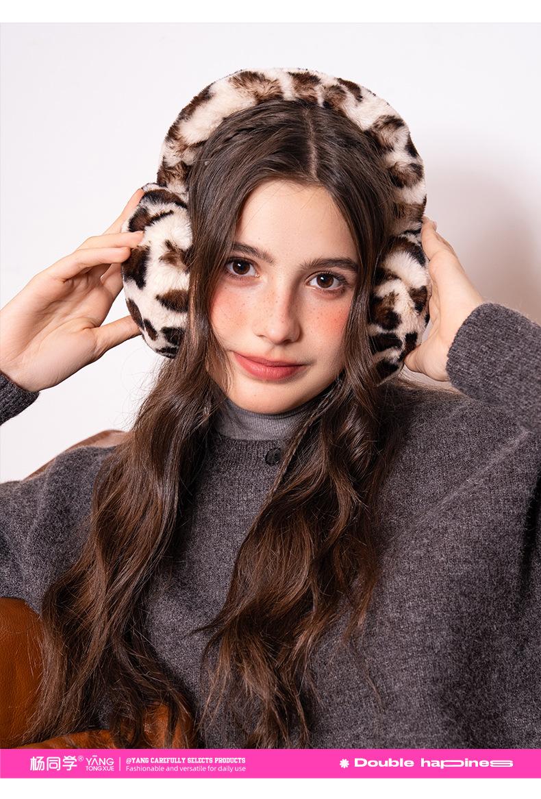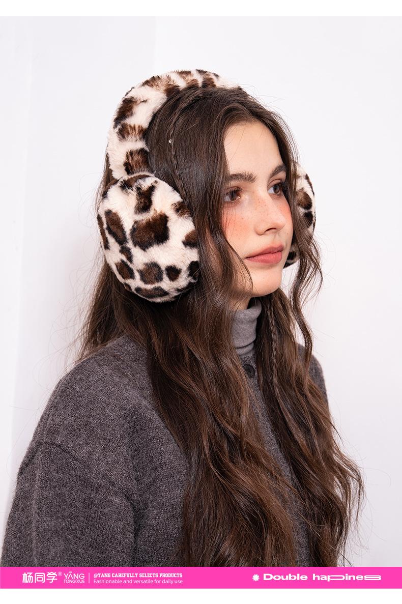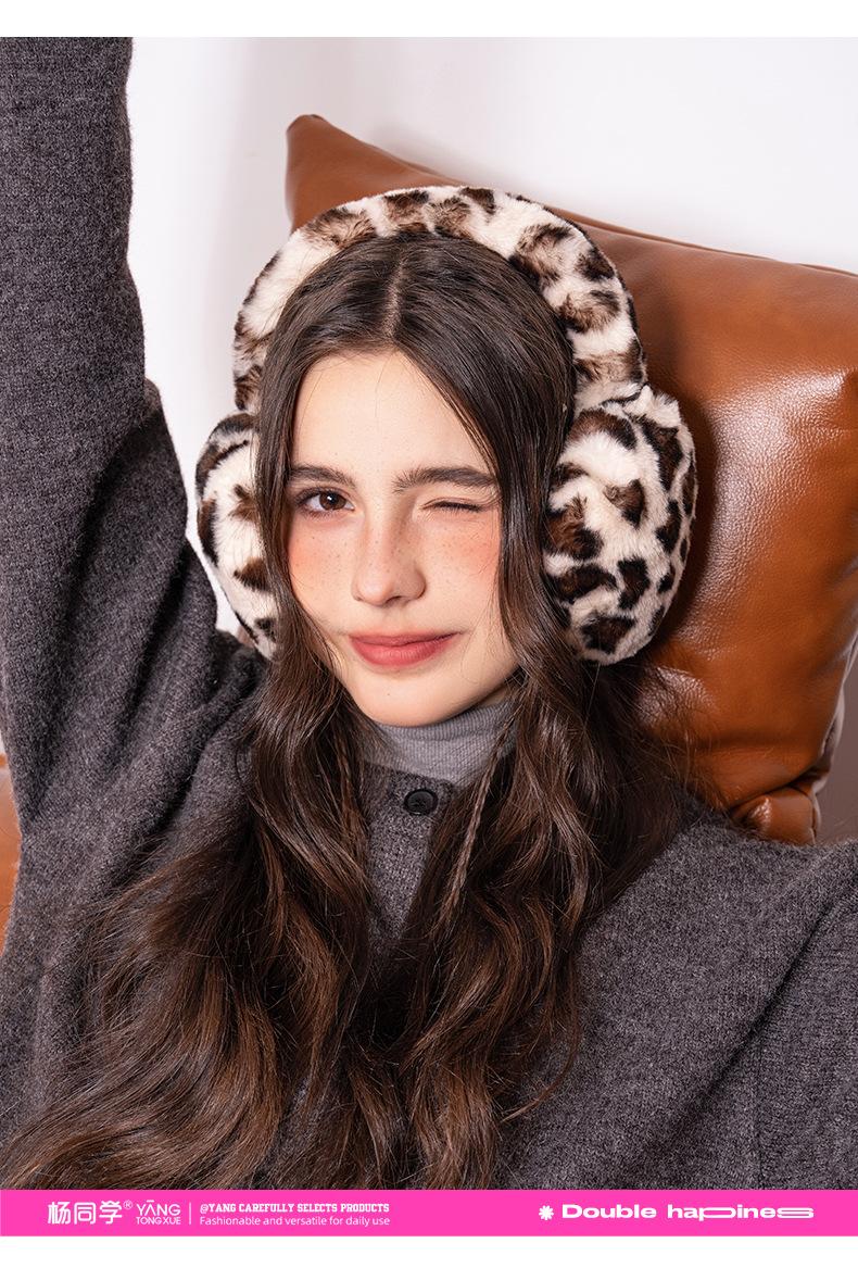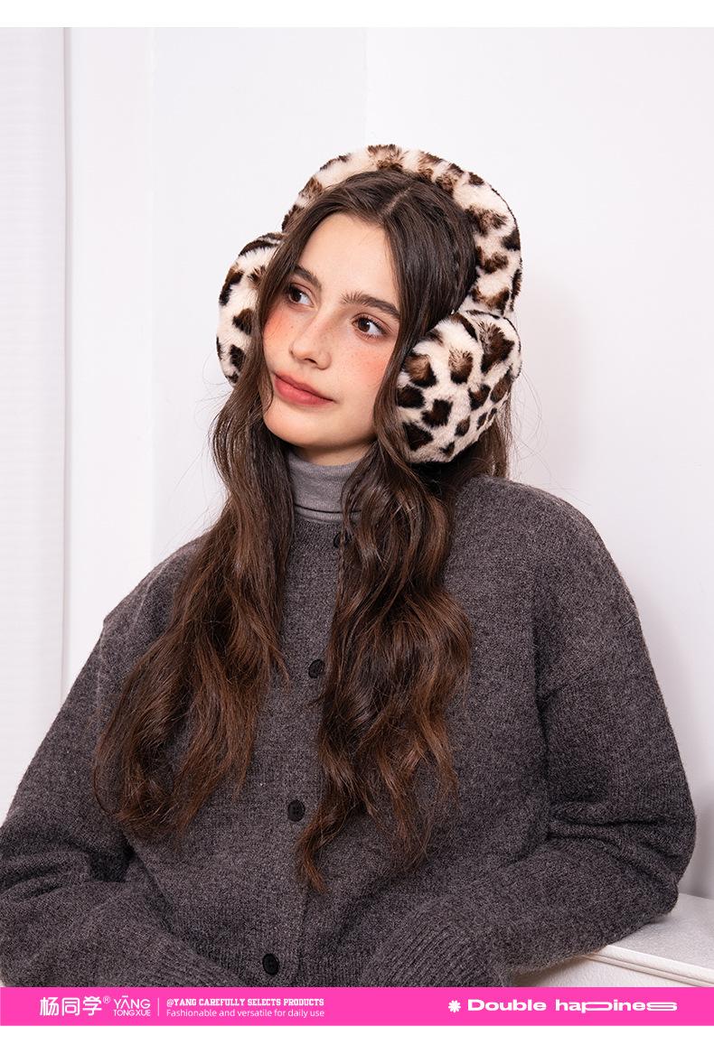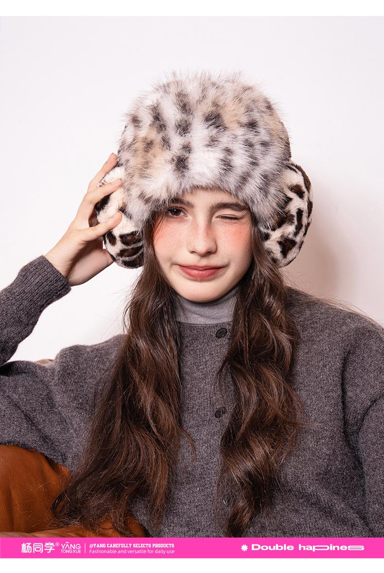 Yang elige estrictamente orejeras de leopardo para las orejas de invierno de mujer para mantener el calor, montar anticongelante, a prueba de viento, auriculares, orejeras de felpa.