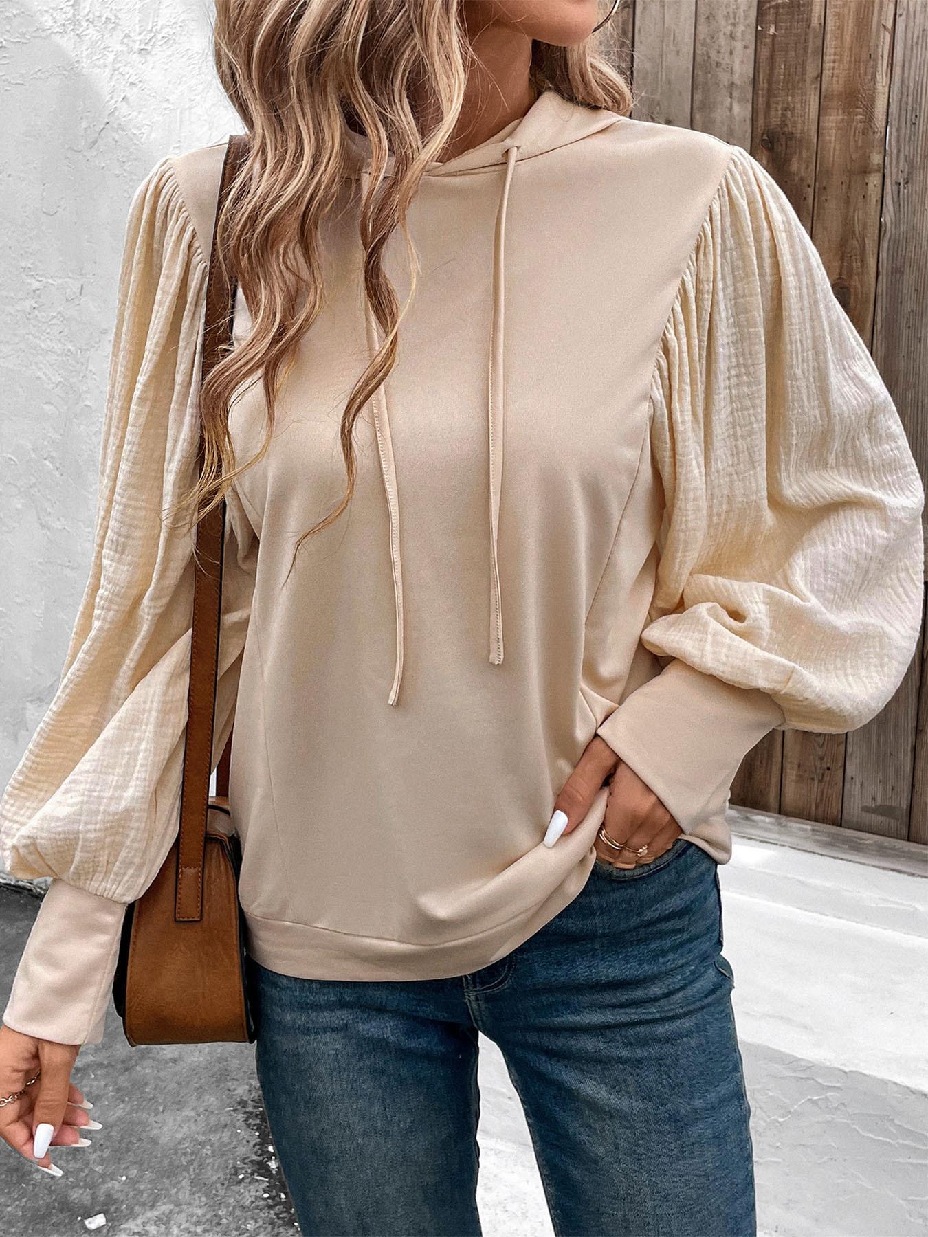 Suéter con capucha y mangas abullonadas de color liso para mujer, jersey de primavera y otoño de estilo europeo y americano, de Amazon Independent Station, 2025