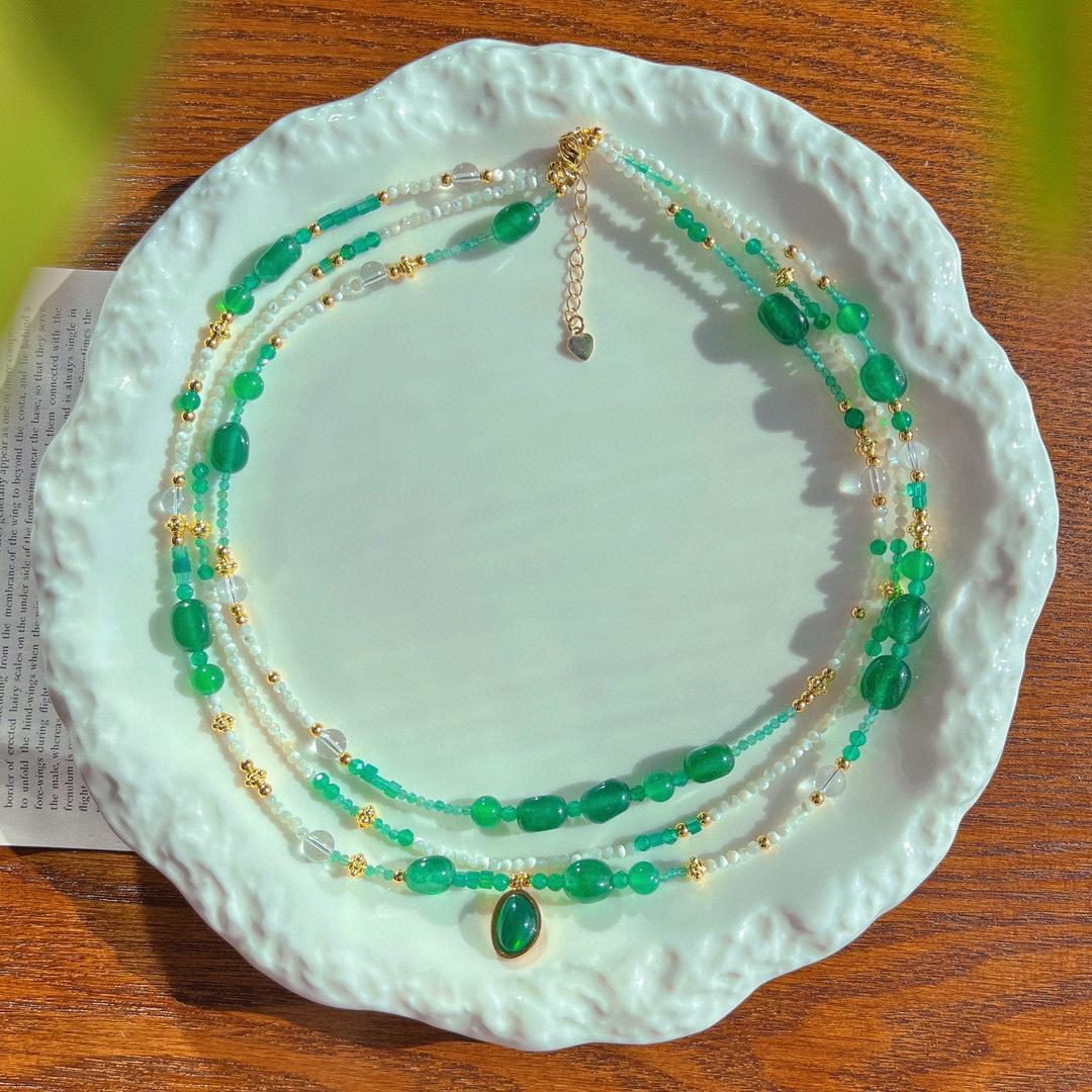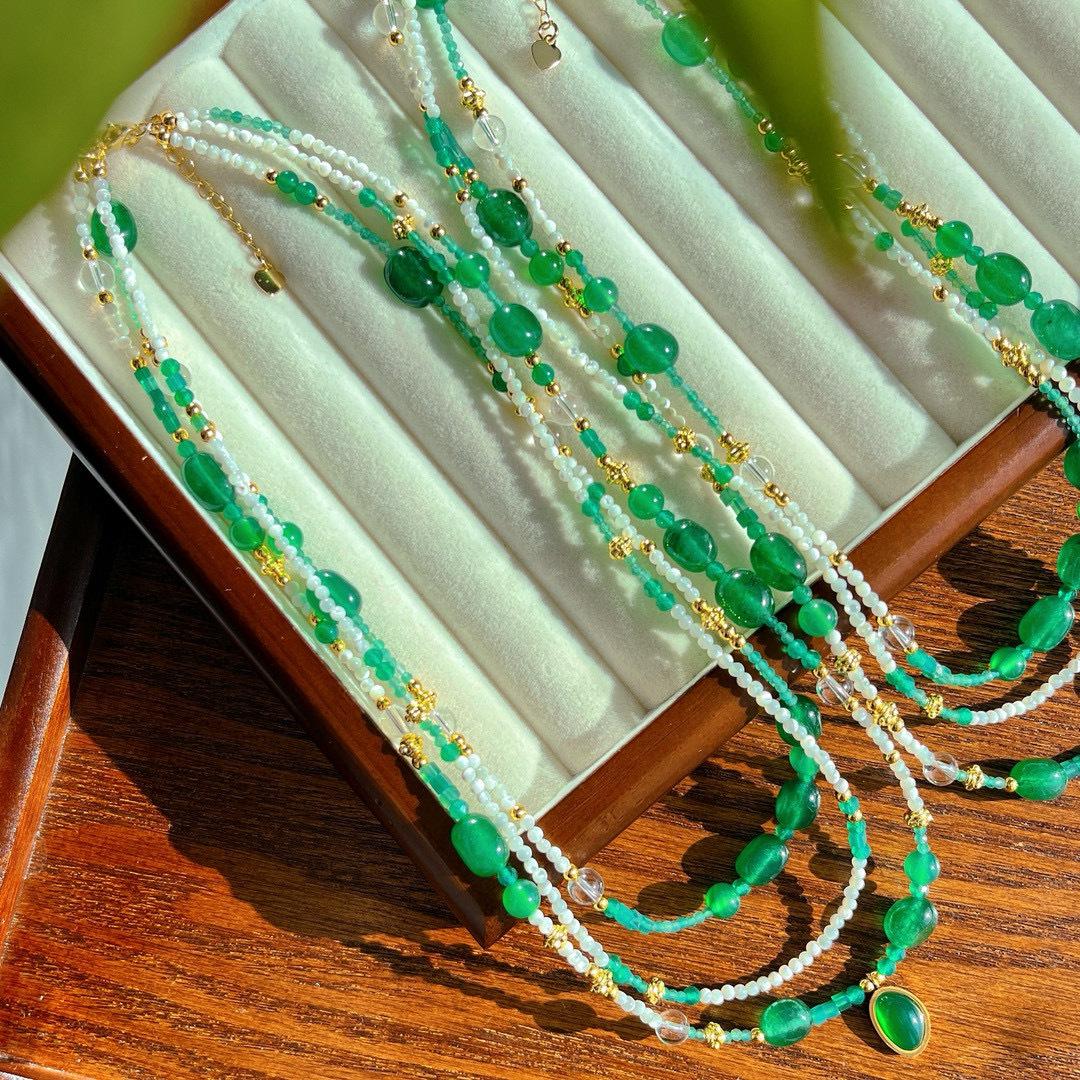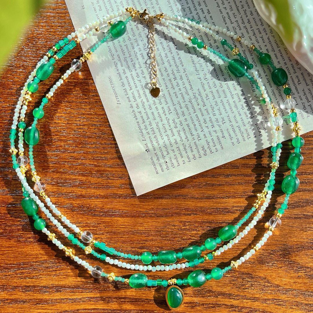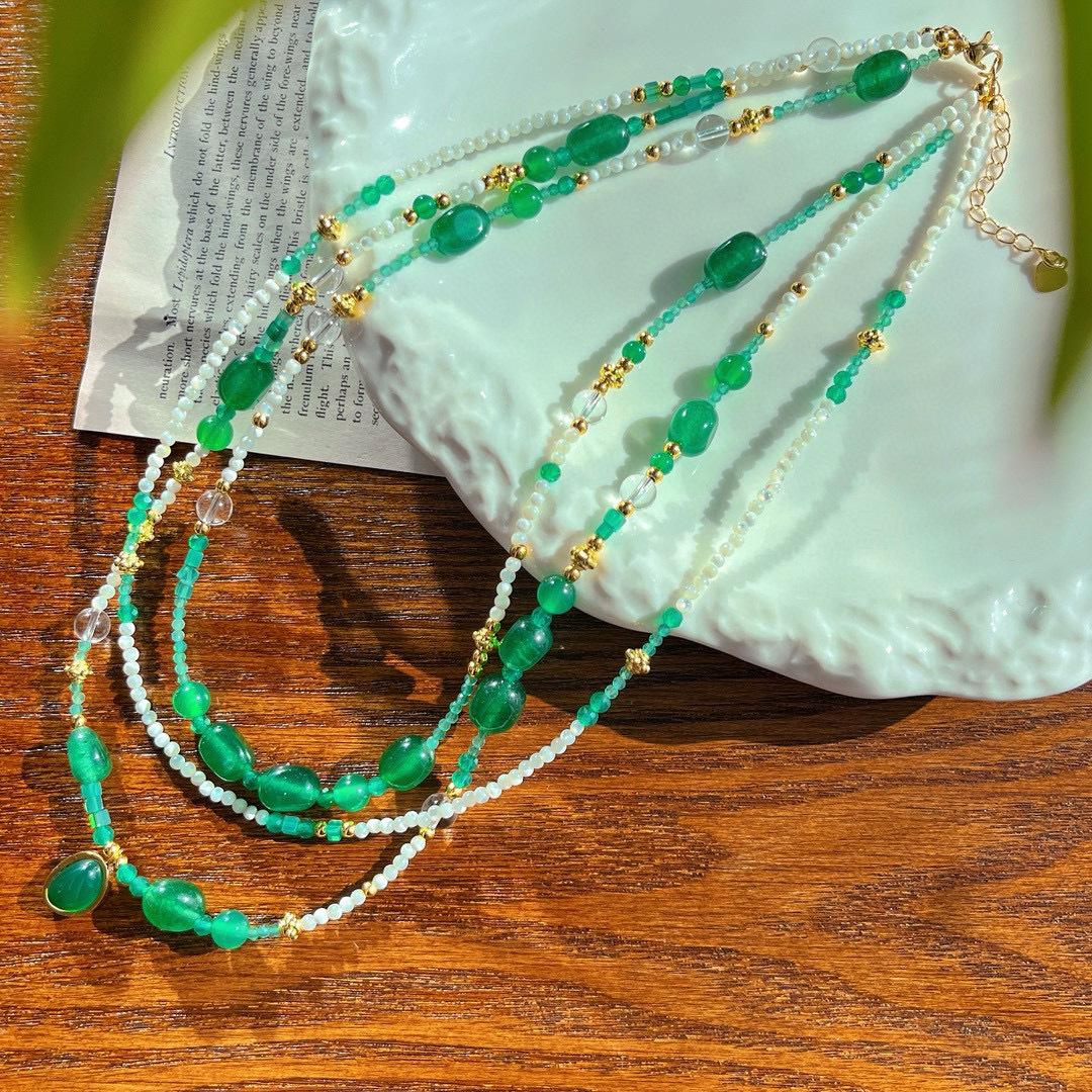 Otoño e invierno estilo nacional retro natural de alta calidad concha calcedonia verde cristal blanco cadena clavicular collar cadena de noche