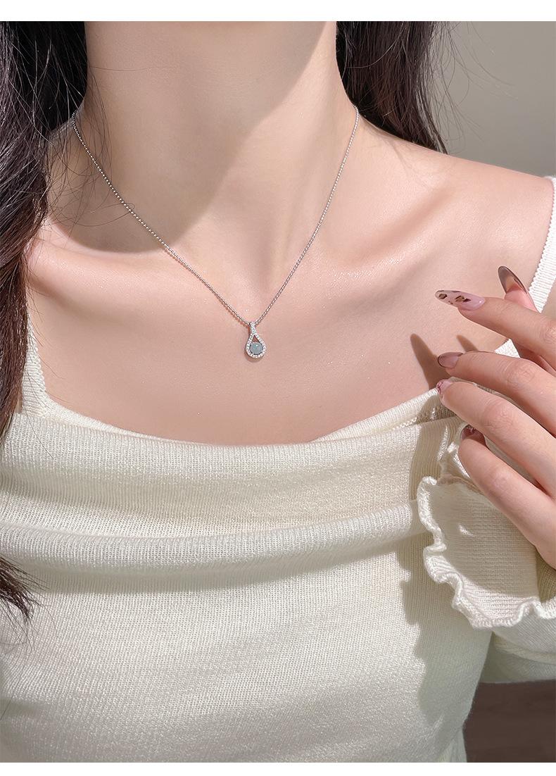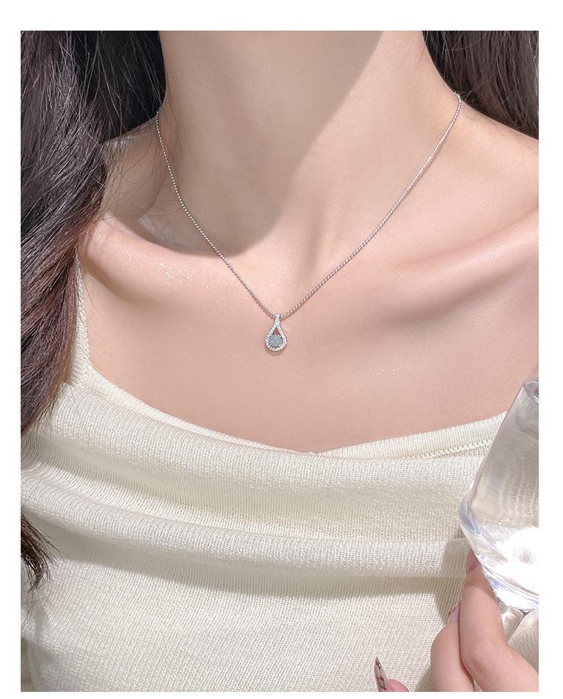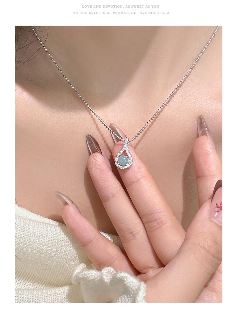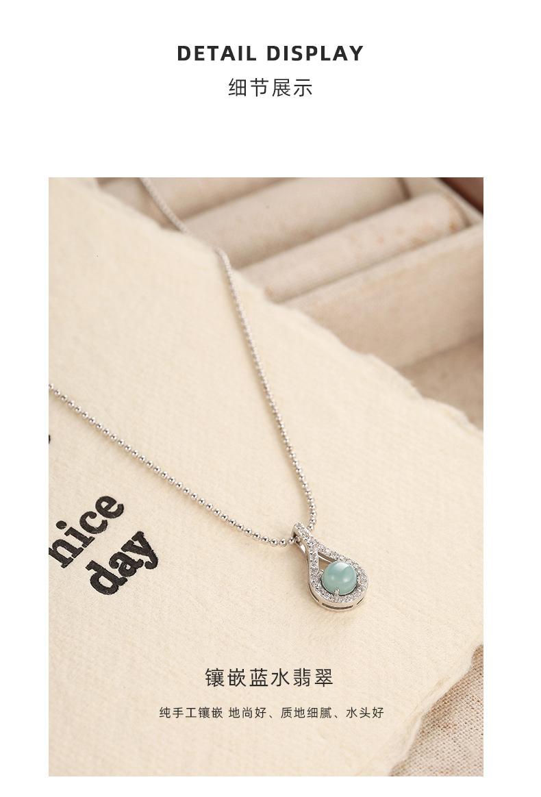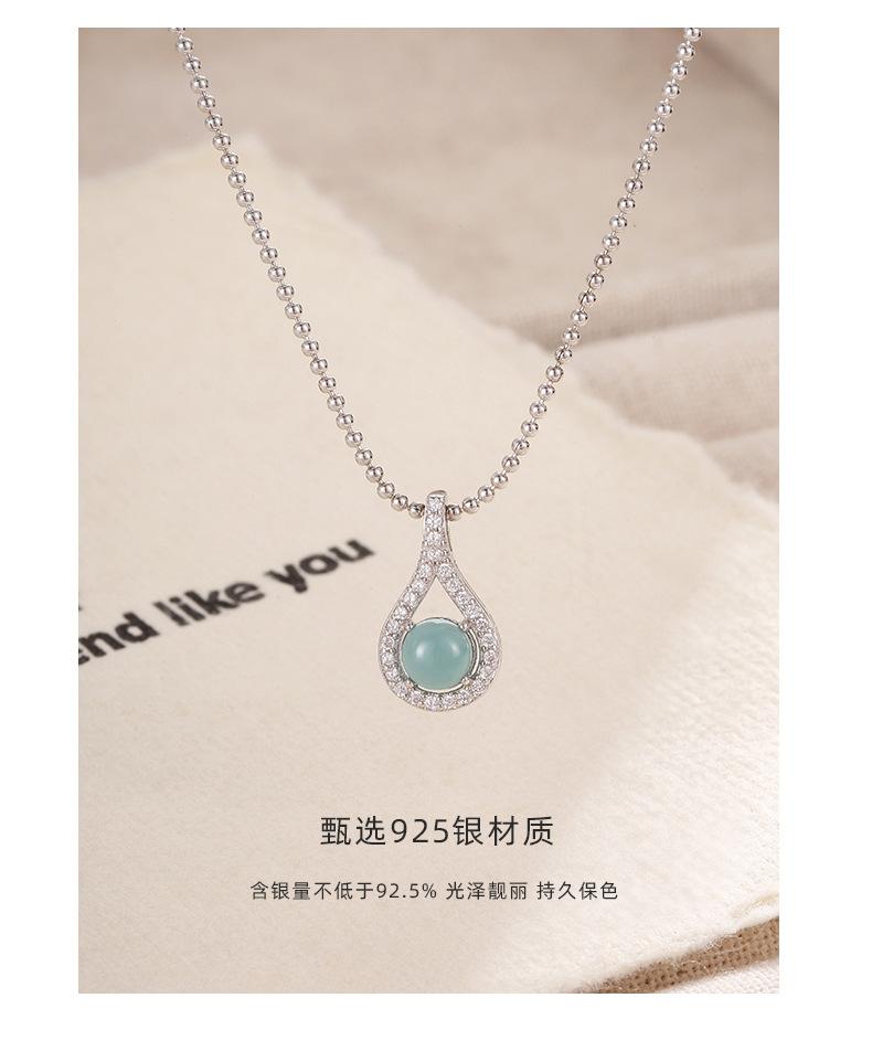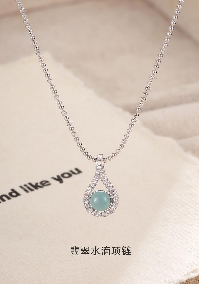 Collar de Gota de Agua de Jade Azul Agua Jin Hongyu para Mujer Plata Esterlina Nuevo Chino Elegante Elegante Cadena Clavicular de Alta Gama Cadena de Bolas
