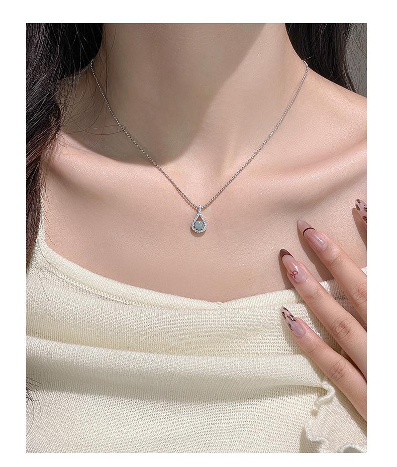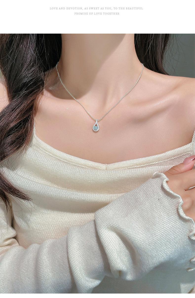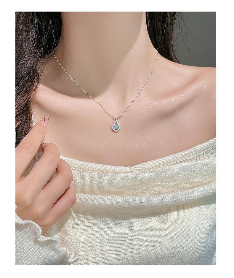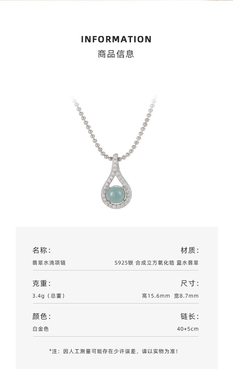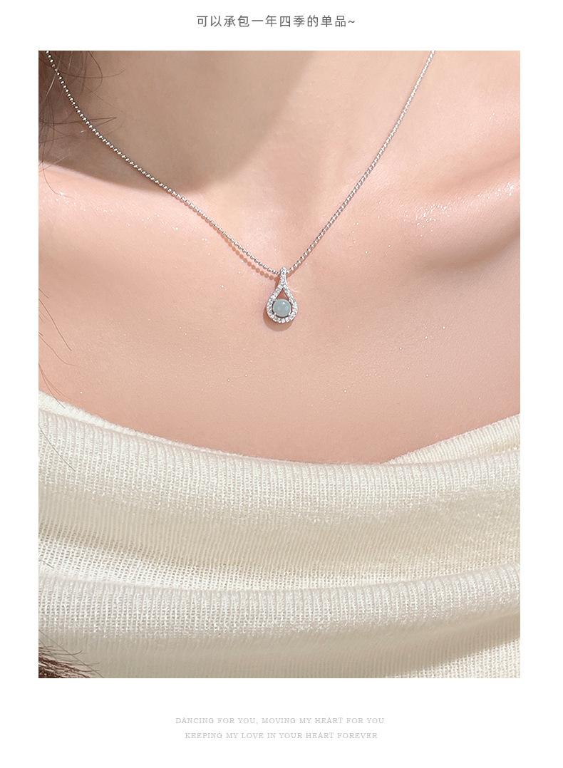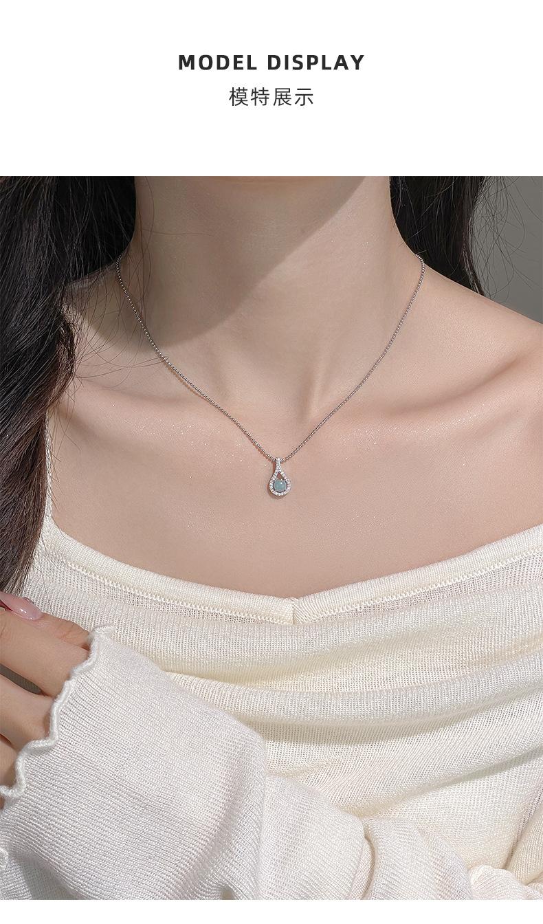 Collar de Gota de Agua de Jade Azul Agua Jin Hongyu para Mujer Plata Esterlina Nuevo Chino Elegante Elegante Cadena Clavicular de Alta Gama Cadena de Bolas
