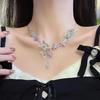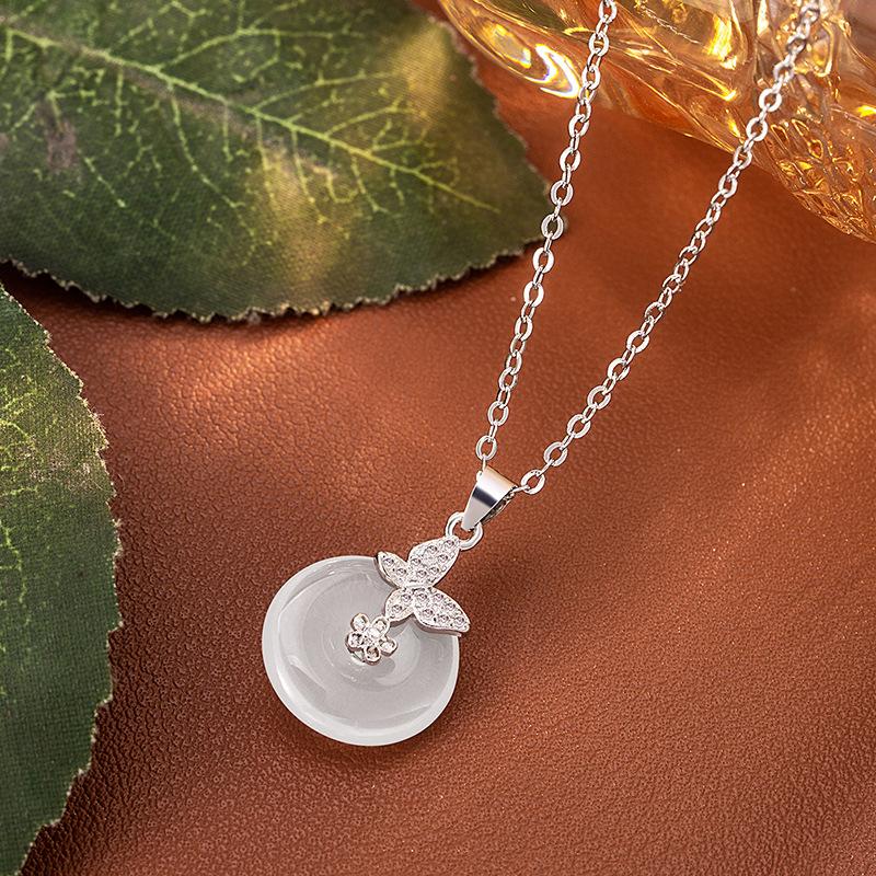 Collar con hebilla de seguridad de mariposa con incrustaciones de diamantes para mujer, novedad de 2024, cadena de clavícula popular, collar con colgante de nicho de lujo ligero de alta calidad.