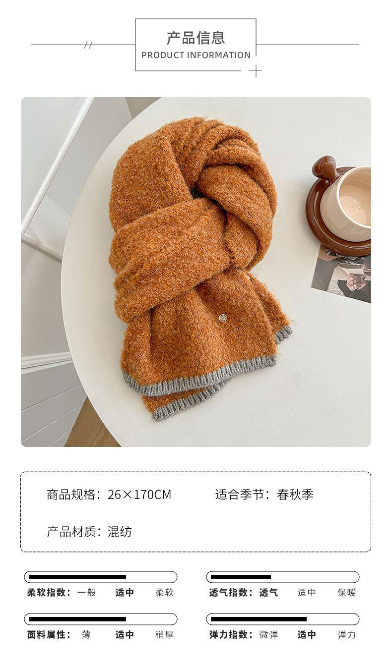 Bufanda Estilo Academia Retro de Alta Gama Suave Cera para Mujer Invierno Estilo Coreano Mezclada Cálida para Pareja Color Sólido Bufanda para Hombre Moderna