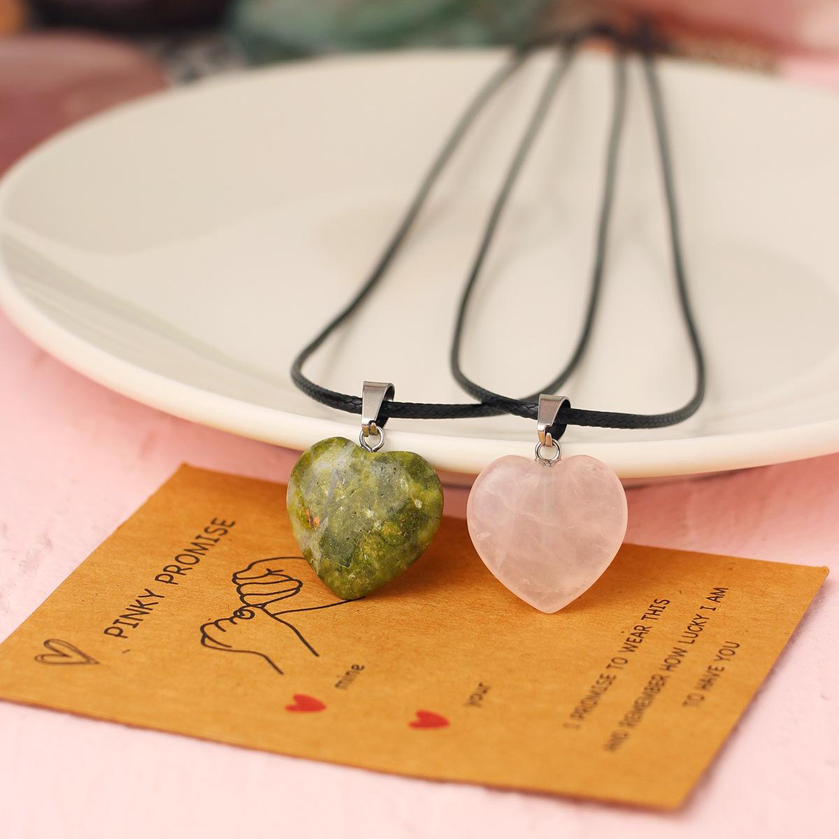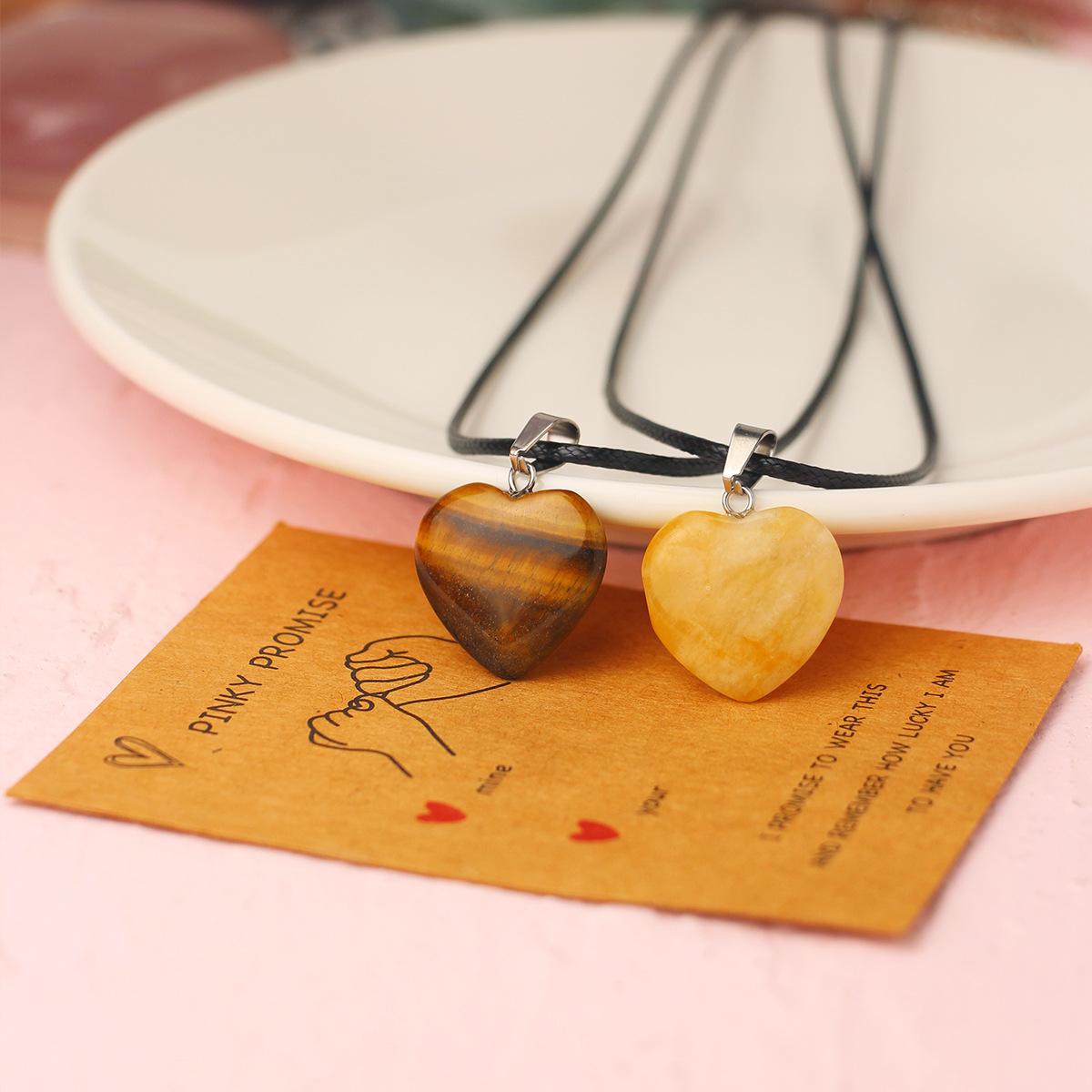 Collar con colgante de piedra natural en forma de corazón dos piezas joyería para pareja de enamorados
