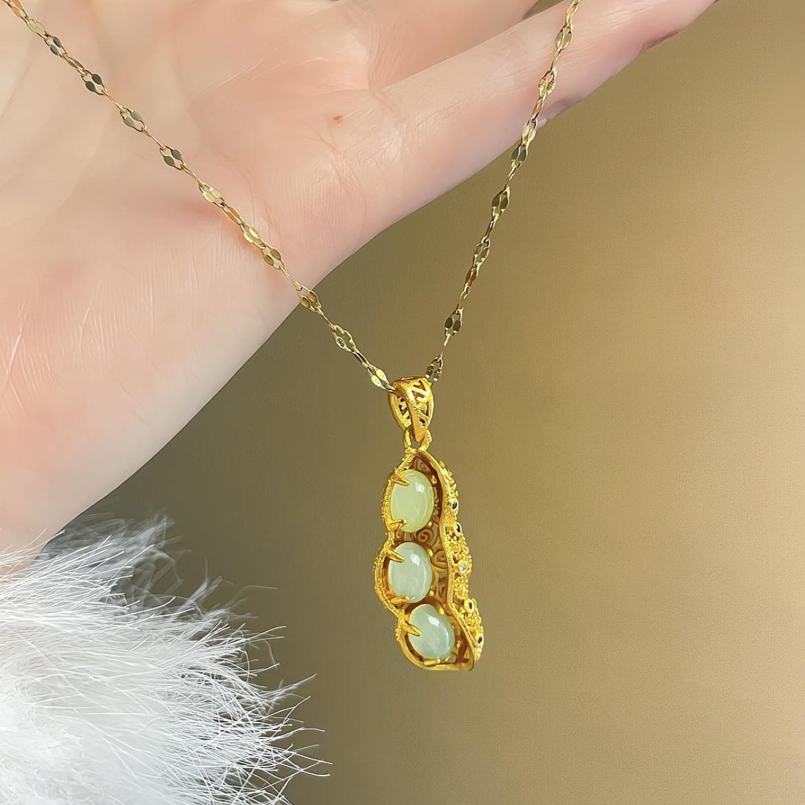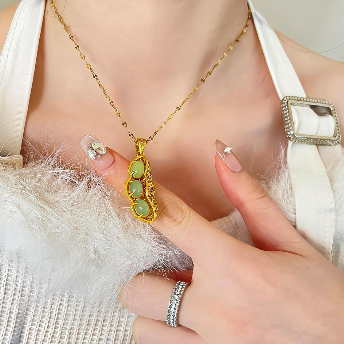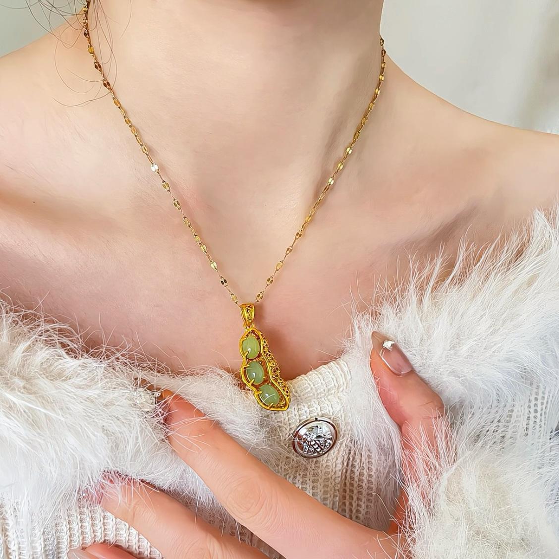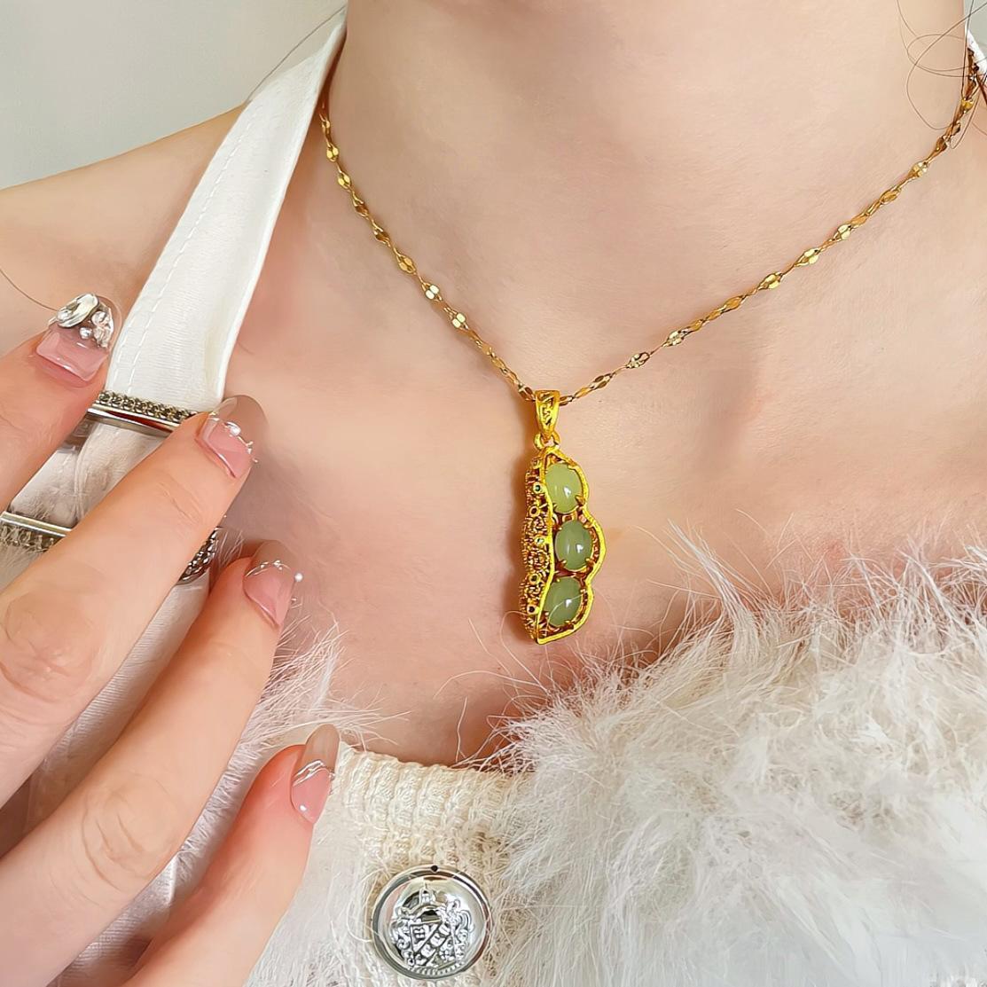 Collar de cacahuete hueco estilo chino "Suceden cosas buenas". Cadena de lana de alta gama con nicho de estilo nacional, de acero de titanio y estilo antiguo para mujer.