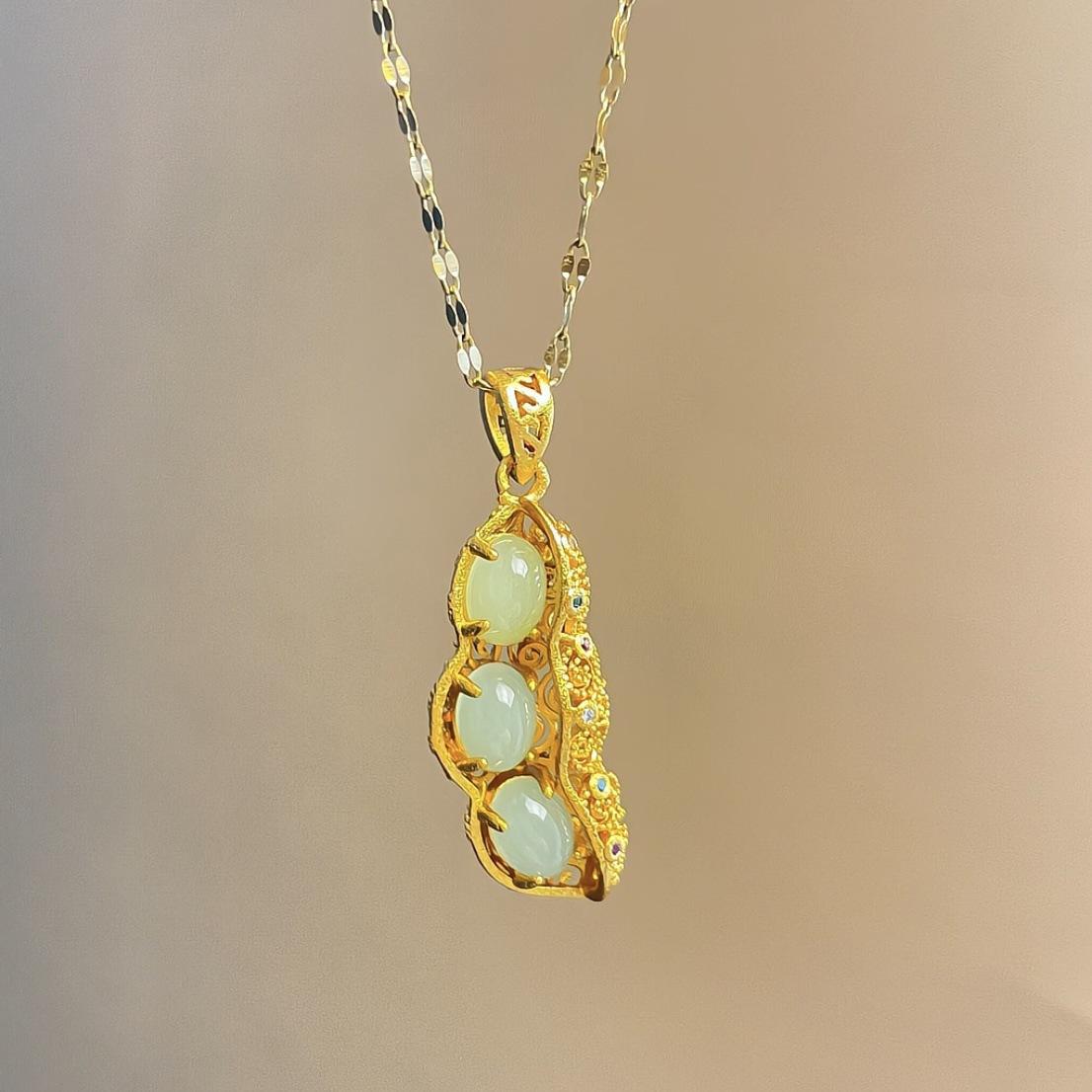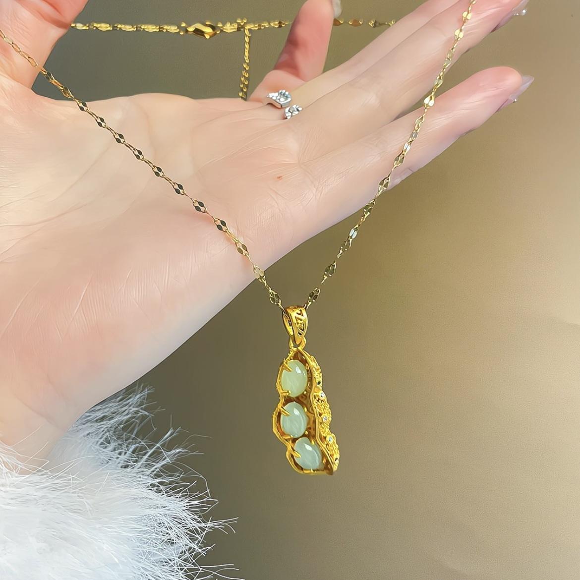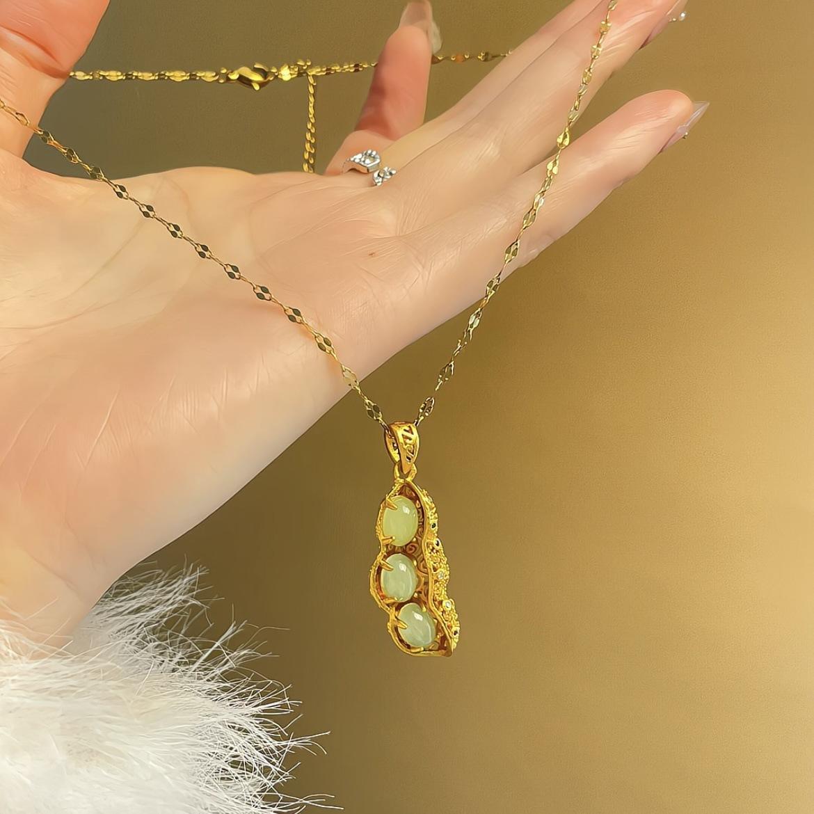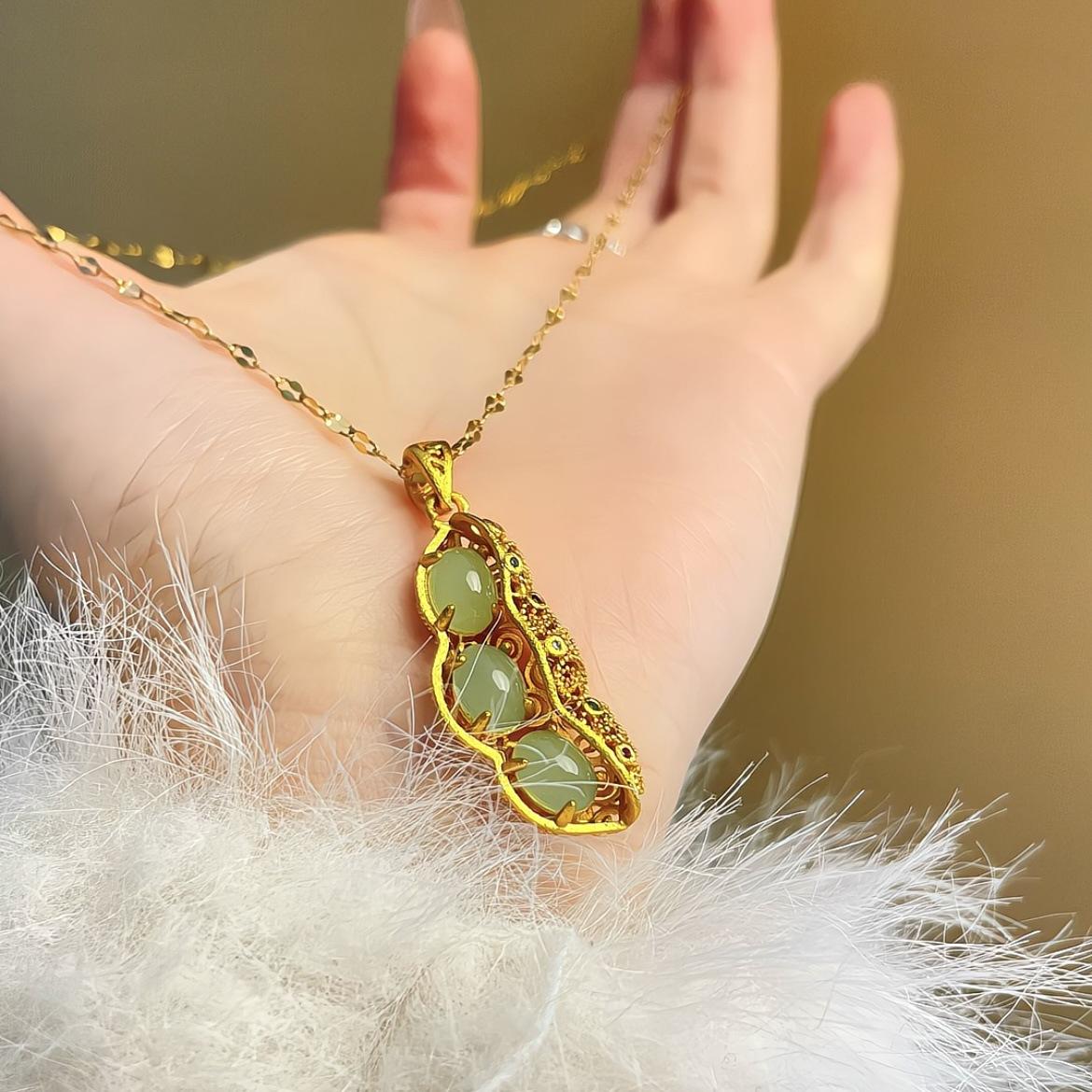 Collar de cacahuete hueco estilo chino "Suceden cosas buenas". Cadena de lana de alta gama con nicho de estilo nacional, de acero de titanio y estilo antiguo para mujer.