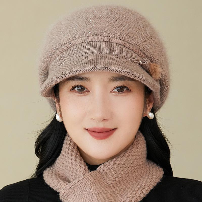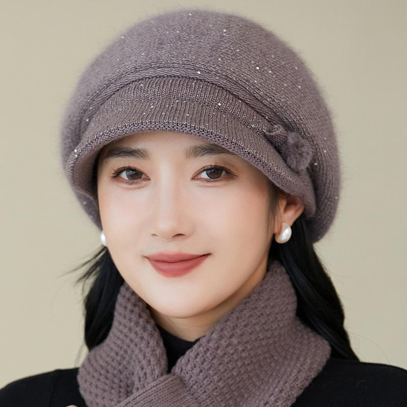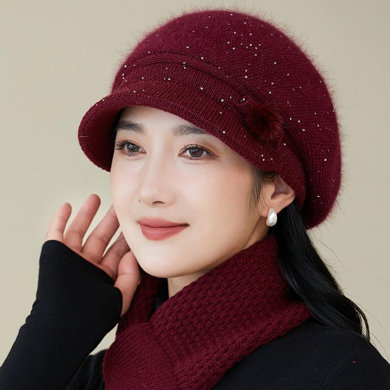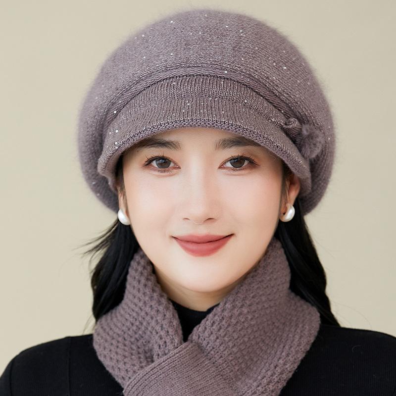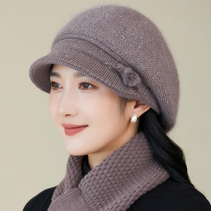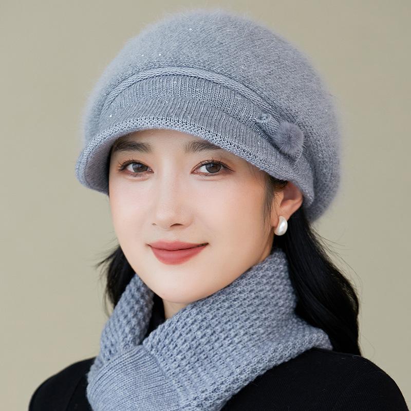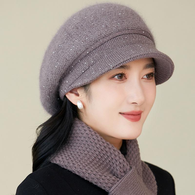 Gorro de lana nuevo de otoño e invierno para personas mayores, gorro de abuela cálido con forro polar, gorro de punto grueso y sencillo a la moda, fabricantes