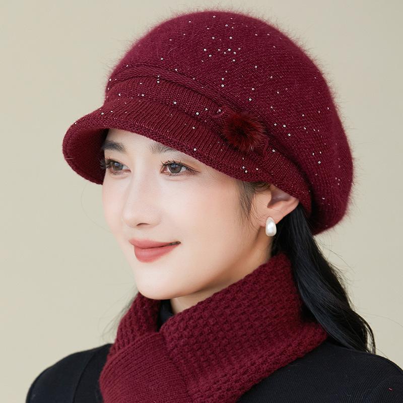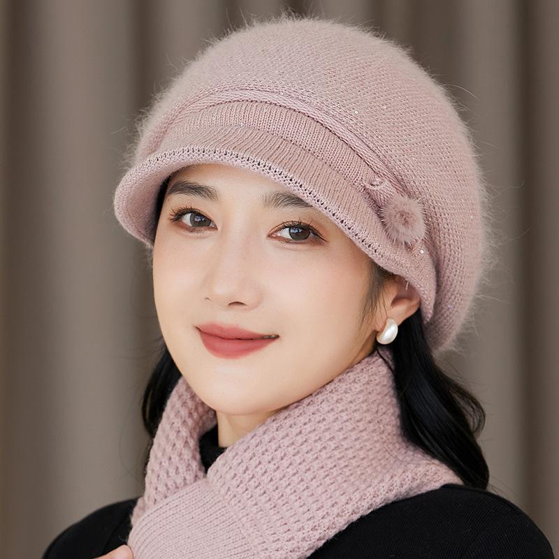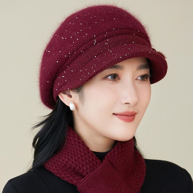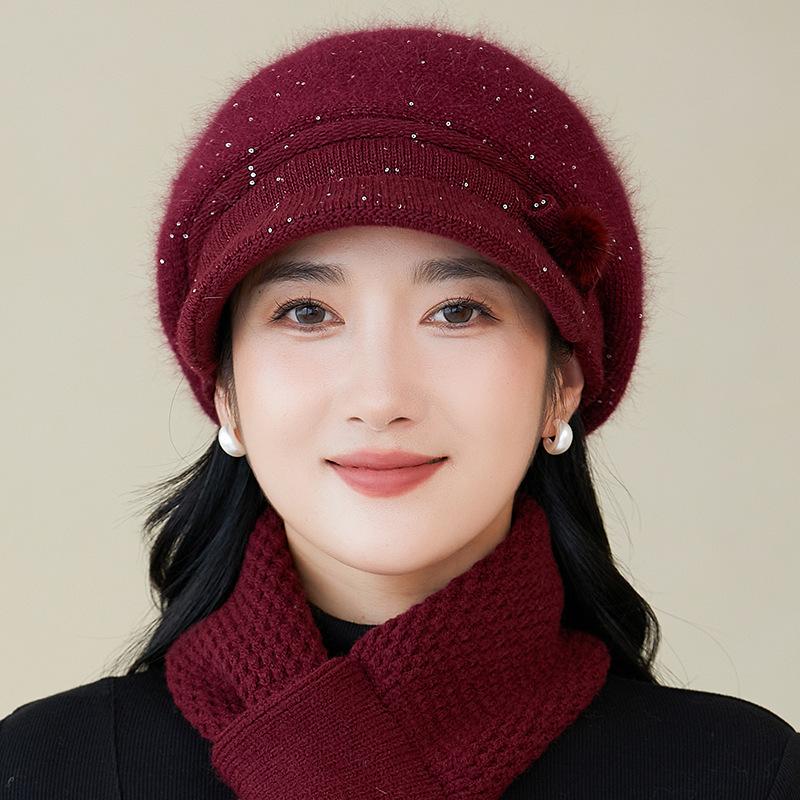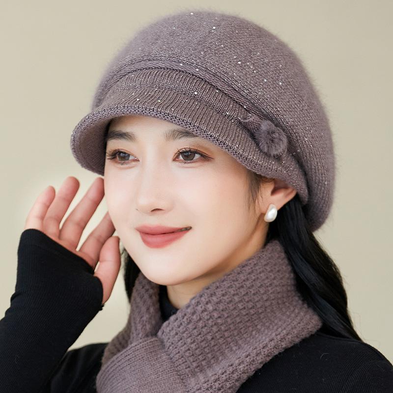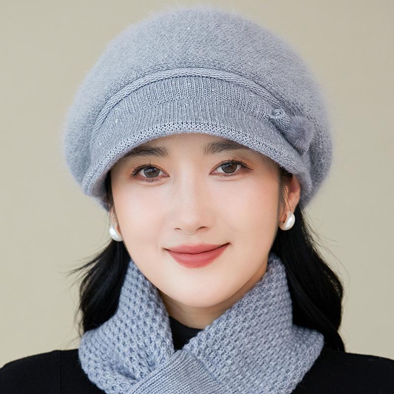 Gorro de lana nuevo de otoño e invierno para personas mayores, gorro de abuela cálido con forro polar, gorro de punto grueso y sencillo a la moda, fabricantes