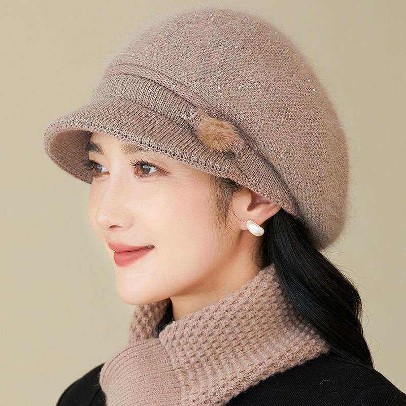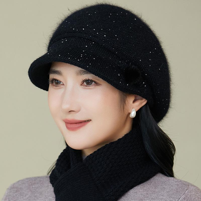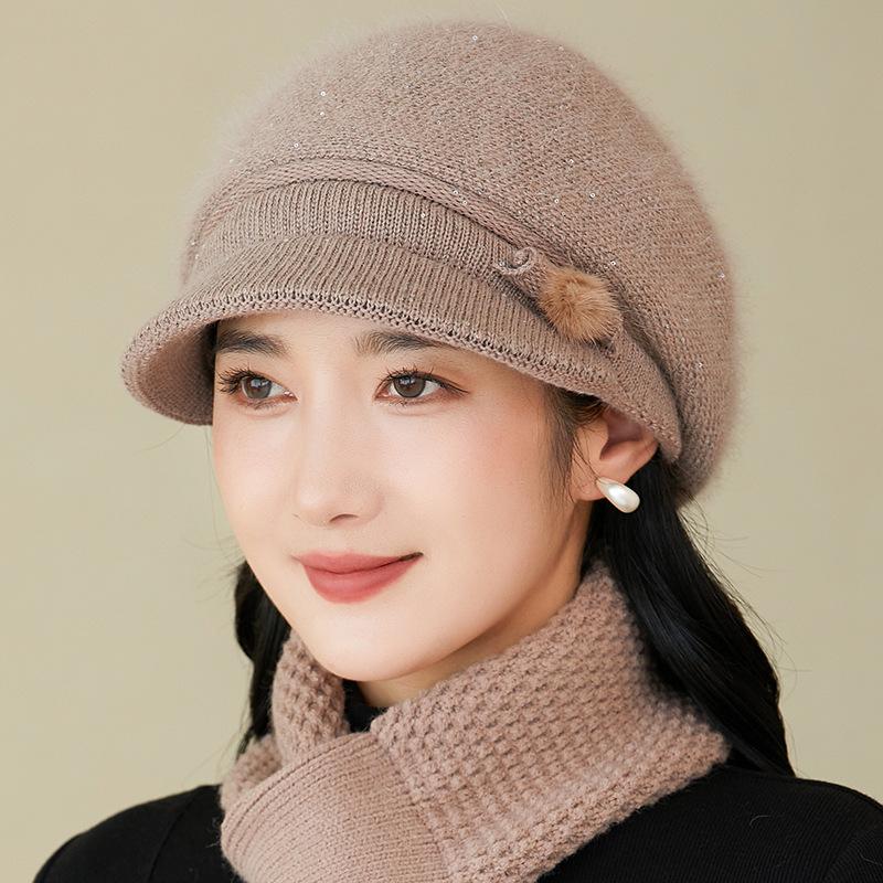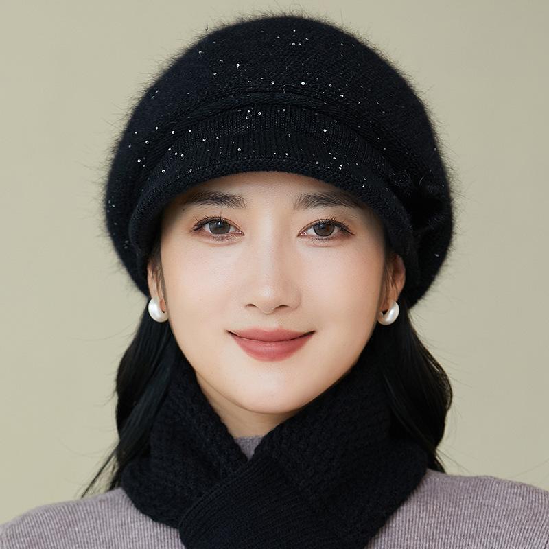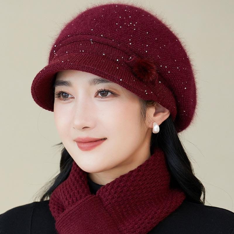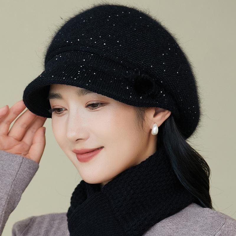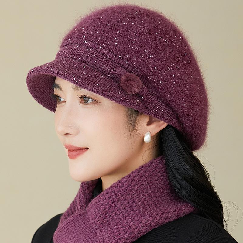 Gorro de lana nuevo de otoño e invierno para personas mayores, gorro de abuela cálido con forro polar, gorro de punto grueso y sencillo a la moda, fabricantes