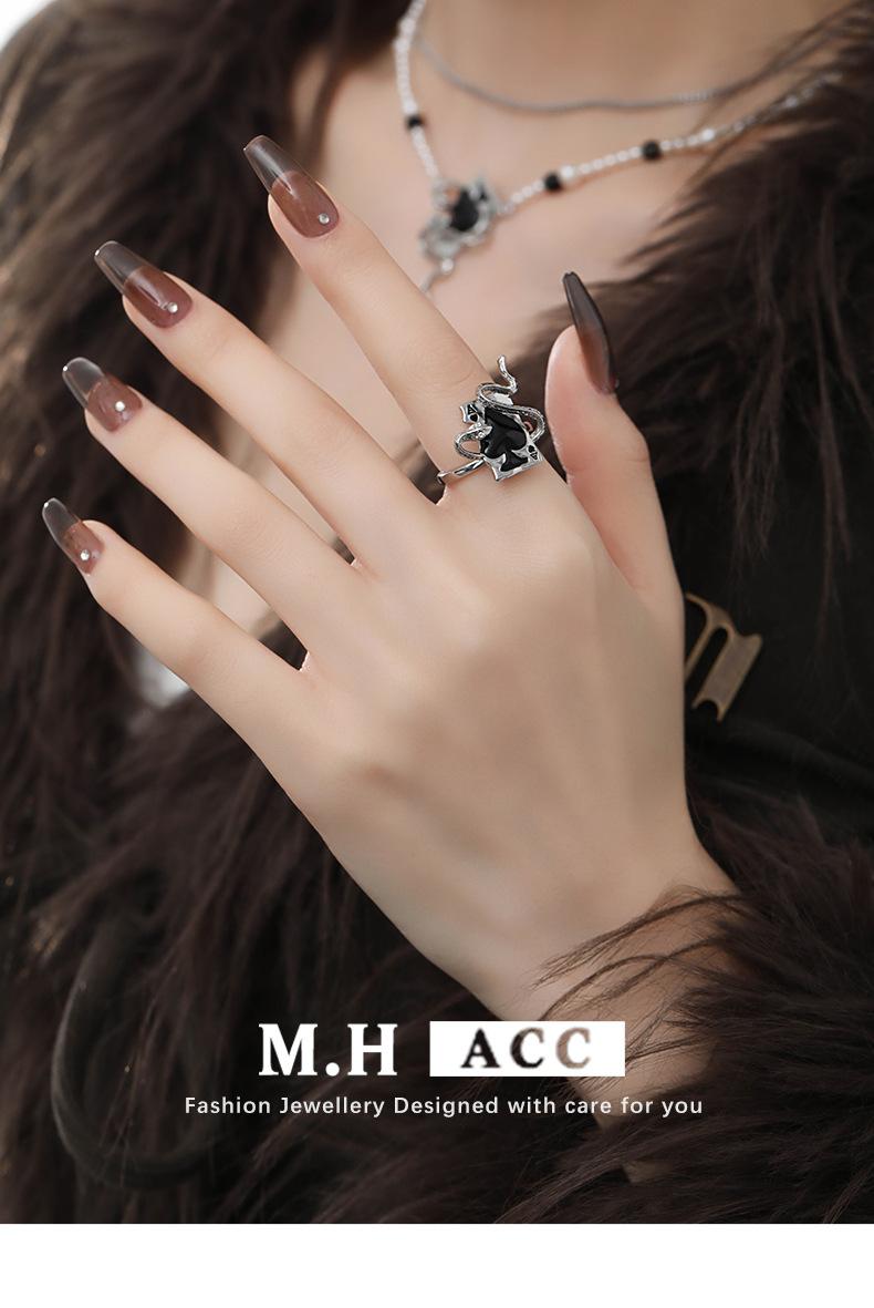 Anillo de serpiente con diseño de nicho Sense Poker para mujer, estilo Ins, moderno y exquisito, anillo para dedo oscuro, elegante y abierto.