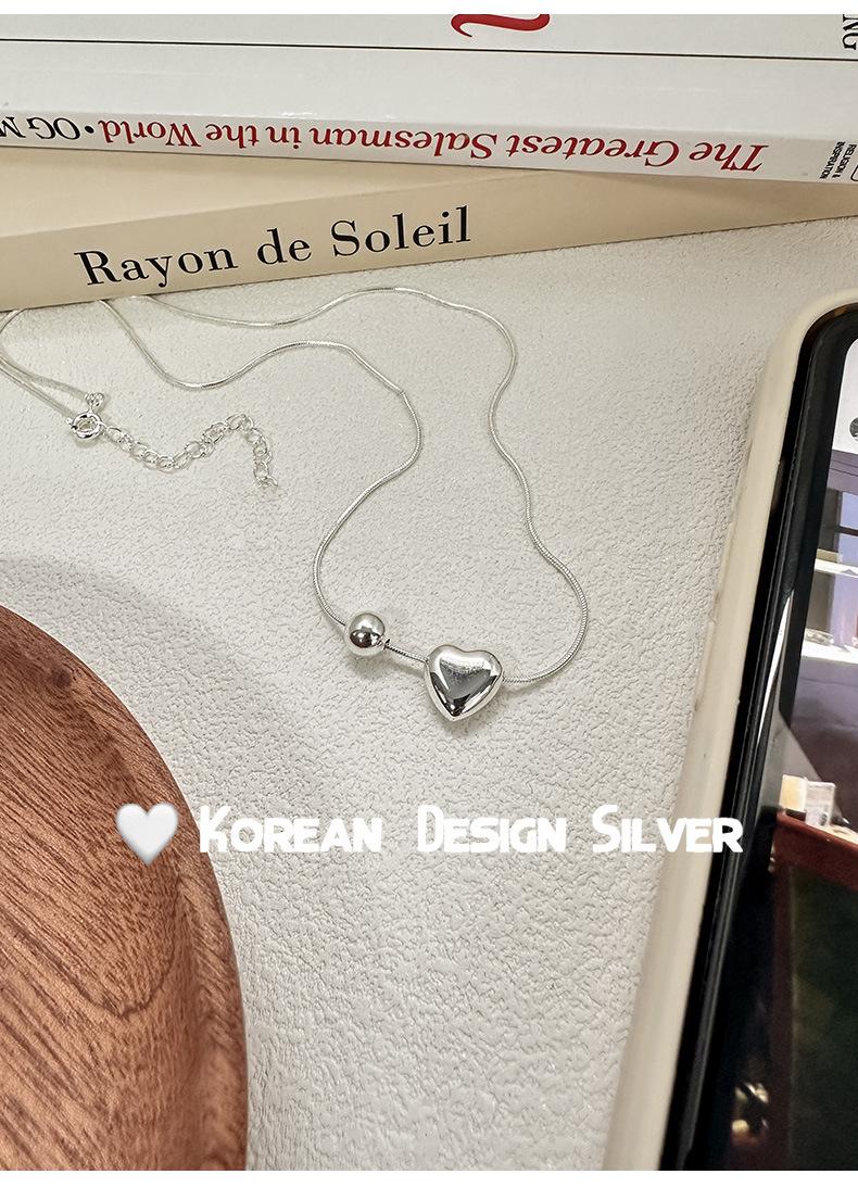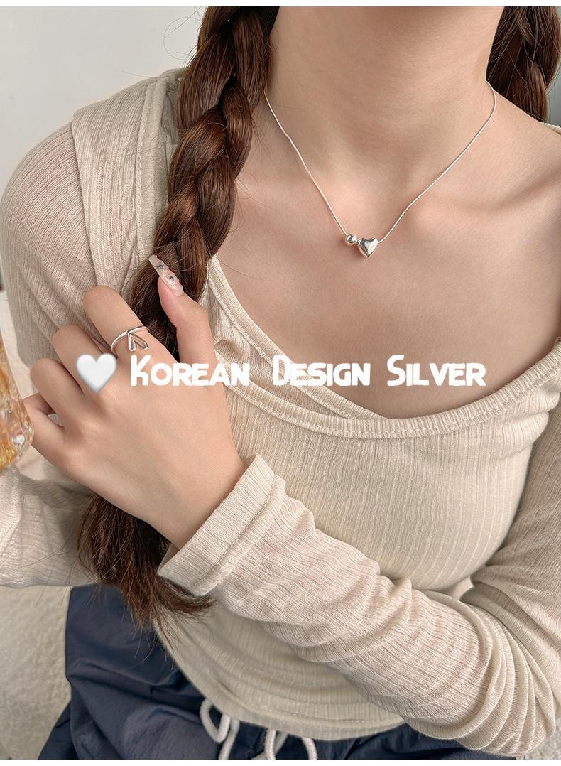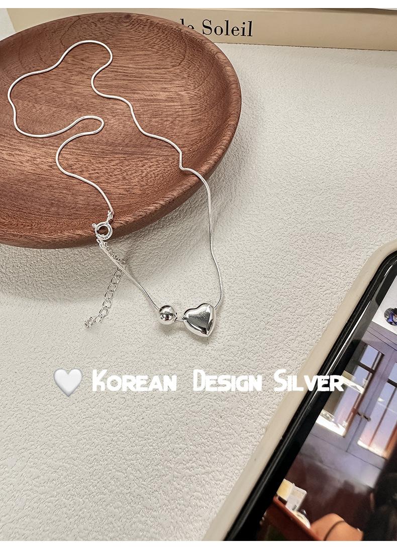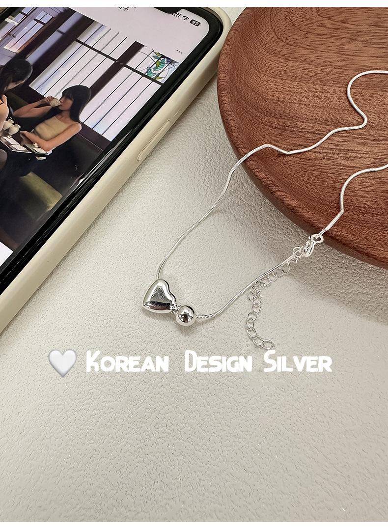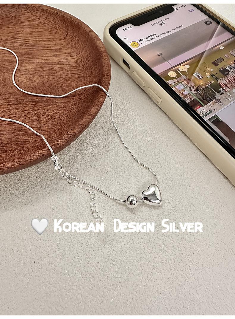 Collar de plata de ley S925 de lujo, estilo coreano, con forma de bola de metal, cadena de clavícula con forma de corazón, exquisito collar de alta gama para mujer.