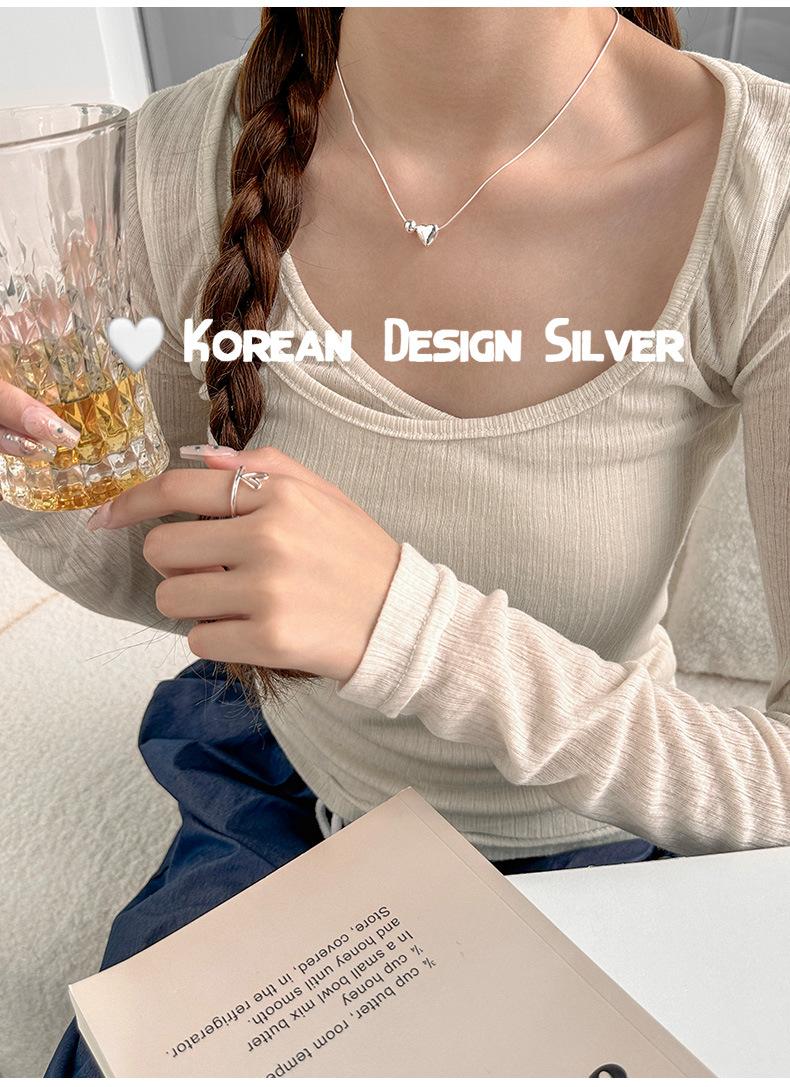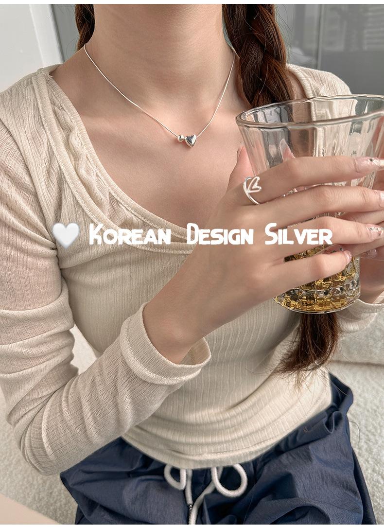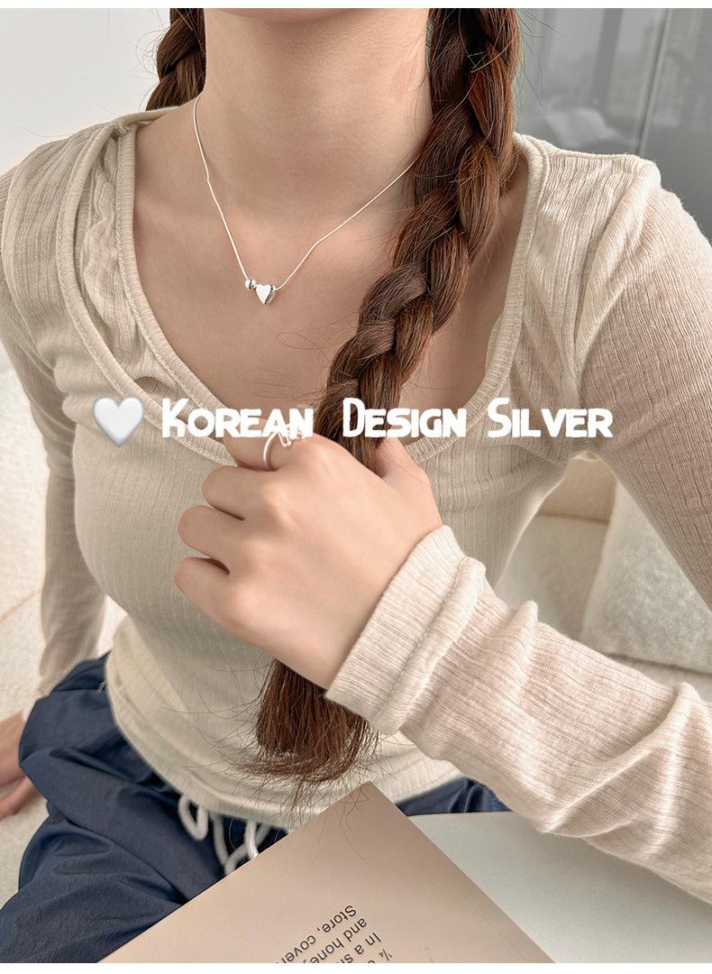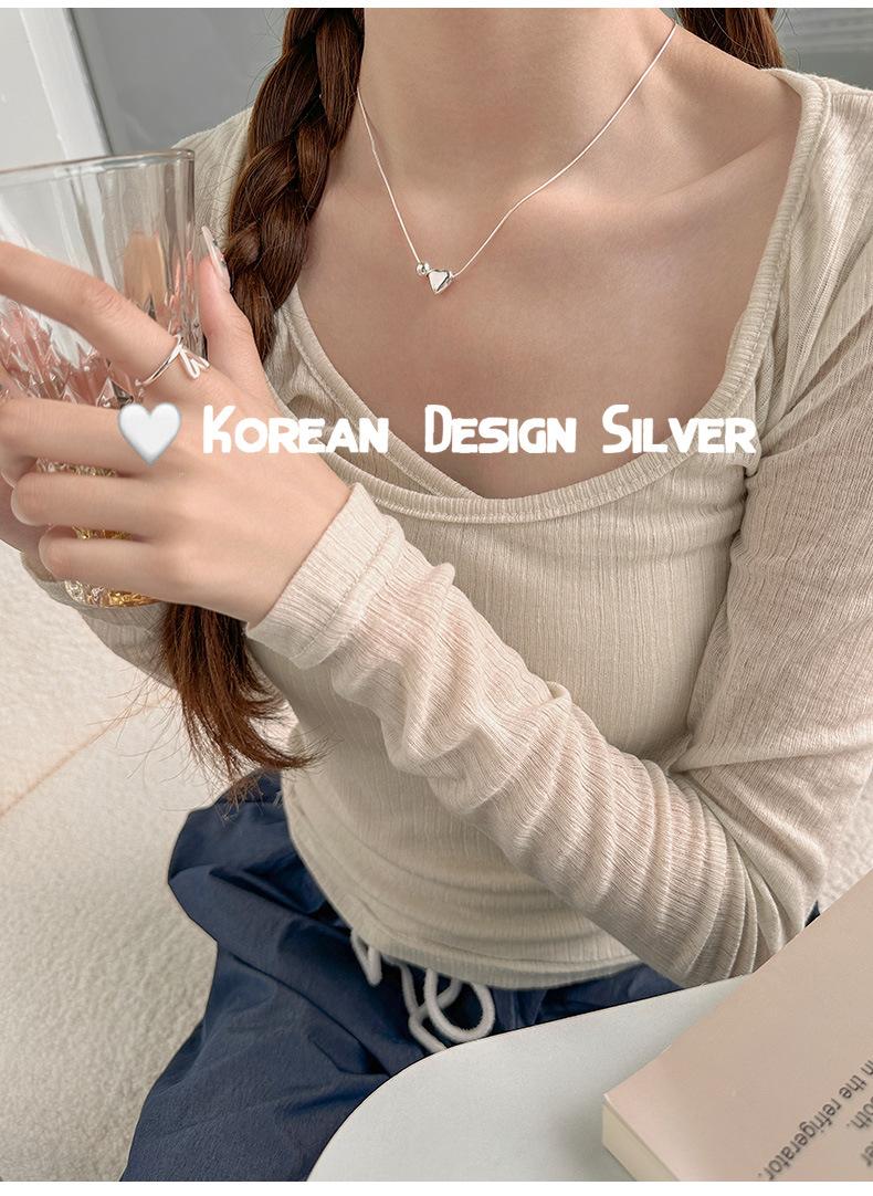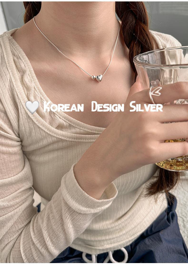 Collar de plata de ley S925 de lujo, estilo coreano, con forma de bola de metal, cadena de clavícula con forma de corazón, exquisito collar de alta gama para mujer.