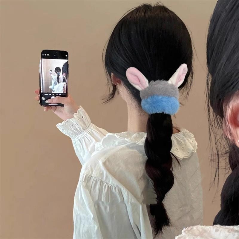 ¡Dulce y glutinoso! ¡Lindo anillo de pelo de peluche de zorro! Cuerda de pelo de conejo de alta calidad para mujer, combinable con todo, para otoño e invierno.