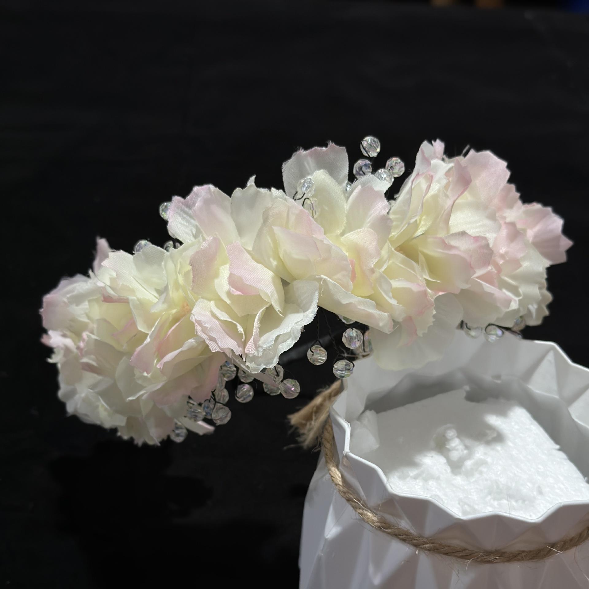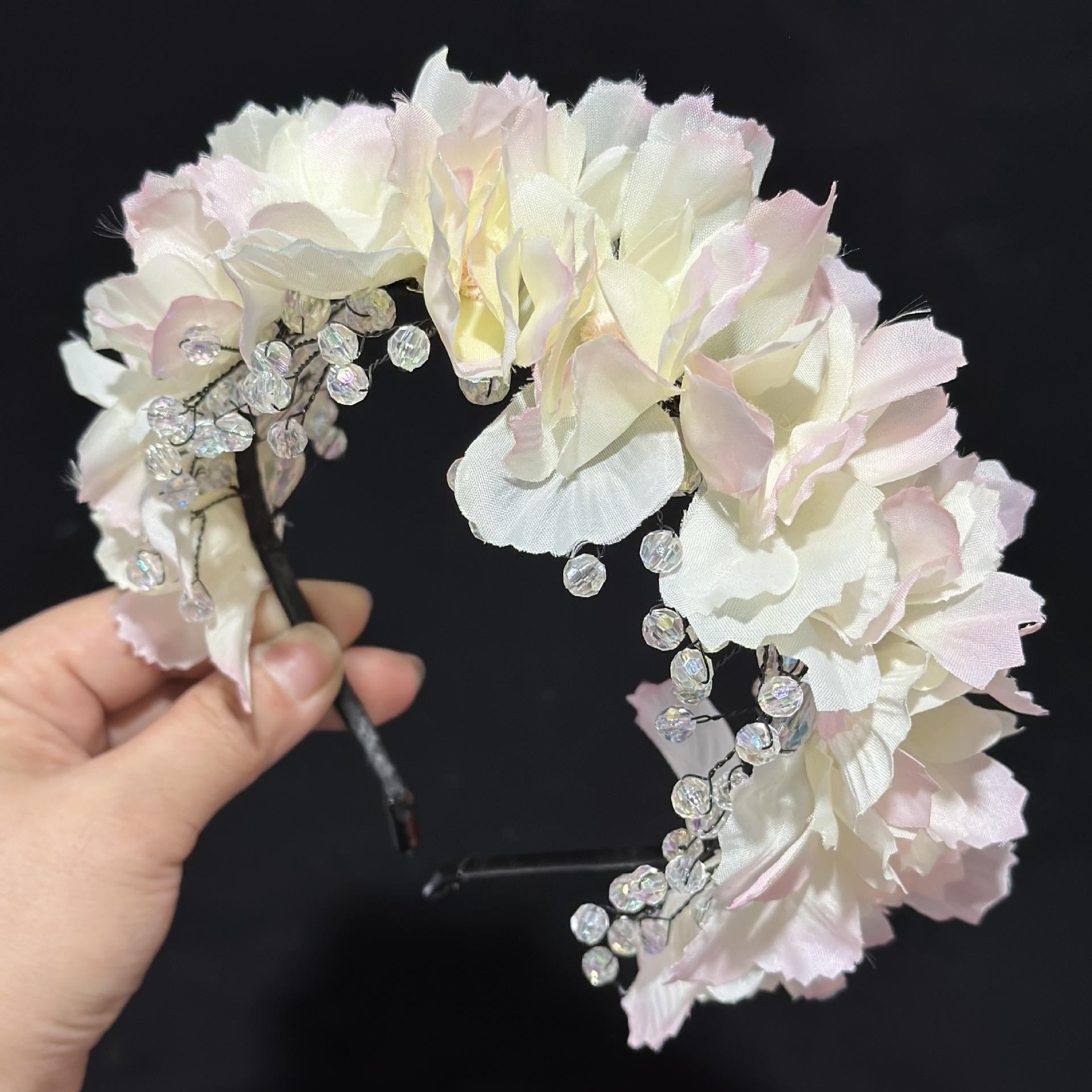 Diadema con flores estilo Mori para mujer, estilo transfronterizo, de alta gama, con cuentas de cristal, horquilla y flores, para primavera y verano