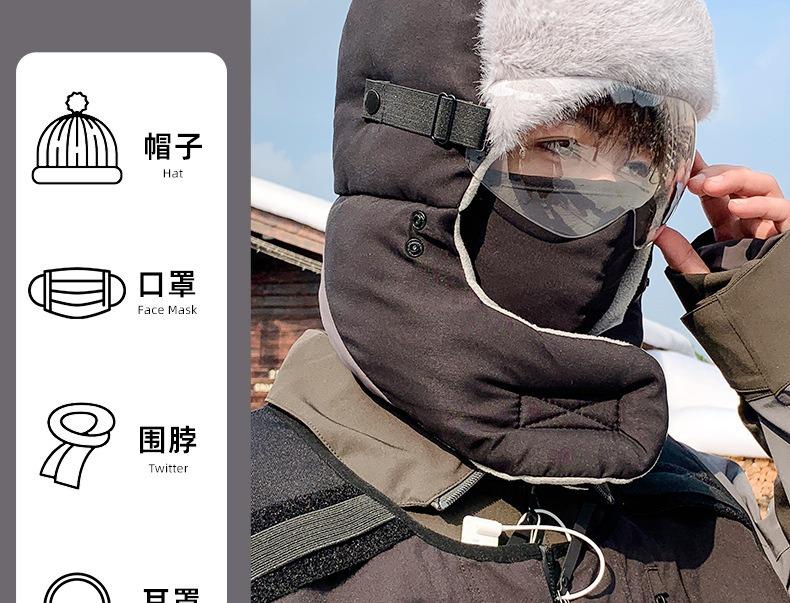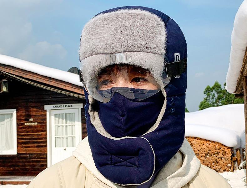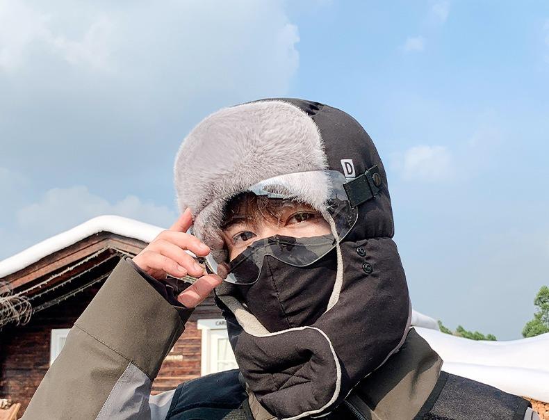 Invierno nuevo ciclismo cálido protección contra el frío orejeras gorro Lei Feng para hombre invierno para montar al aire libre gorro cortavientos [con lente]]