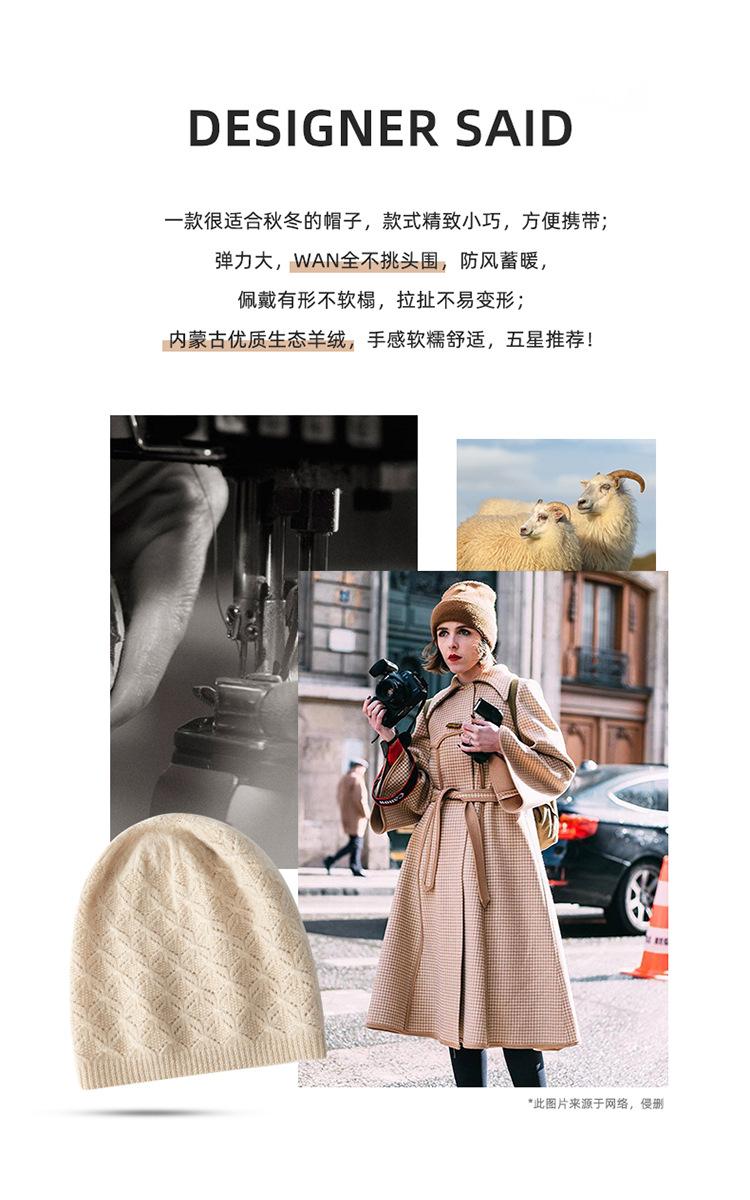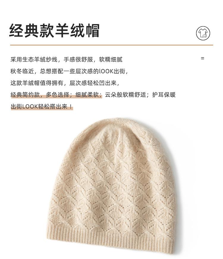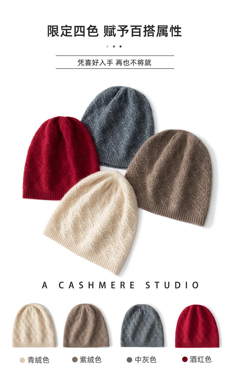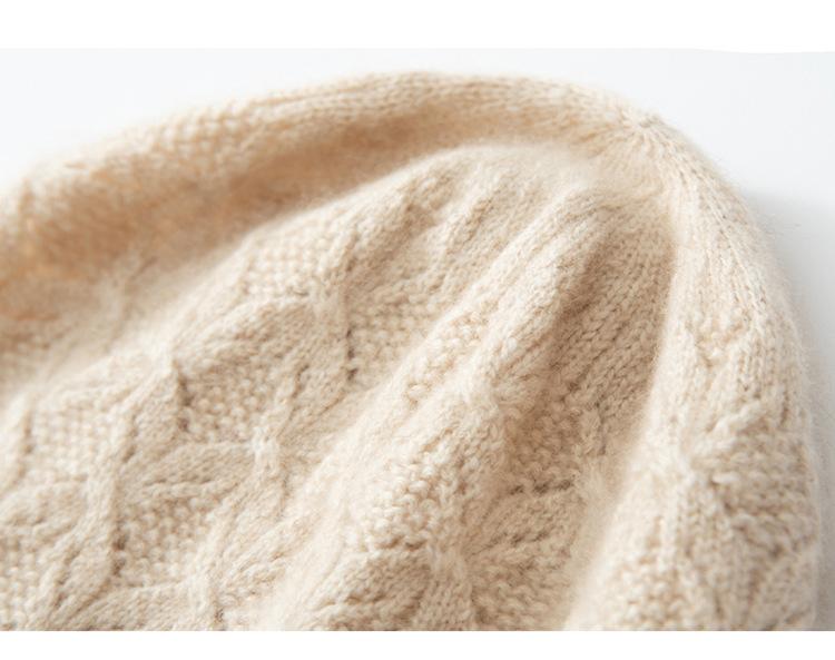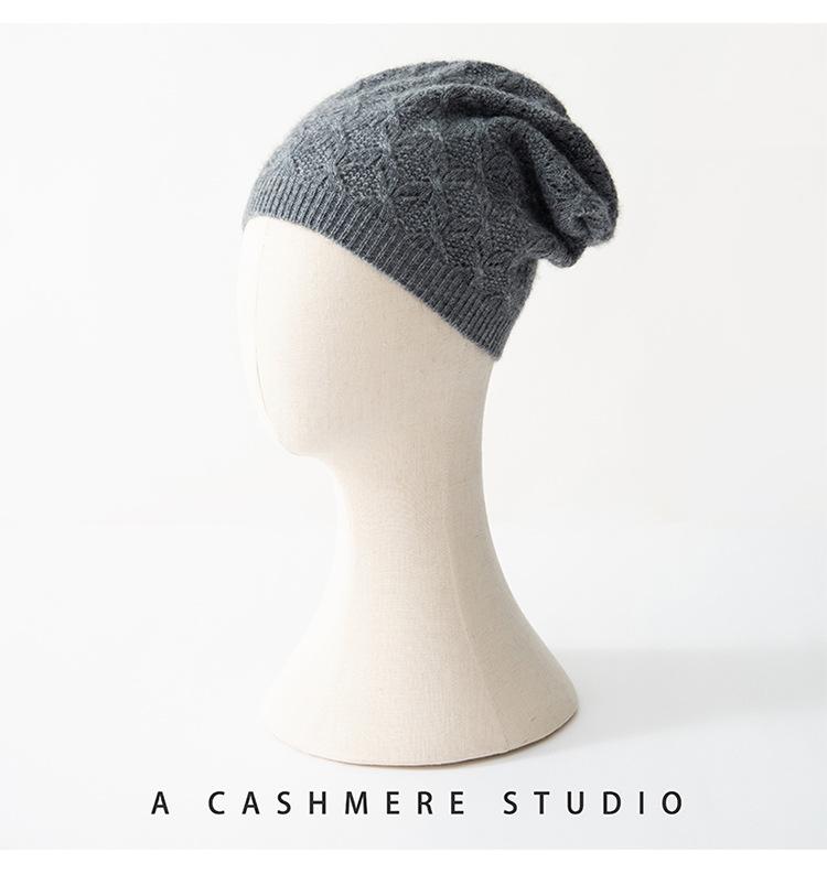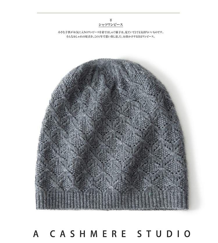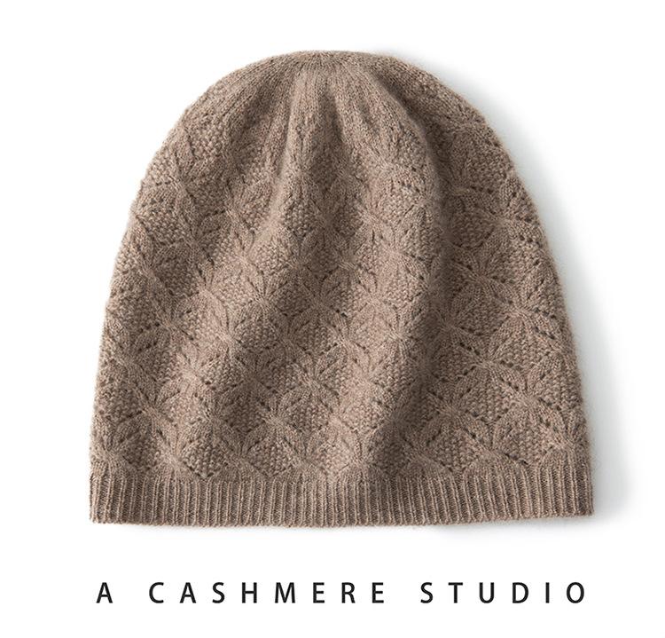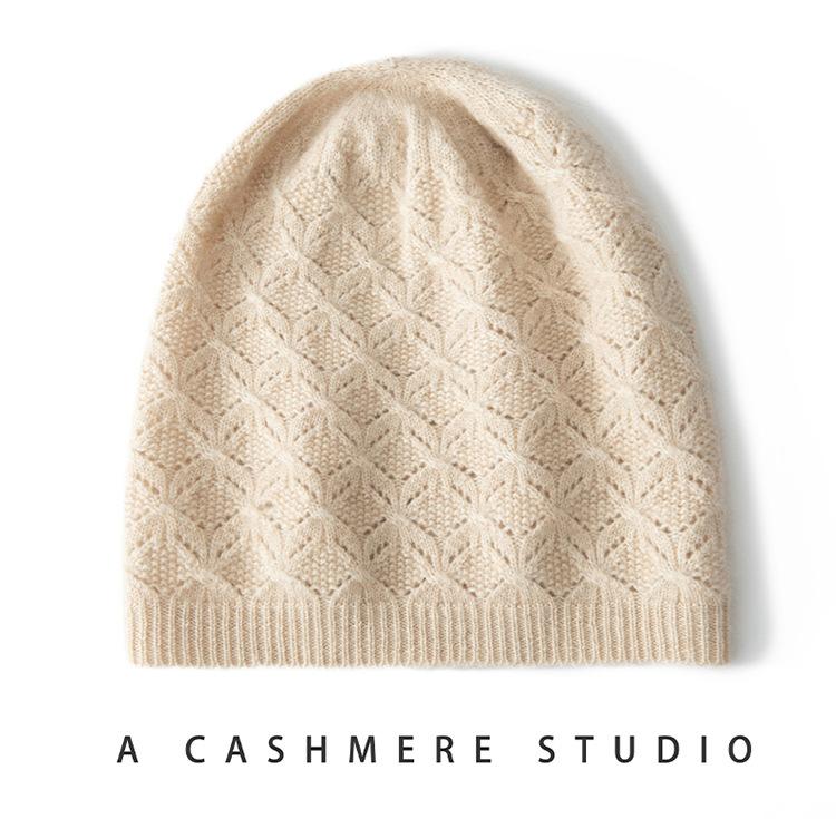 Gorro de punto de cachemira hueco de nueva moda para otoño e invierno, gorro unisex informal de punto de lana cálido con orejas