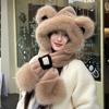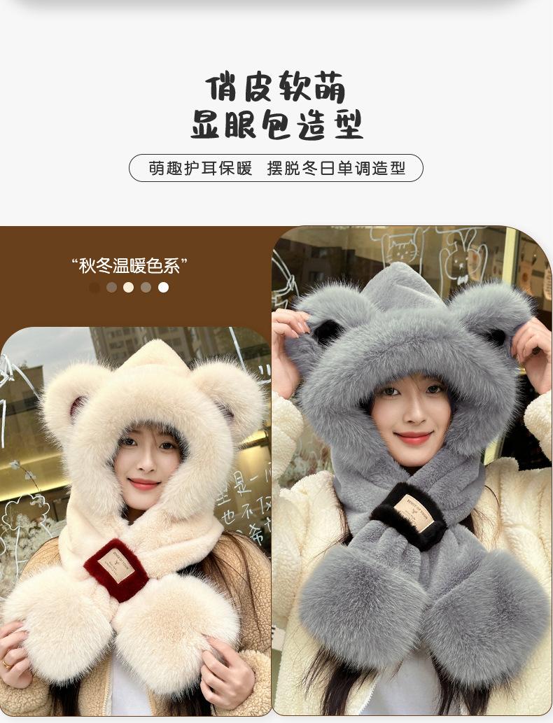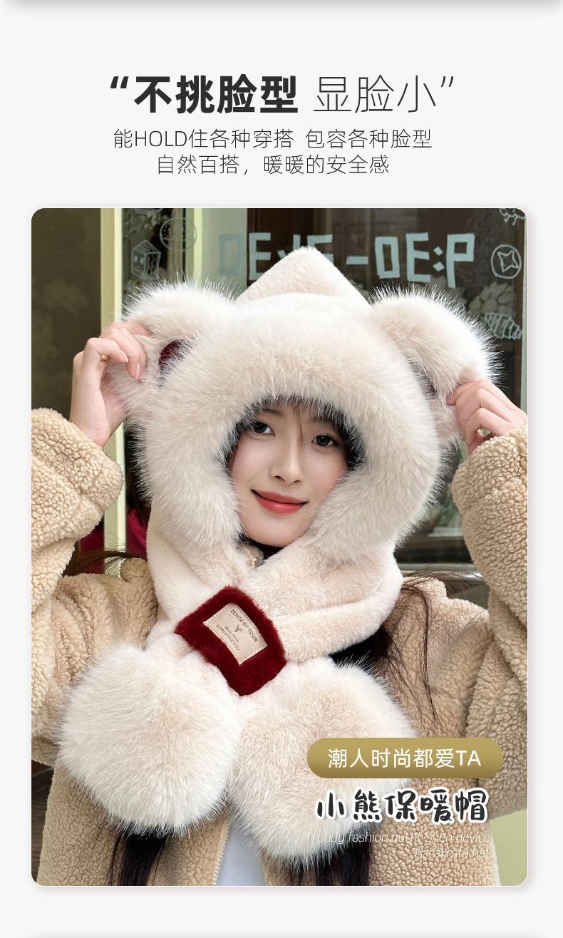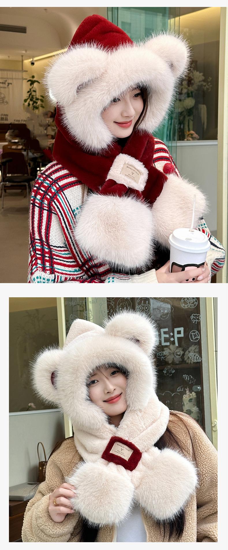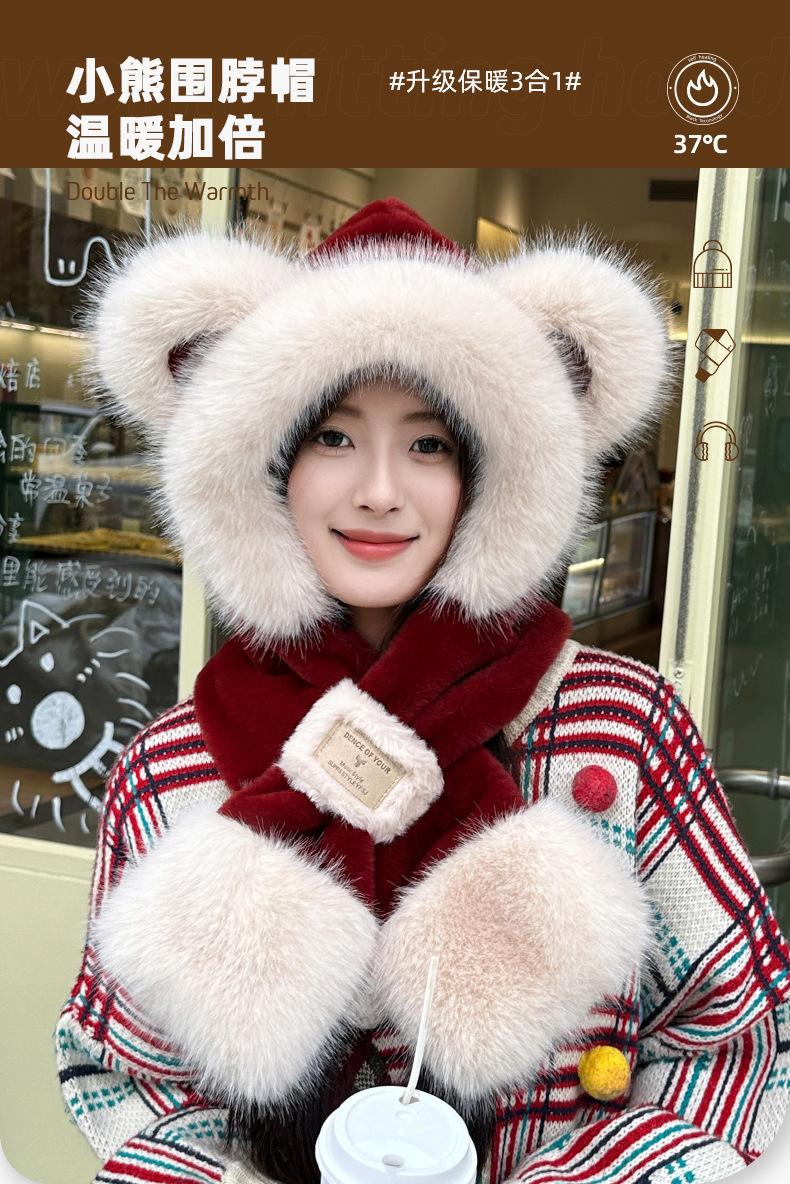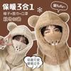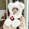 Gorro de Oso Bufanda Integrada Engrosada Cálida Felpa Protección para las Orejas Gorro para Mujer en Otoño e Invierno Lindo Pequeño que Muestra el Rostro Bufanda Cruzada a Prueba de Frío