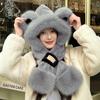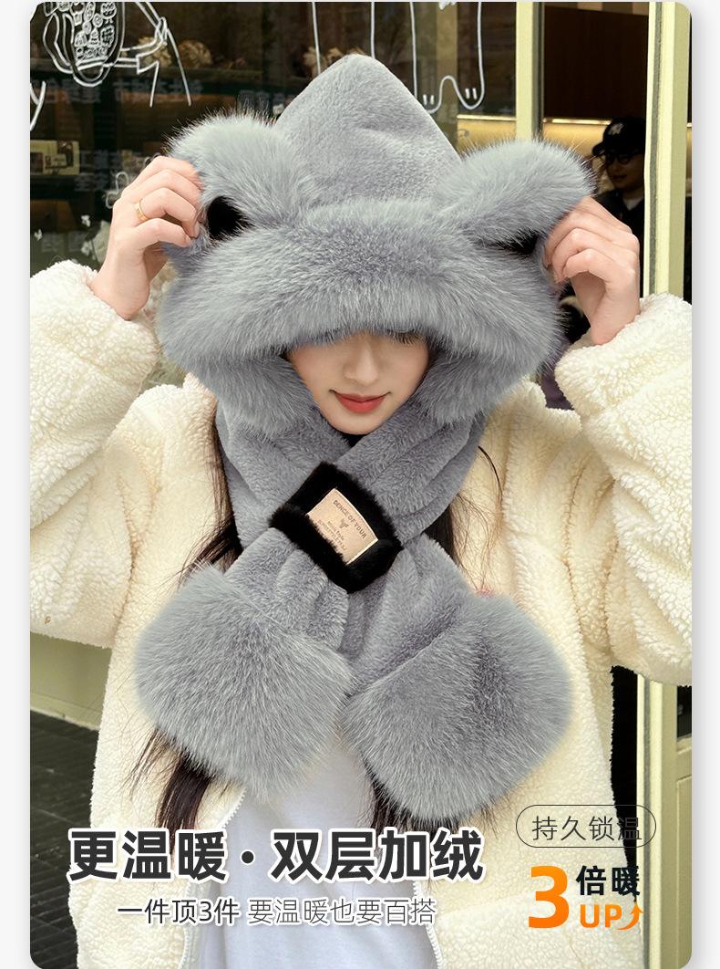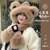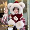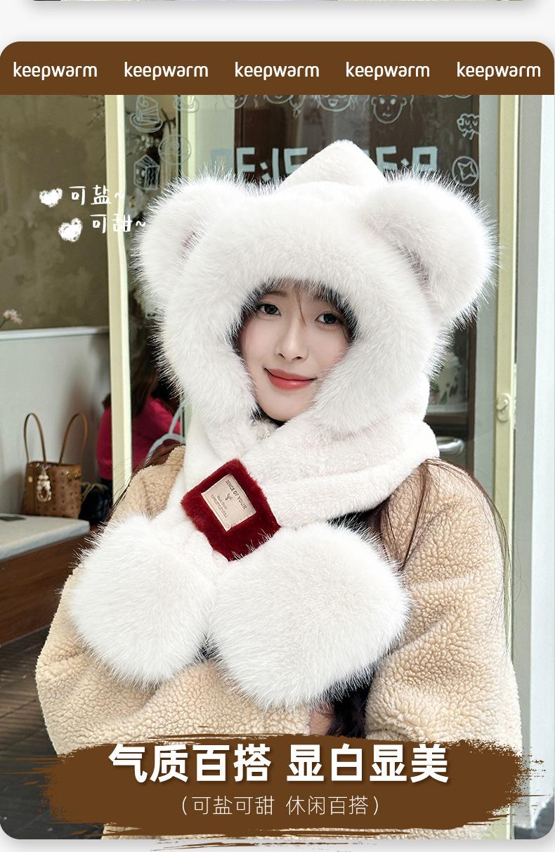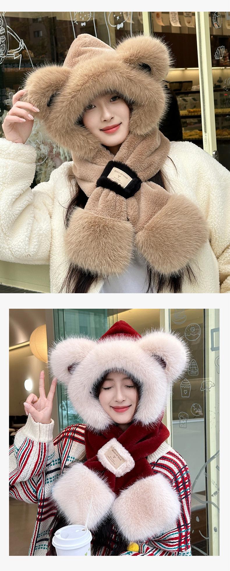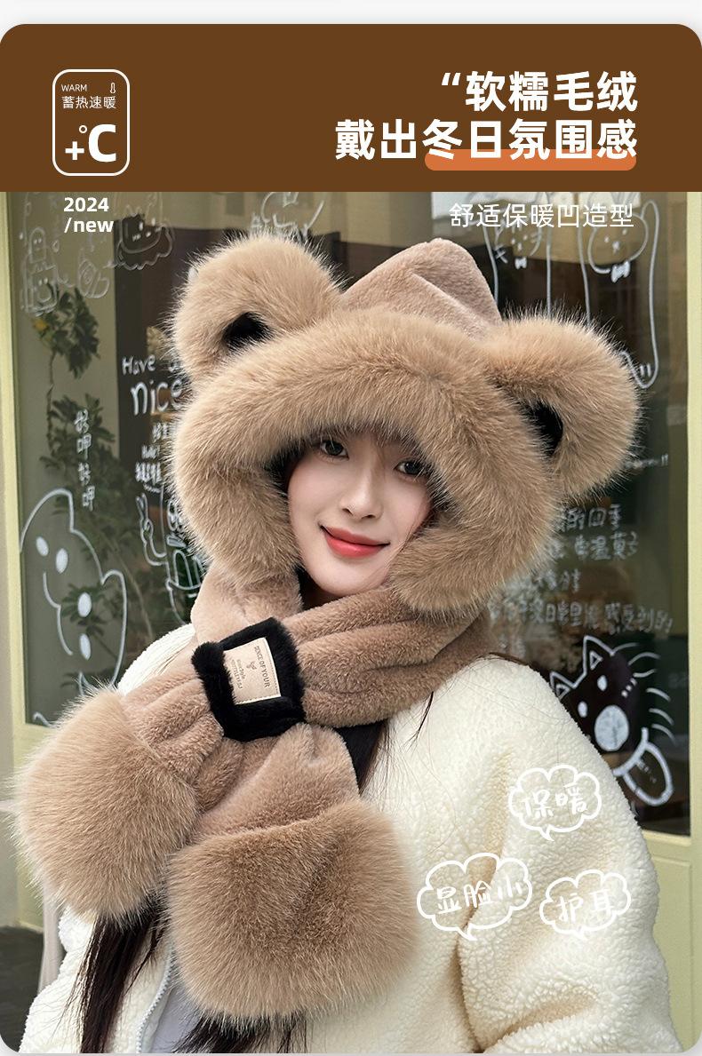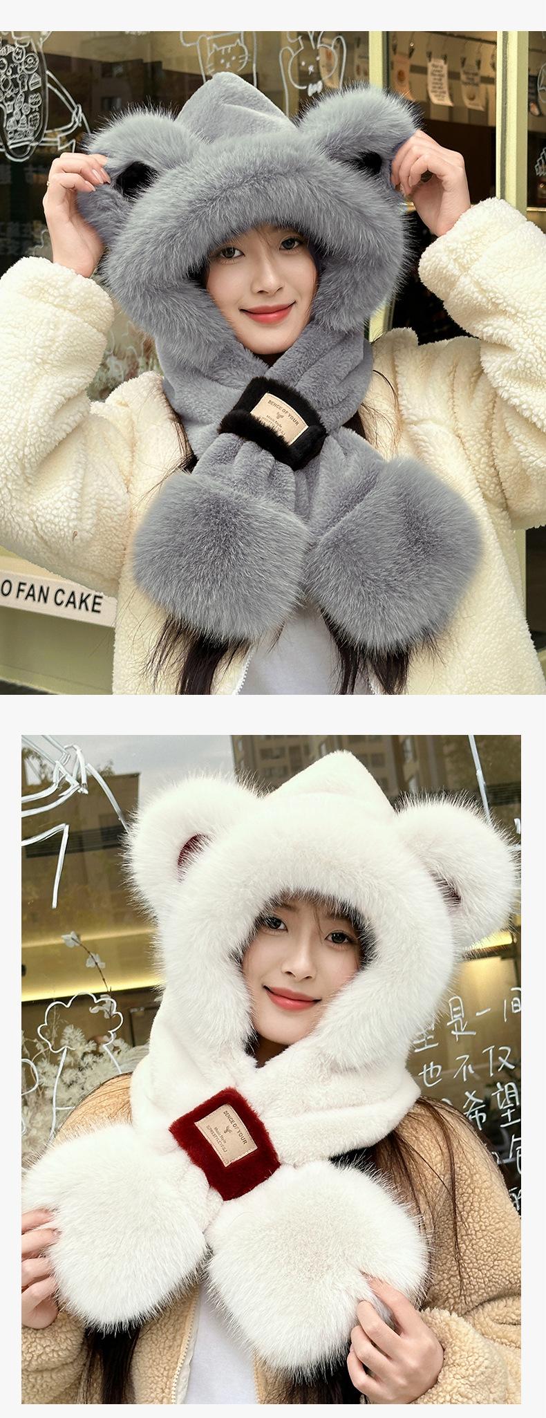 Gorro de Oso Bufanda Integrada Engrosada Cálida Felpa Protección para las Orejas Gorro para Mujer en Otoño e Invierno Lindo Pequeño que Muestra el Rostro Bufanda Cruzada a Prueba de Frío