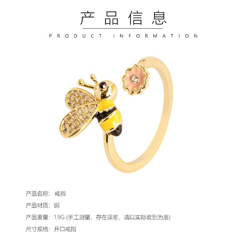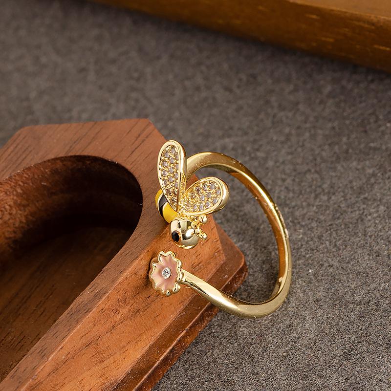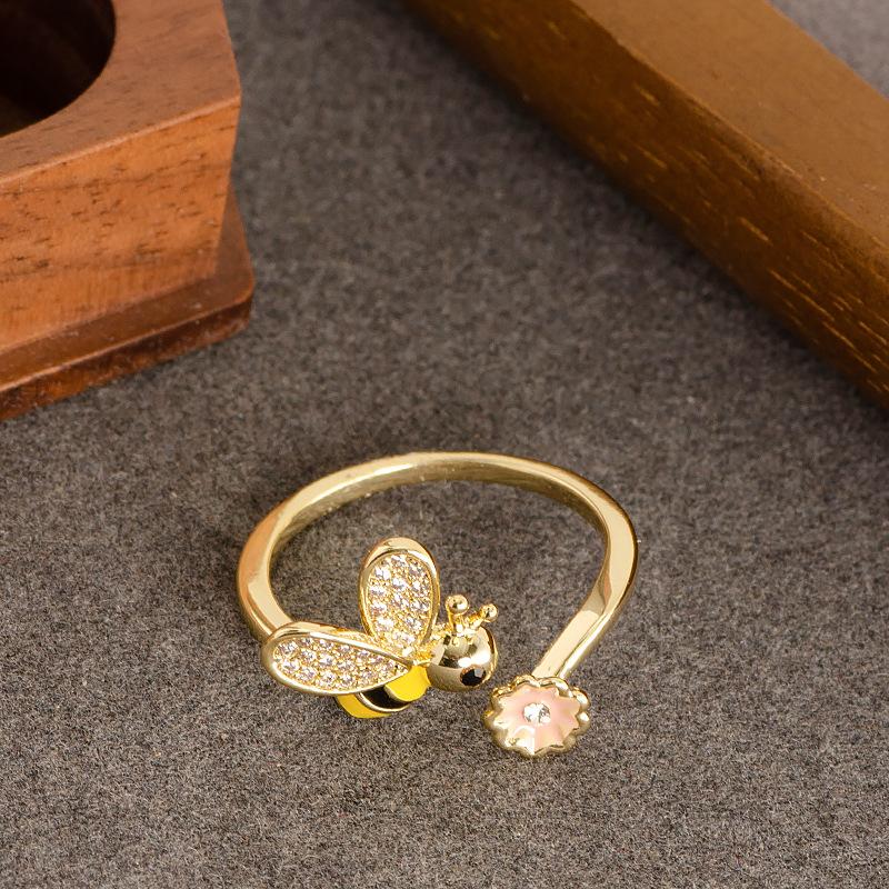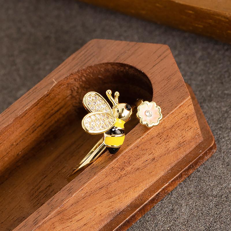 Anillo de Abeja con Incrustaciones de Diamantes Lindo Esmalte Goteado Creativo Estilo Moda Coreano para Mujer Lujo Ligero de Alta Gama Color Libre Anillo Vivo