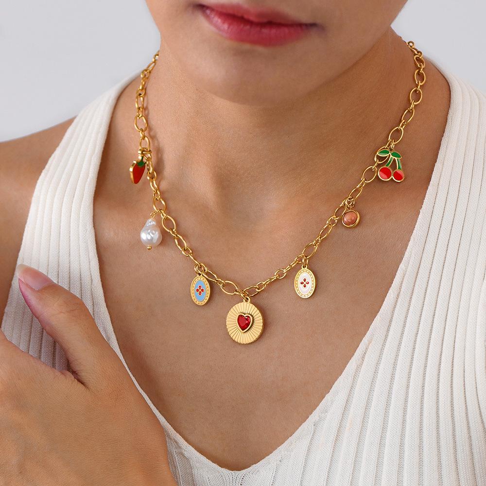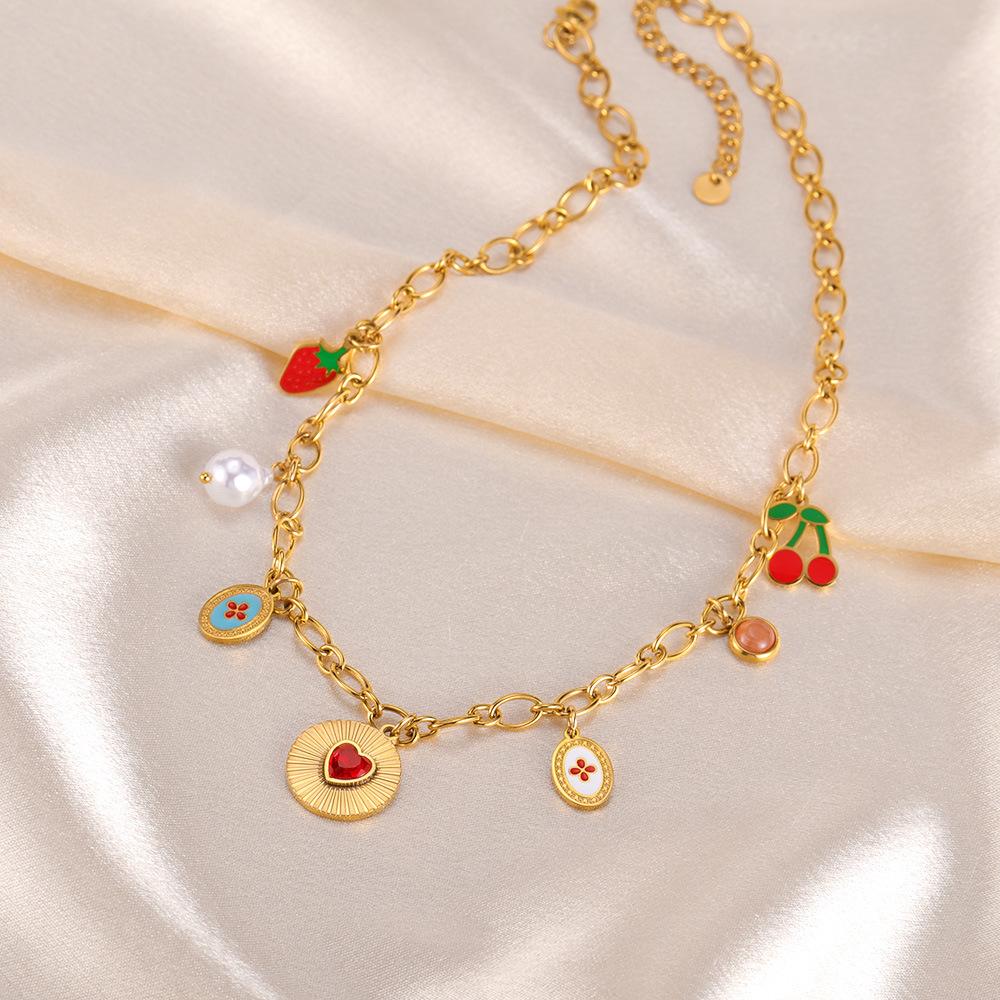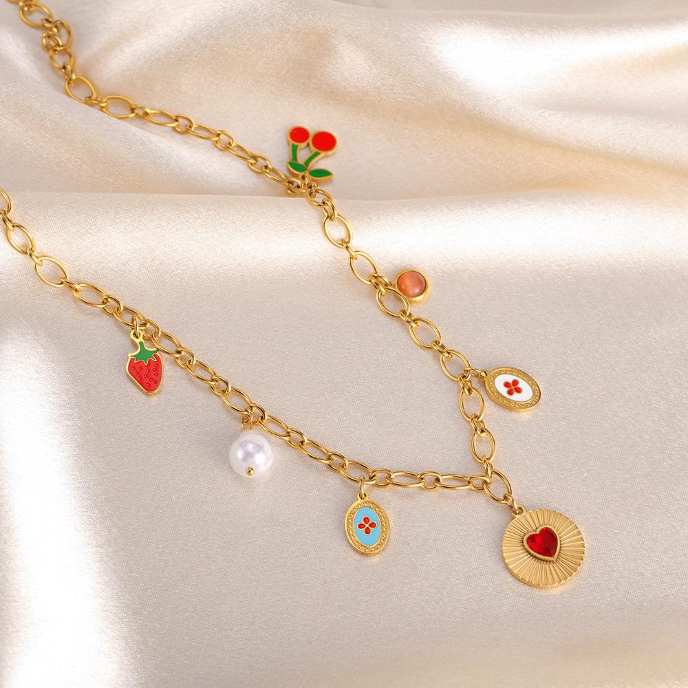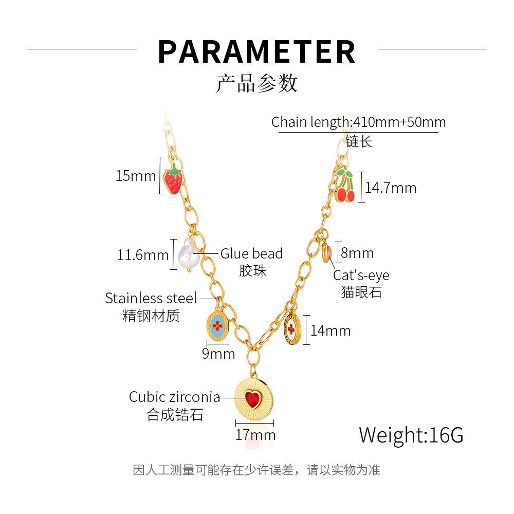 Collar con personalidad transfronteriza de Europa y Estados Unidos para mujer, de acero inoxidable, con elemento creativo de fruta, perla, amor, ópalo, cadena de clavícula, venta al por mayor