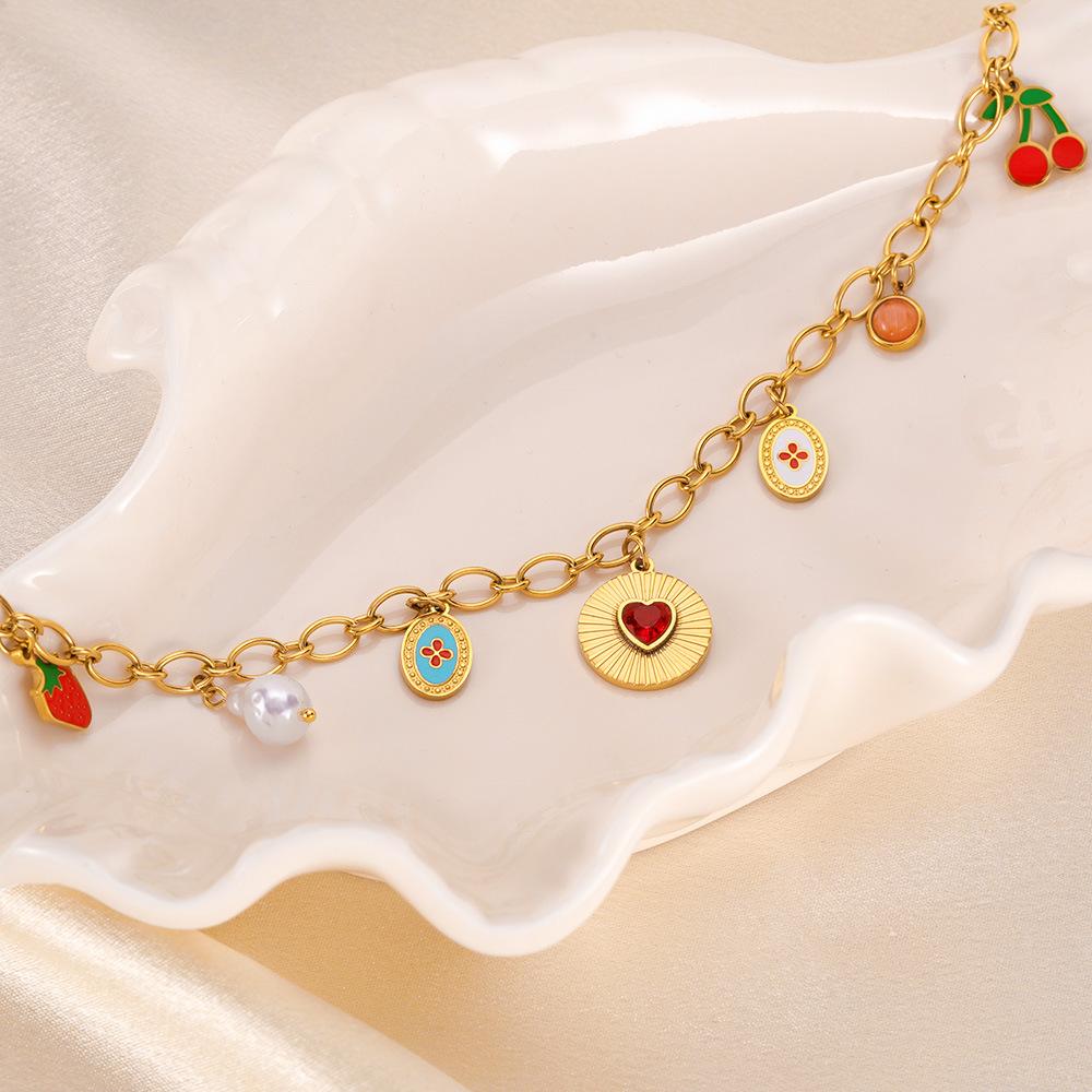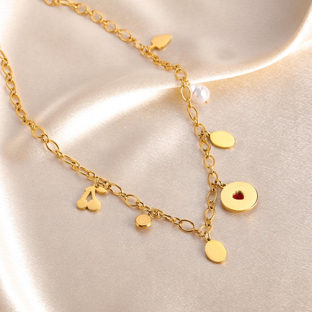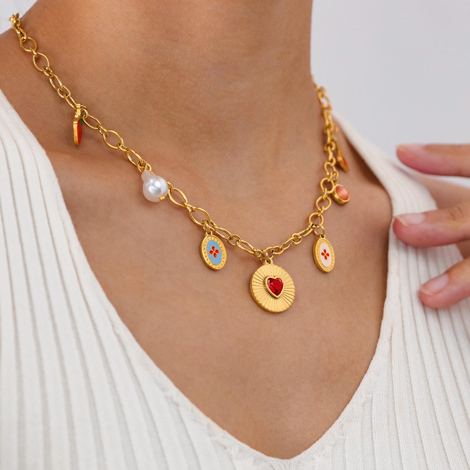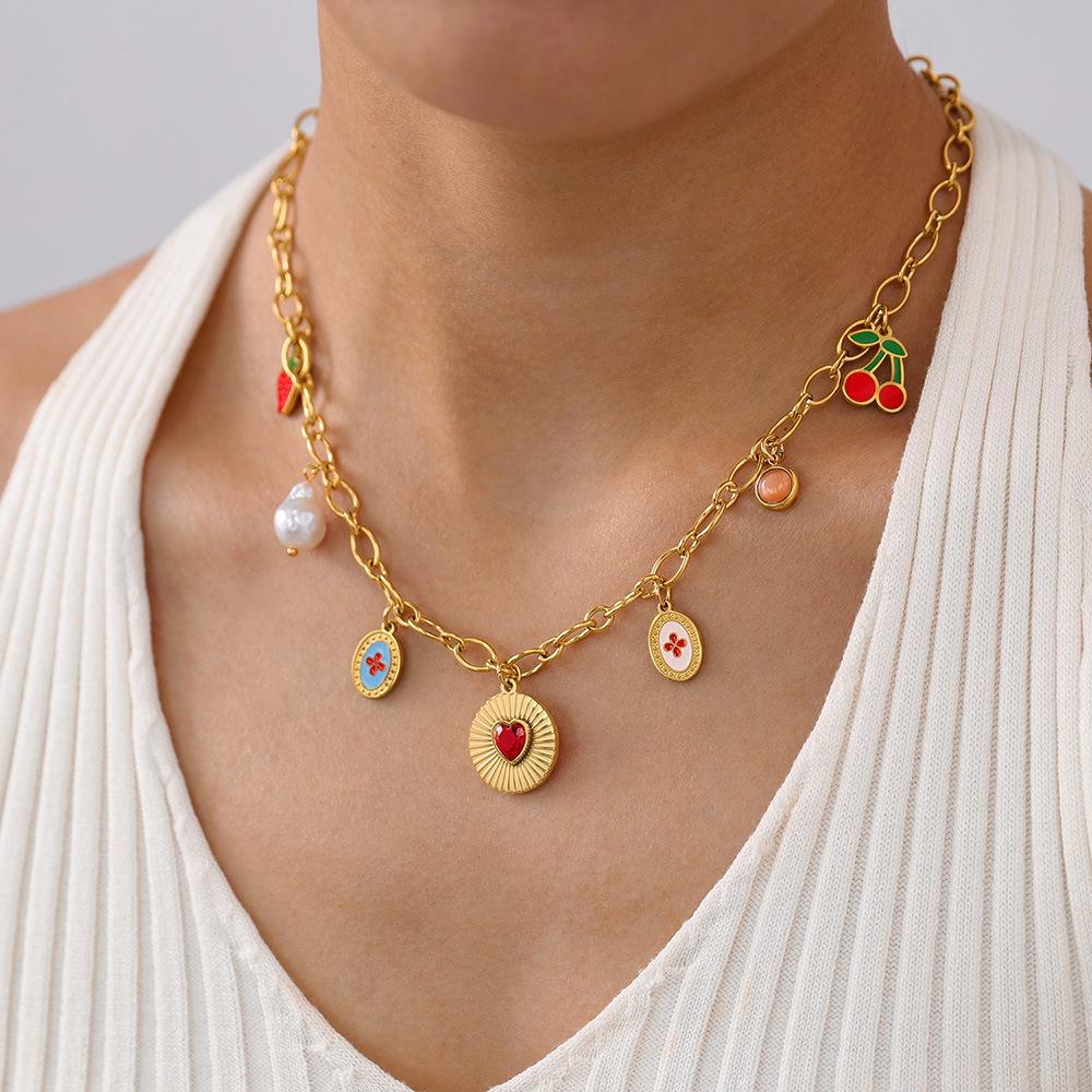 Collar con personalidad transfronteriza de Europa y Estados Unidos para mujer, de acero inoxidable, con elemento creativo de fruta, perla, amor, ópalo, cadena de clavícula, venta al por mayor