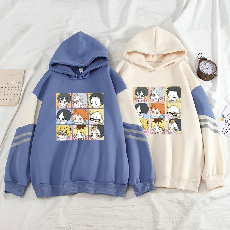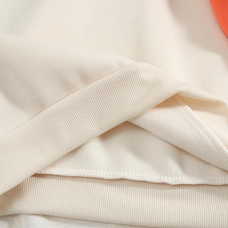 Otoño e Invierno Nuevo Sudadera de Contraste Suelta Talla Grande con Forro Polar Top Grueso Suéter con Combinación de Colores 0122