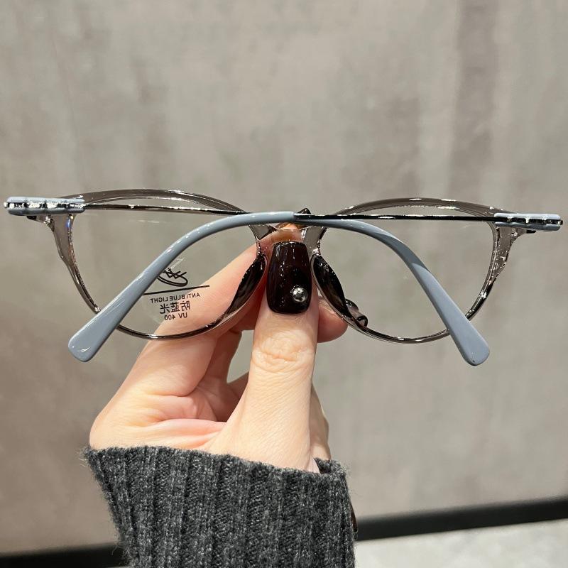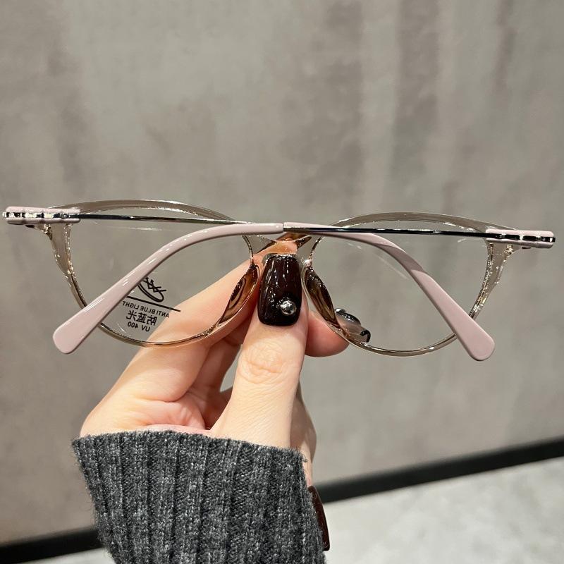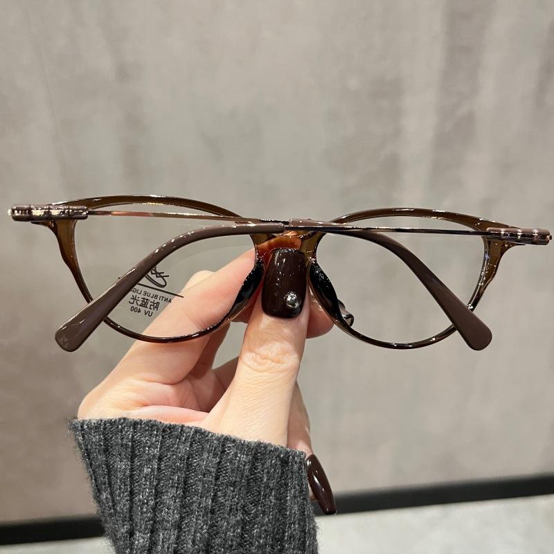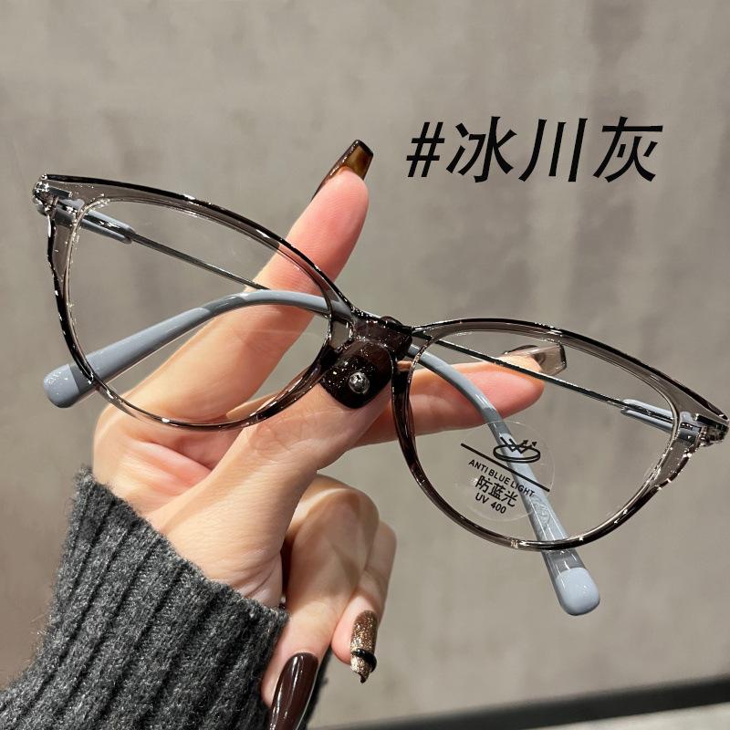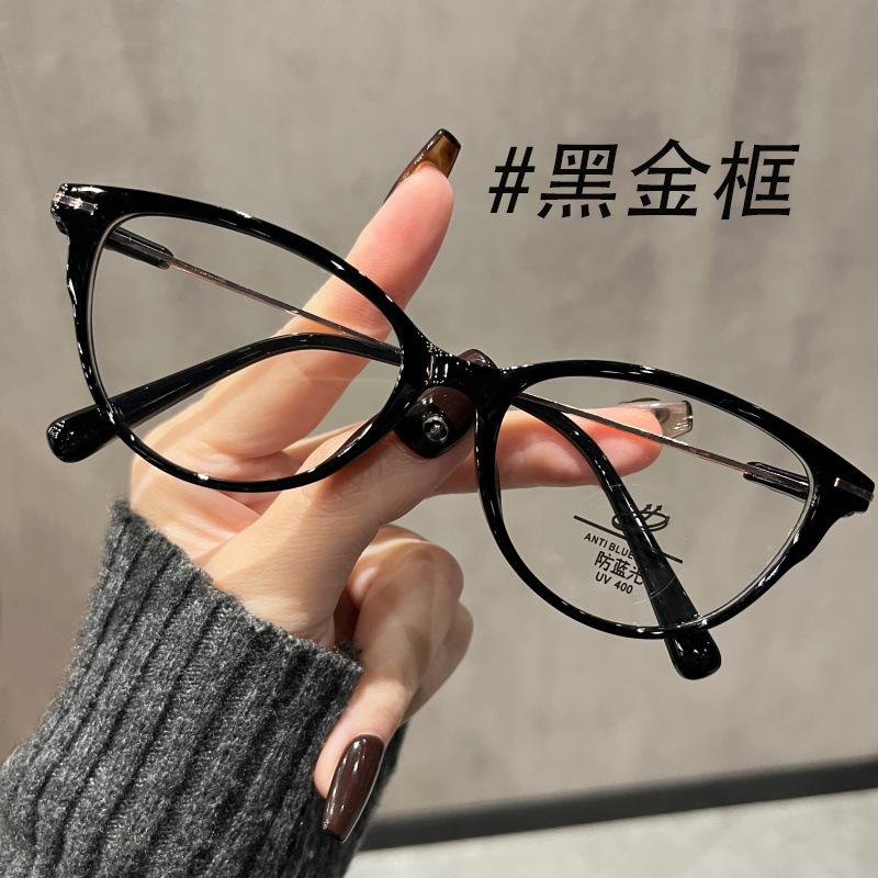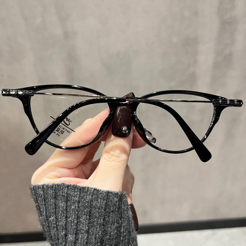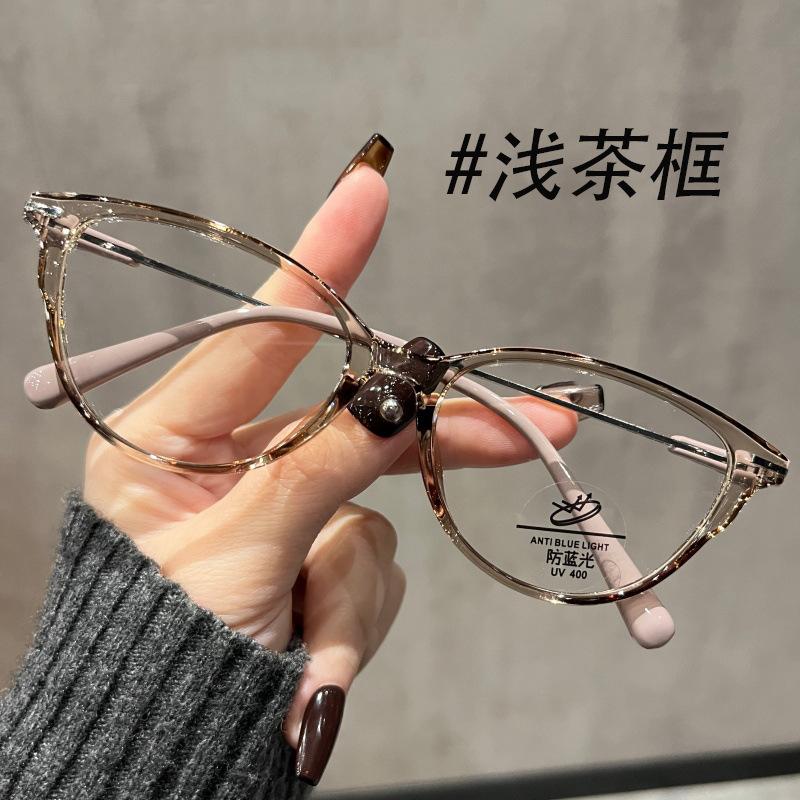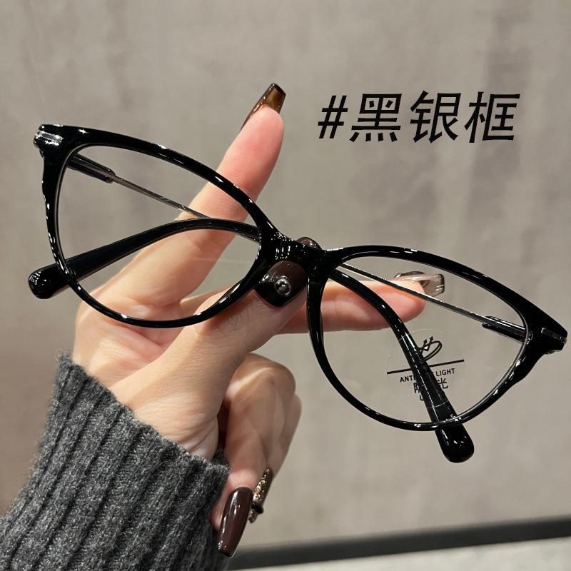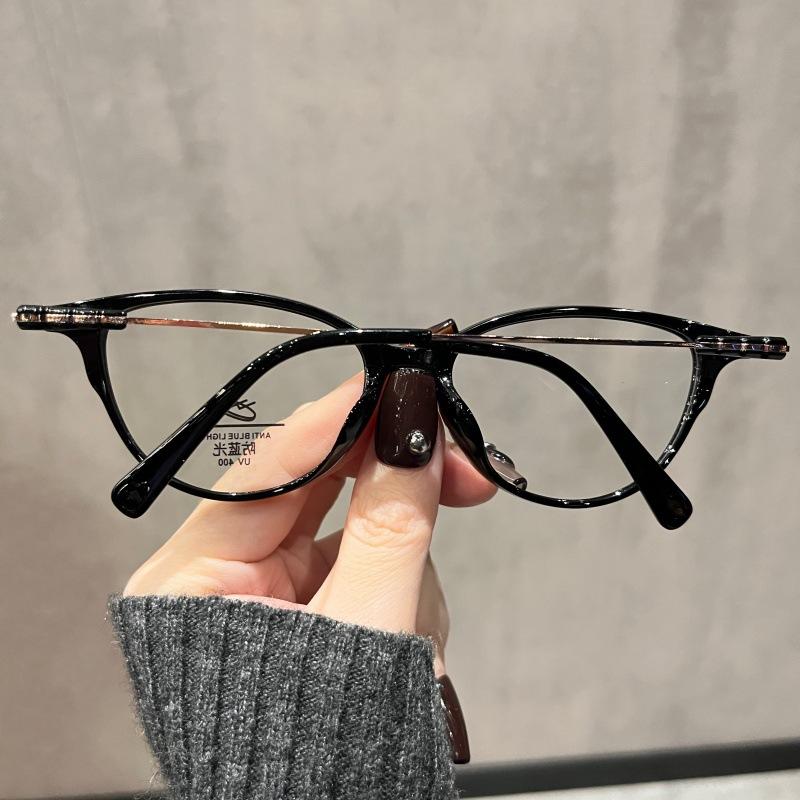 Armazón de Gafas Retro Coreano Tr90 Ojo de Gato de Alta Gama para Mujer Se Puede Equipar con Grado de Miopía Luz Anti-Azul Sin Maquillaje para Lucir Más Delgada