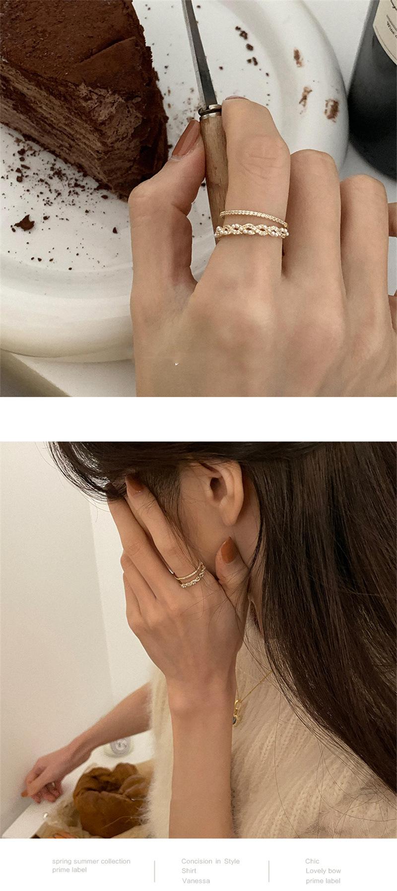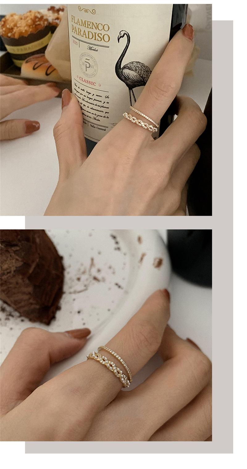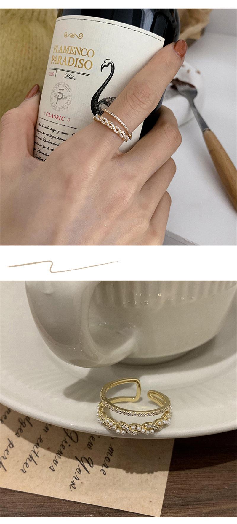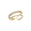 Anillo exquisito de diseño nicho de lujo ligero micro-incrustado de doble capa dorado temperamento femenino avanzado anillo de dedo índice anillo ajustable