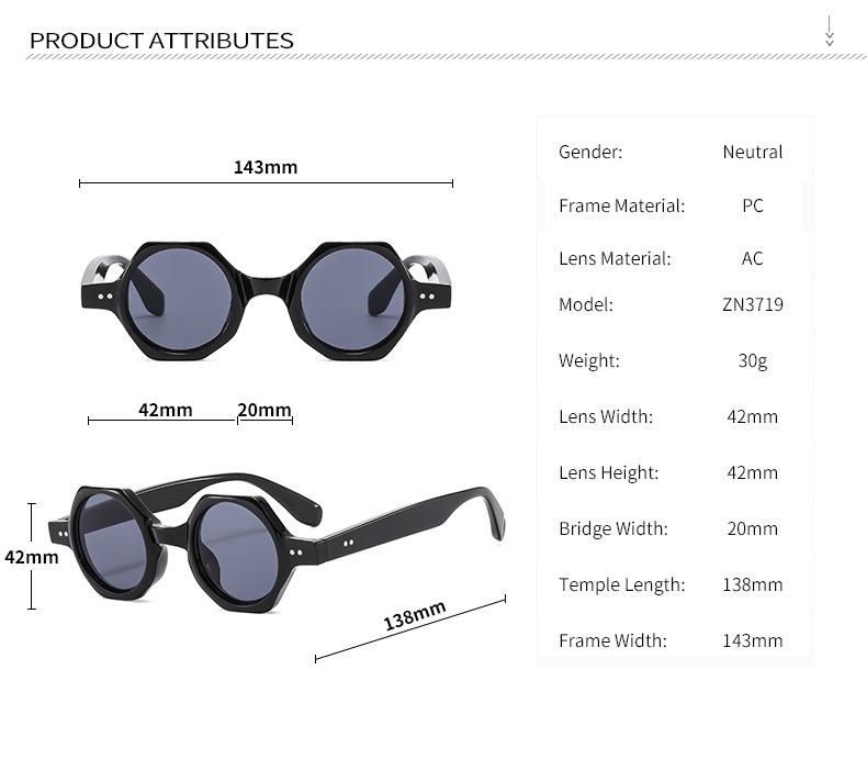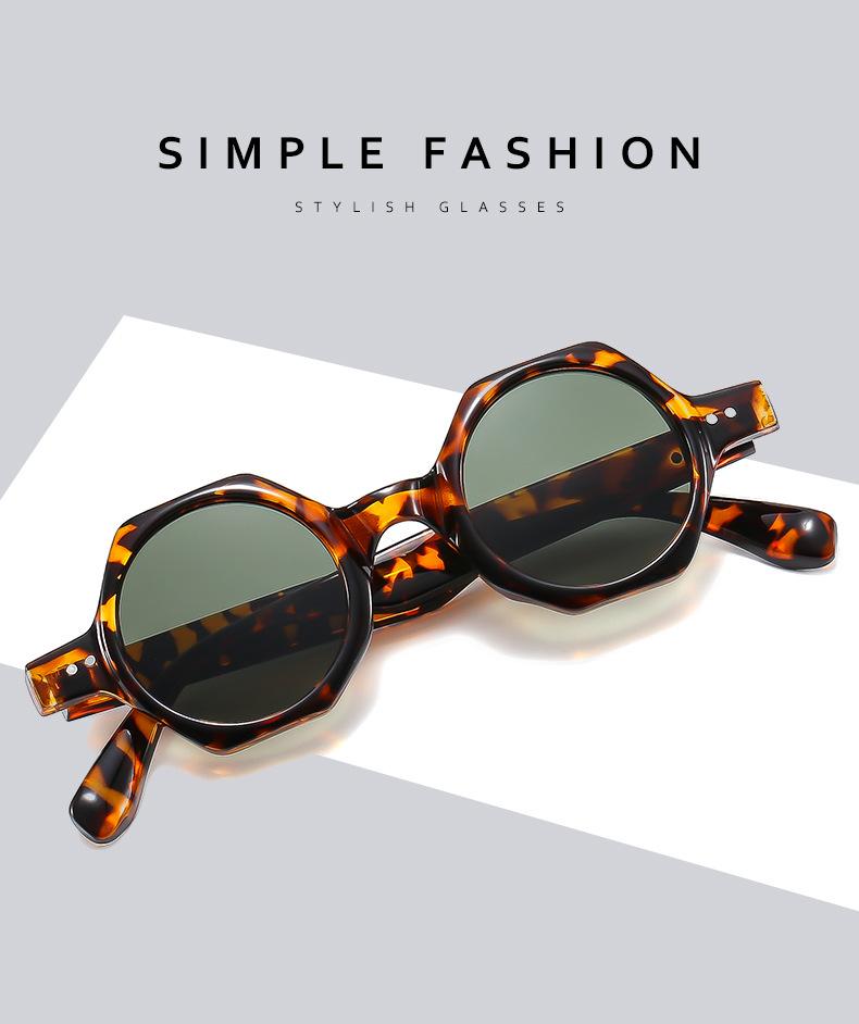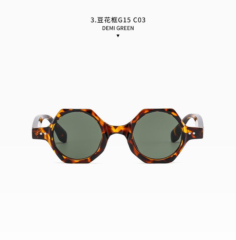 Nuevas gafas de sol retro con diseño de uñas de arroz y polígono con personalidad, gafas de sol de colores transfronterizos, tendencia de moda, gafas redondas pequeñas