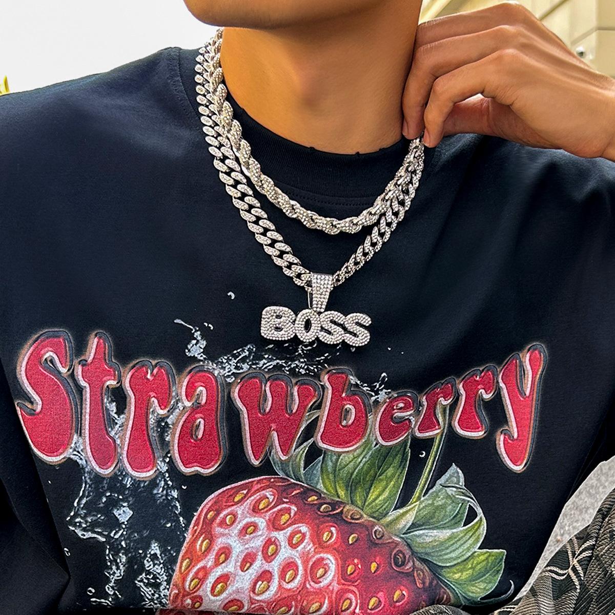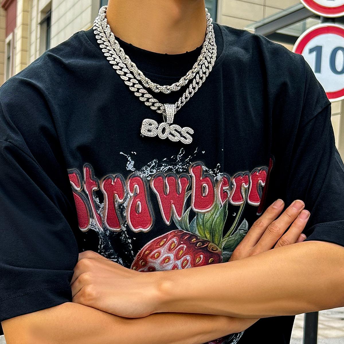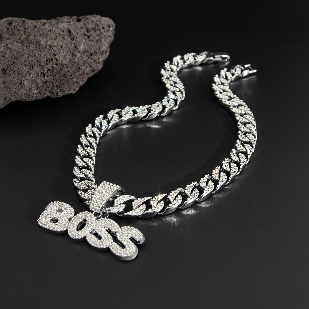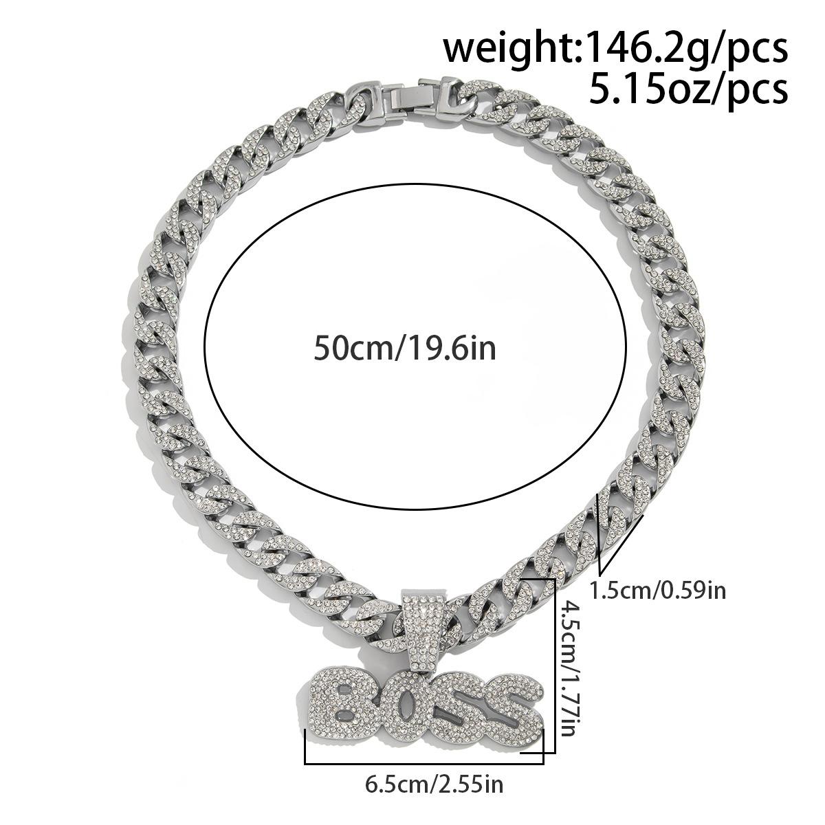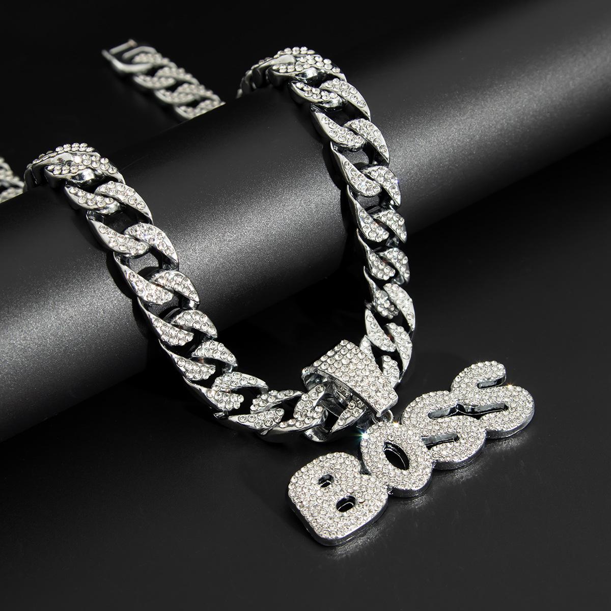 Collar con letras BOSS de diamantes completos y personalidad transfronteriza europea y americana, accesorios para hombre, cadena cubana de hip-hop, cadena de clavícula de nicho de hip-hop