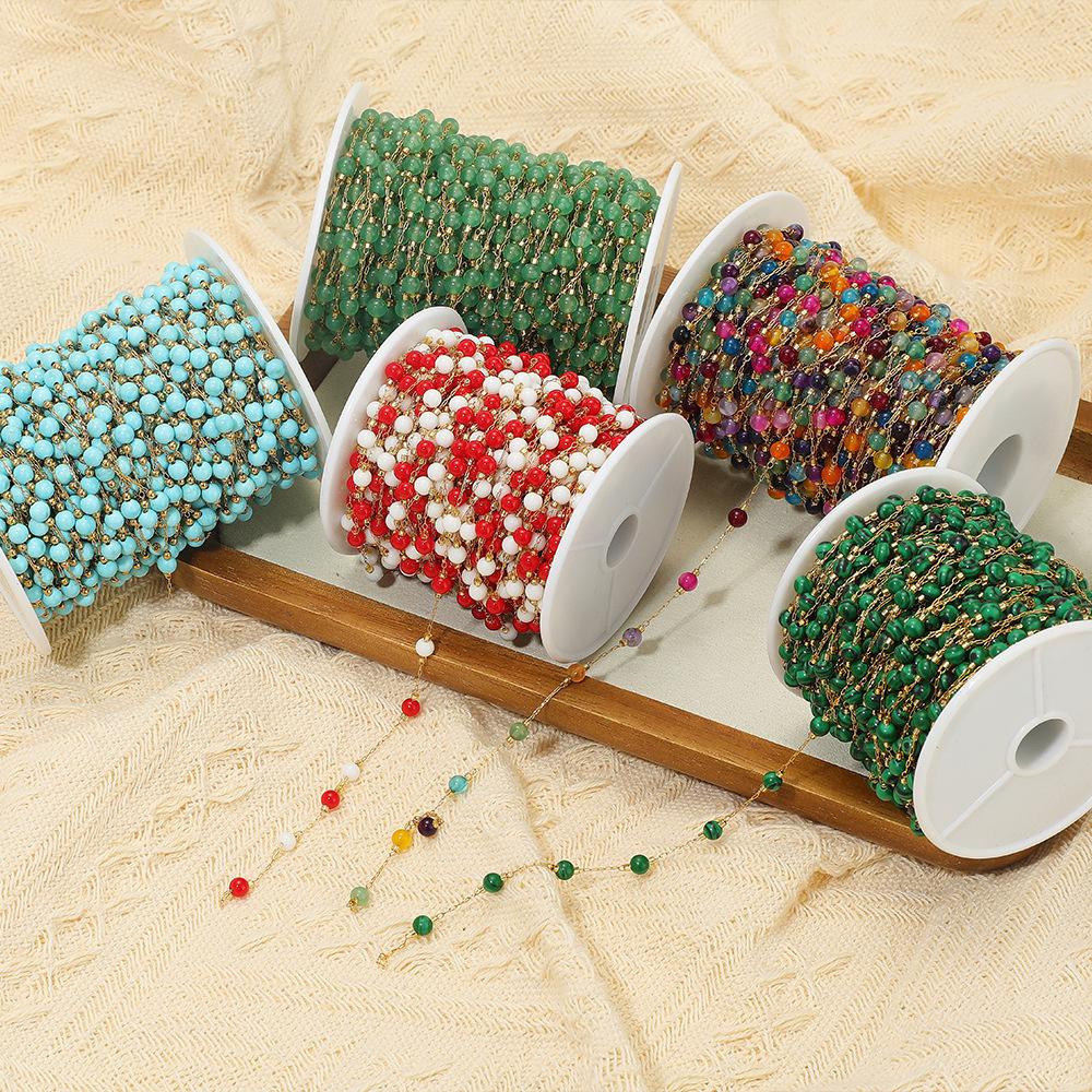 【Tamaño】Cadena dorada de 0.8 mm con cuentas redondas de 3 mm/4.5 mm