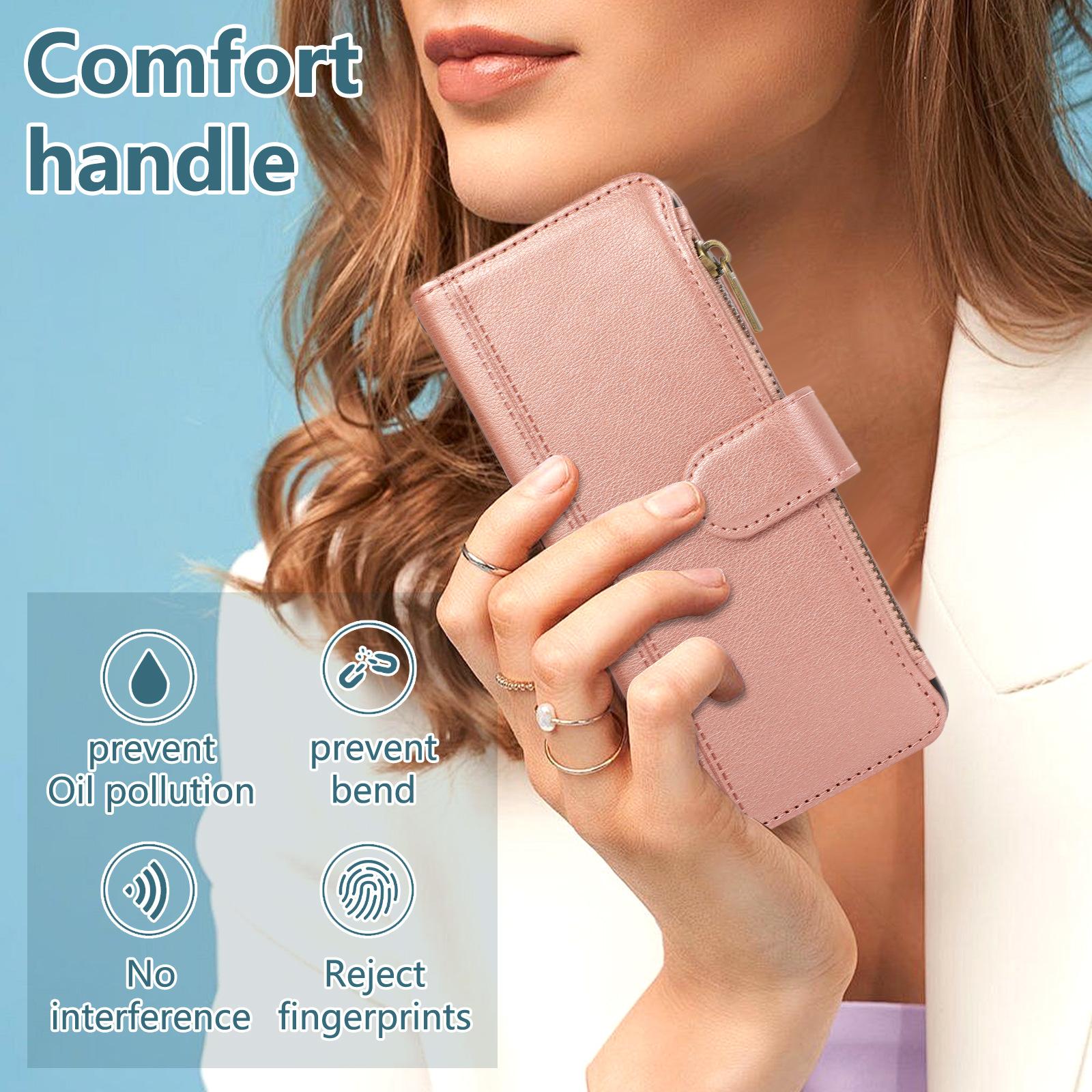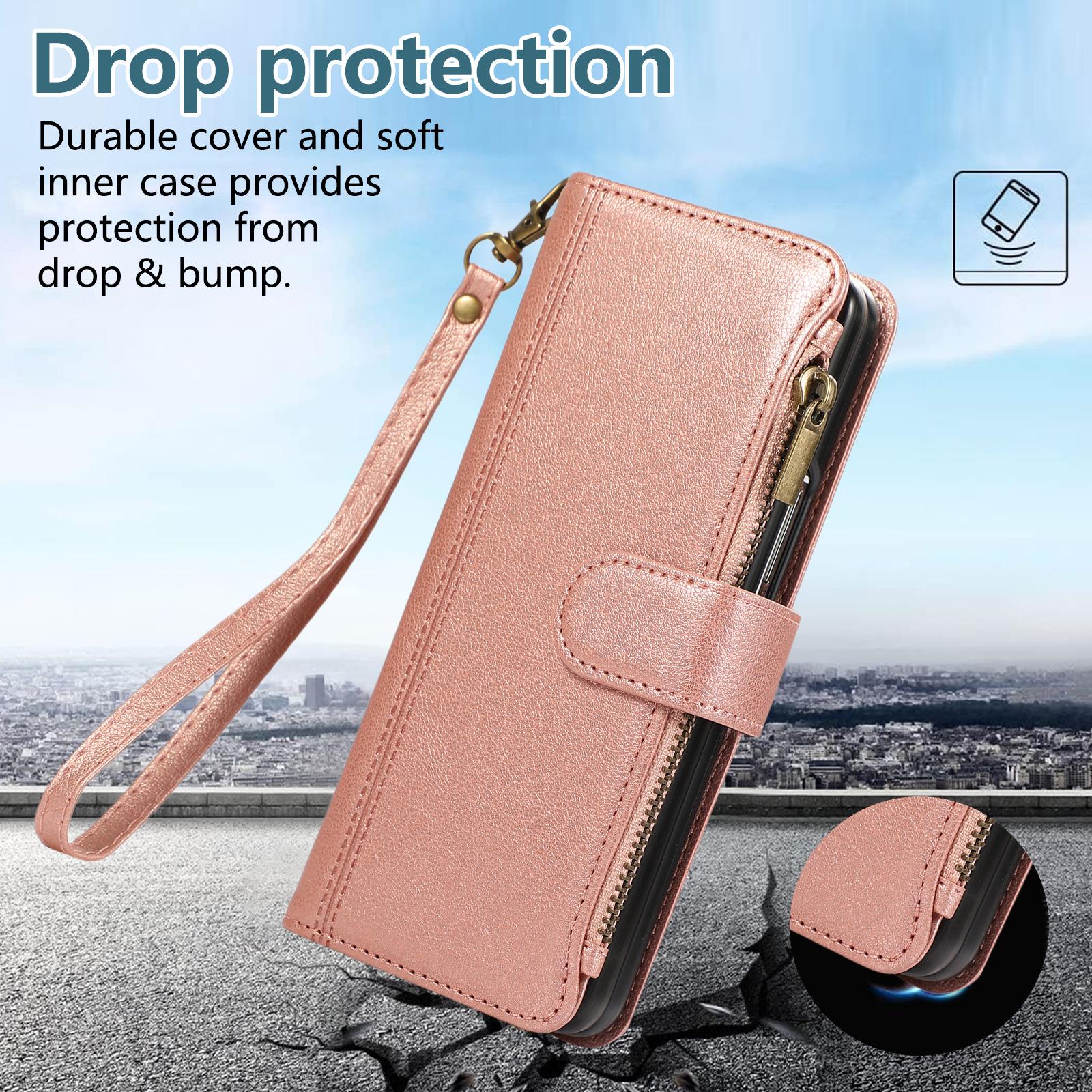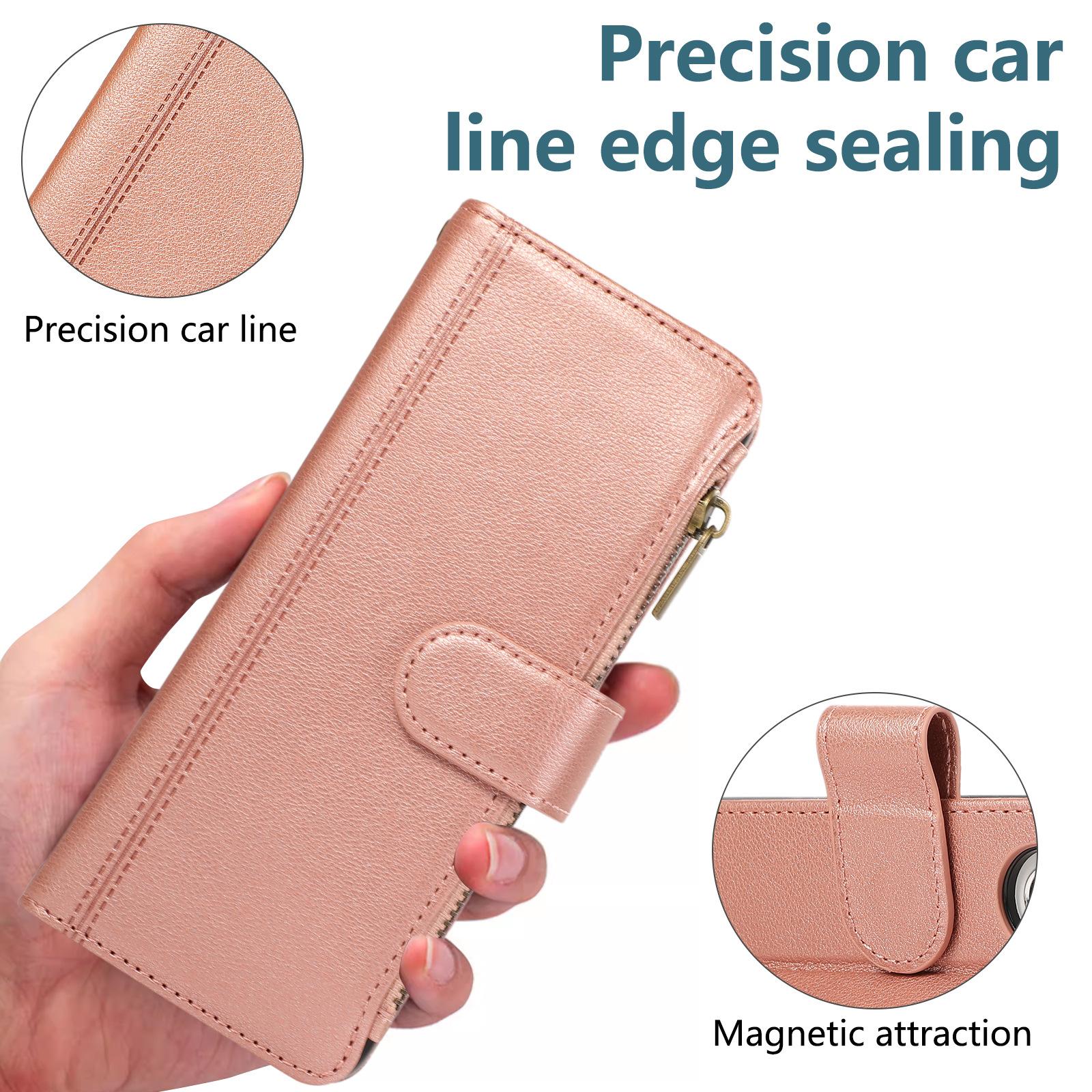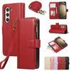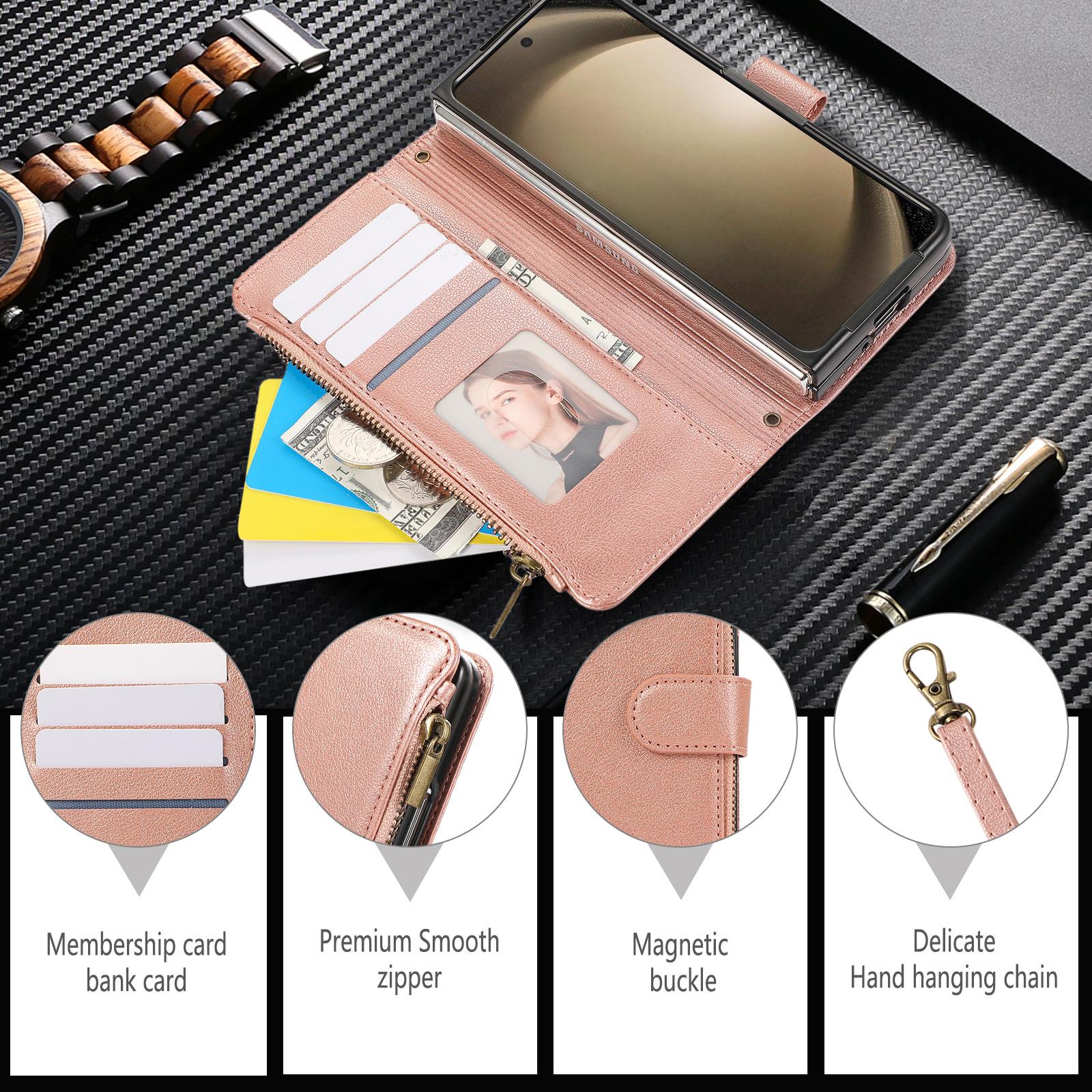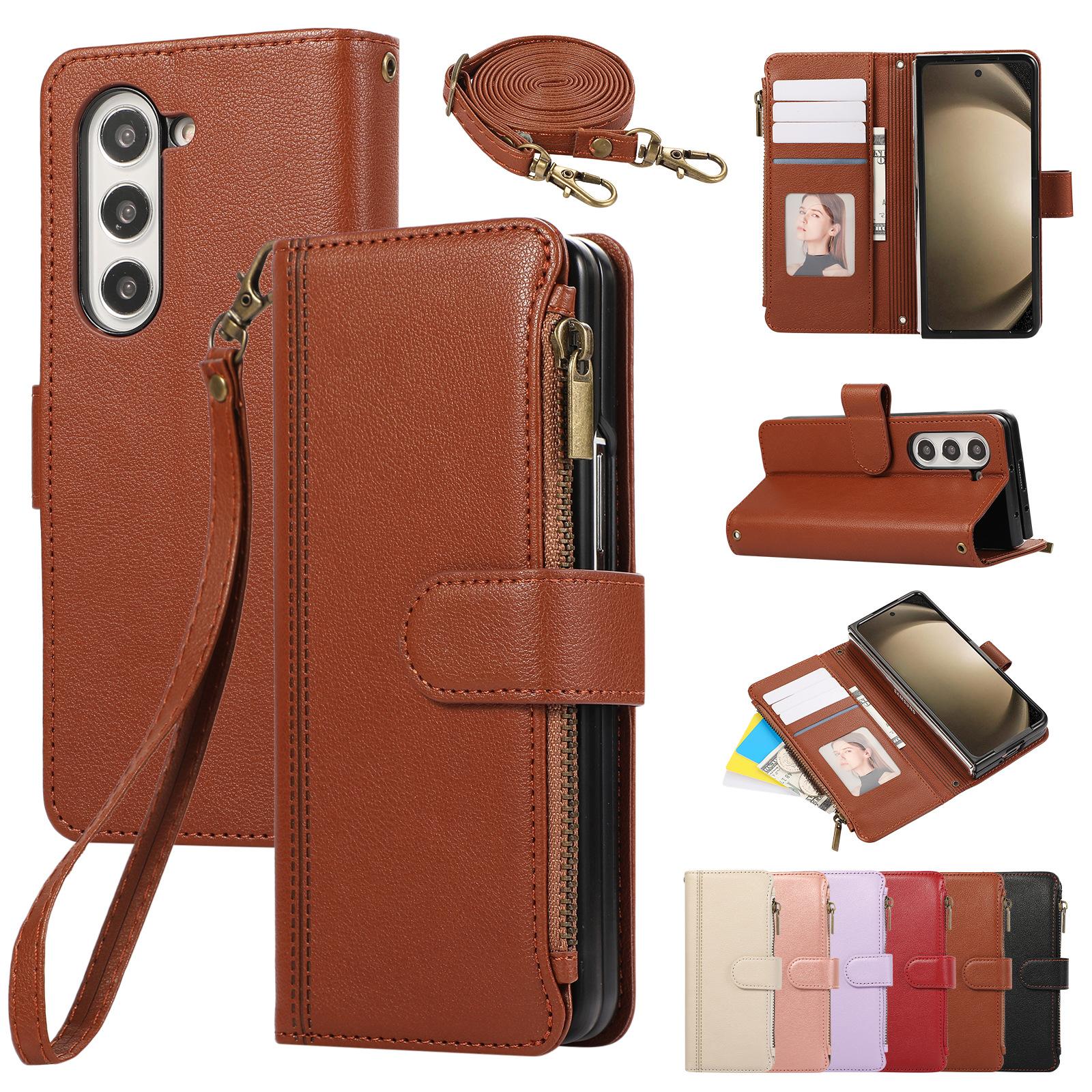 Adecuado para Funda de Cuero para Teléfono Móvil Samsung Z Fold7 Z Fold4 Billetera Multifuncional con Cremallera Tarjetero Bandolera Diagonal Cuerda
