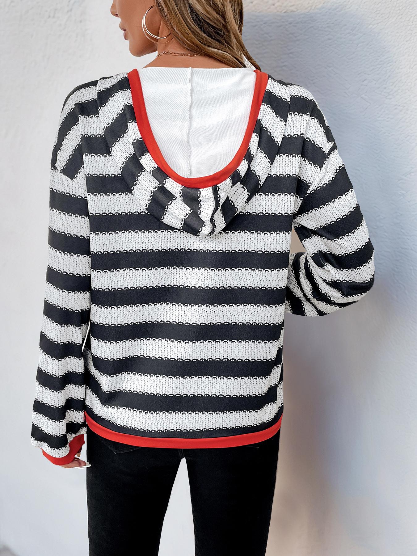 Amazon Estación Independiente 2025 Nuevo Ocio Europeo y Americano Primavera y Otoño Sudadera Delgada con Capucha Rayada Estampada Transfronteriza para Mujer