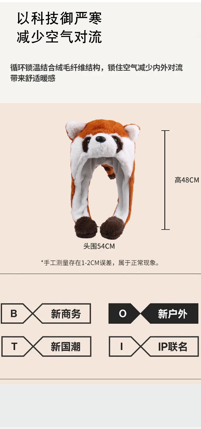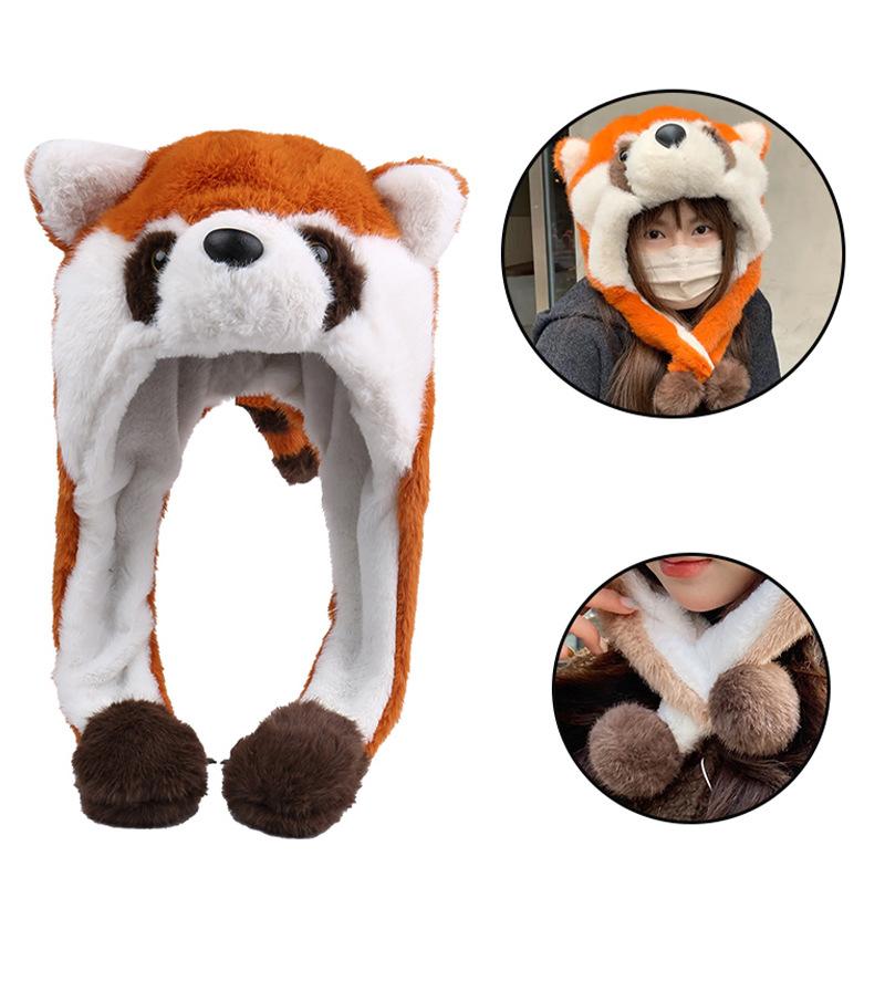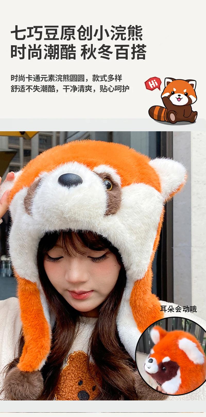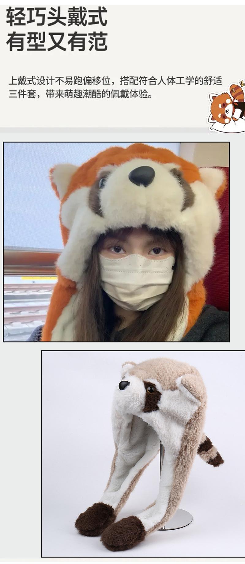 Orejas de Bolsa de Aire Lindo Mapache de Peluche Sombrero de Orejas Móviles para Mujer Otoño e Invierno Forro Polar Grueso Cálido Sombrero Protector de Orejas Sombrero Lei Feng