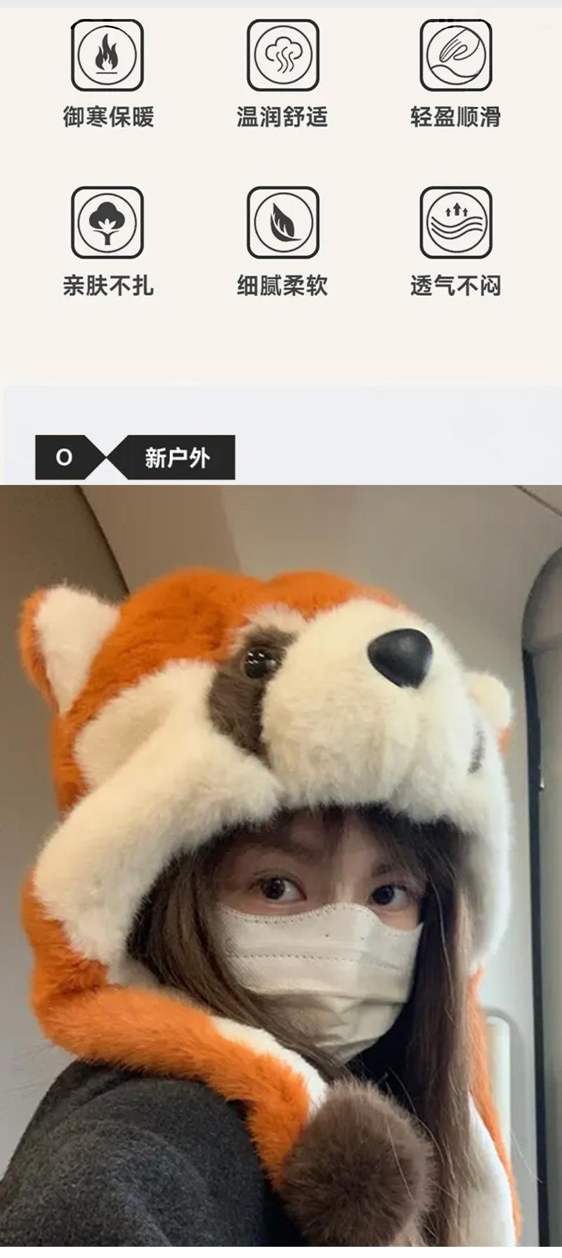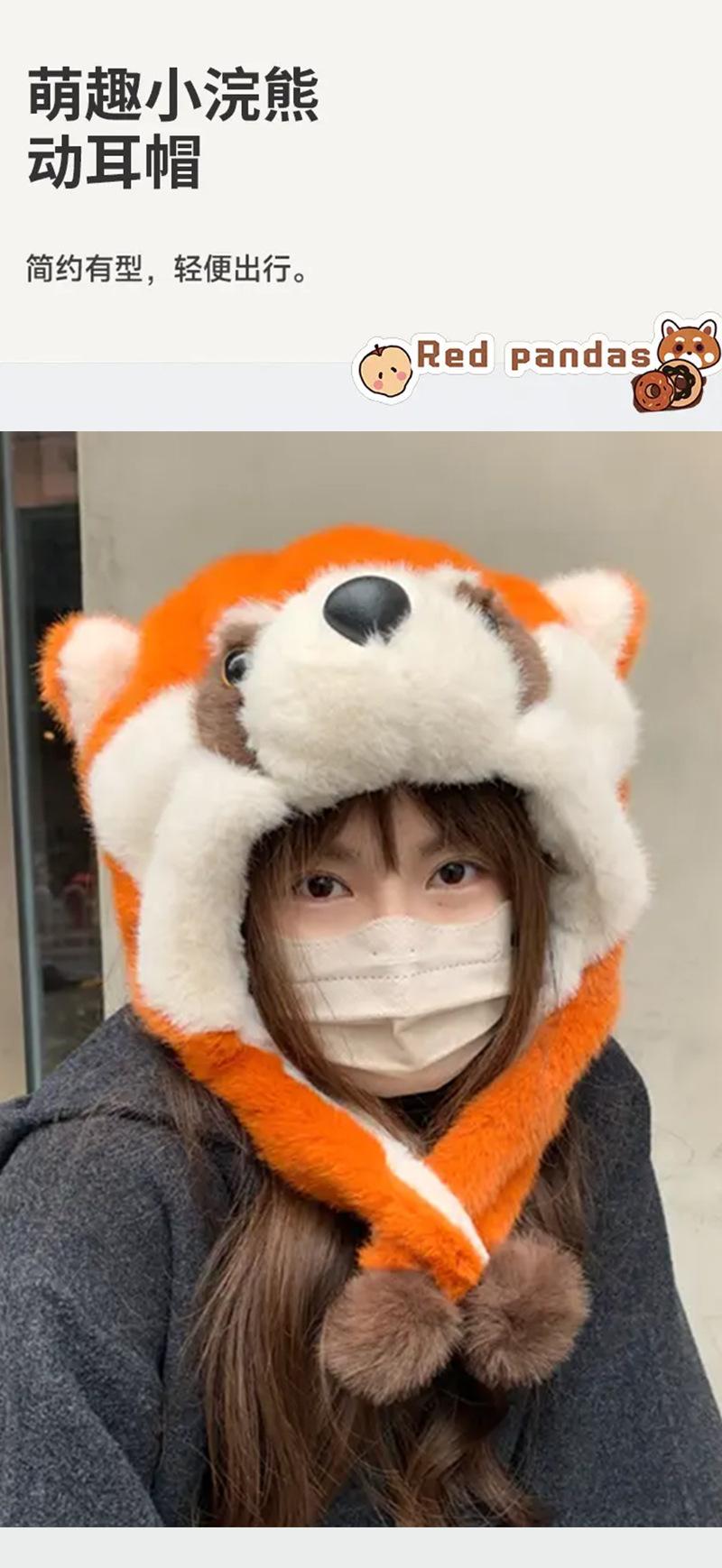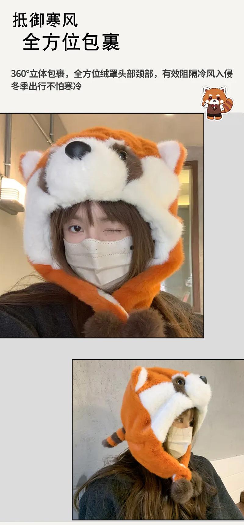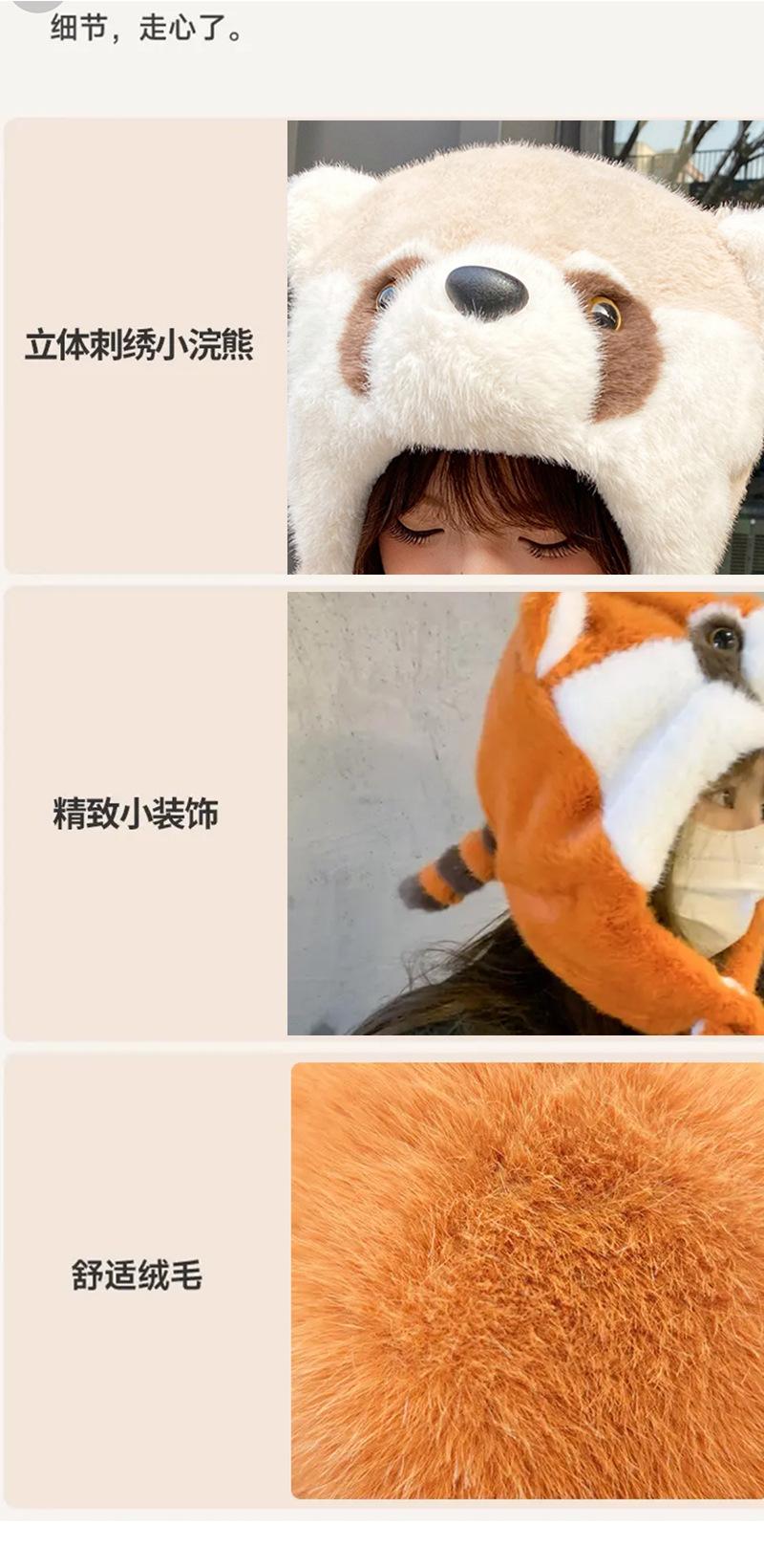 Orejas de Bolsa de Aire Lindo Mapache de Peluche Sombrero de Orejas Móviles para Mujer Otoño e Invierno Forro Polar Grueso Cálido Sombrero Protector de Orejas Sombrero Lei Feng