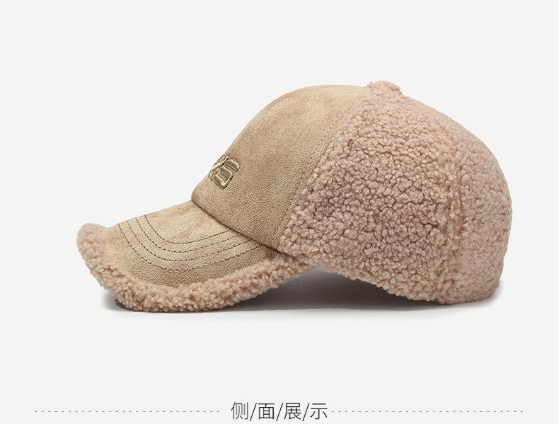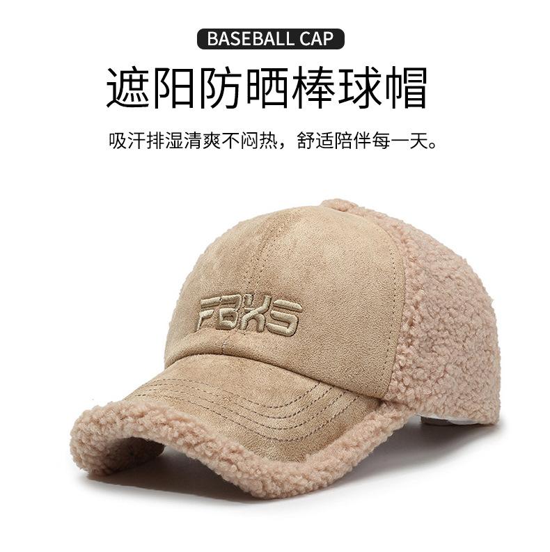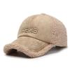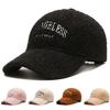 Gorra de béisbol de invierno para hombre y mujer, moda coreana, sombrero de lana de cordero bordado con letras, gorro cálido, sombrero pequeño para rostro pequeño