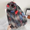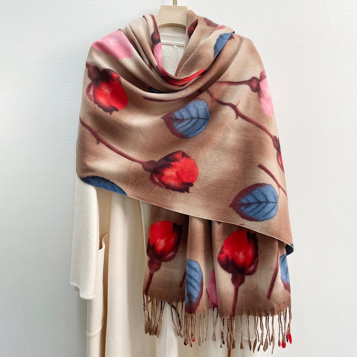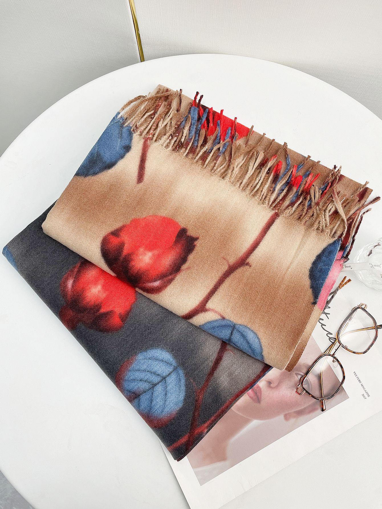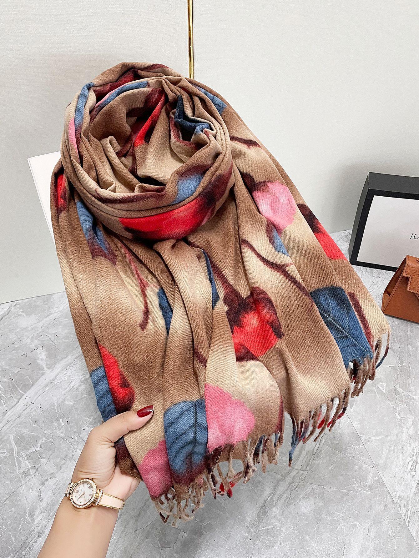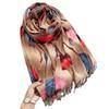 Bufanda cálida con estampado de tulipán rojo estilo coreano para mujer, chal retro artístico de verano con aire acondicionado, otoño e invierno.