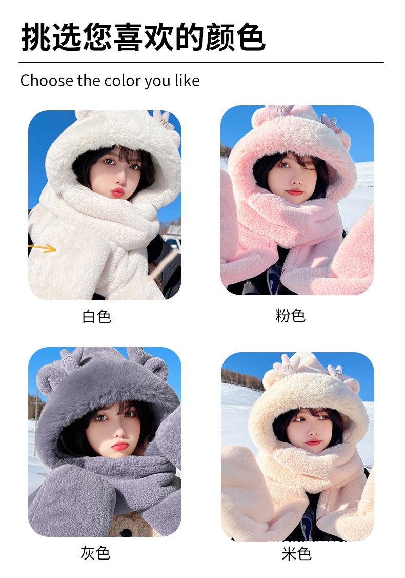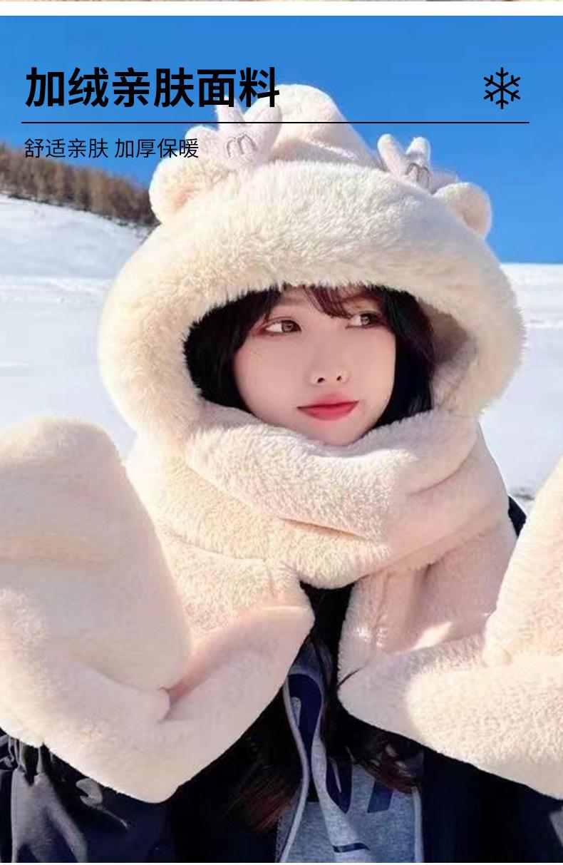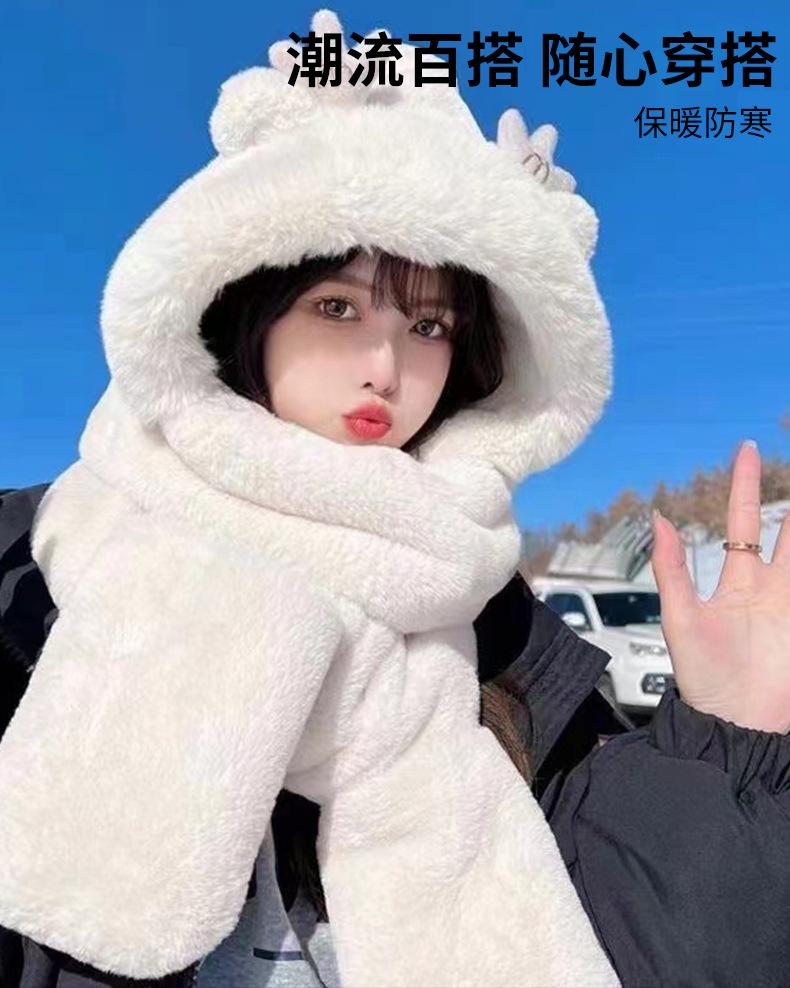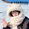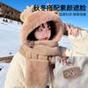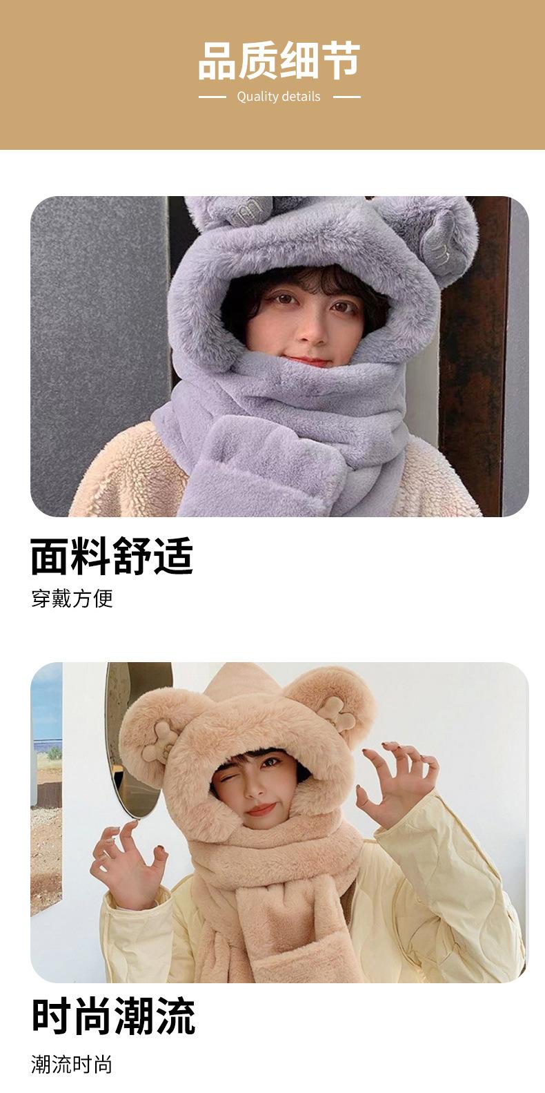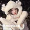 Gorro de invierno, bufanda, una pieza, guantes cálidos de oso para mujer, conjunto de tres piezas, bonito gorro con capucha y protección para las orejas para estudiantes, gorro de felpa