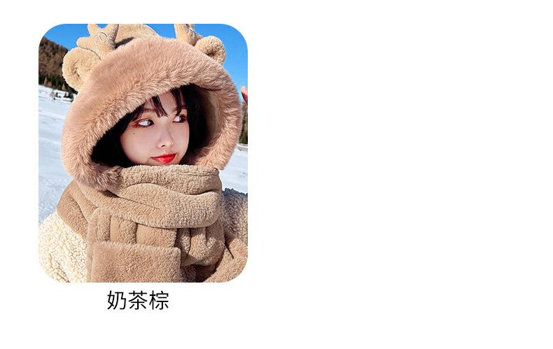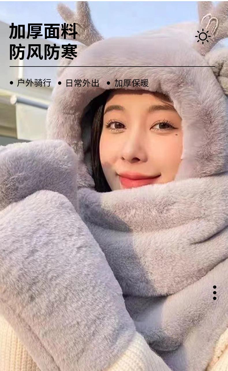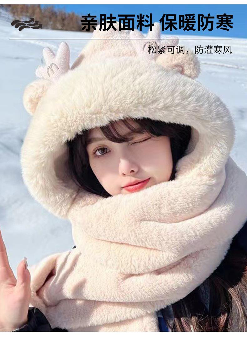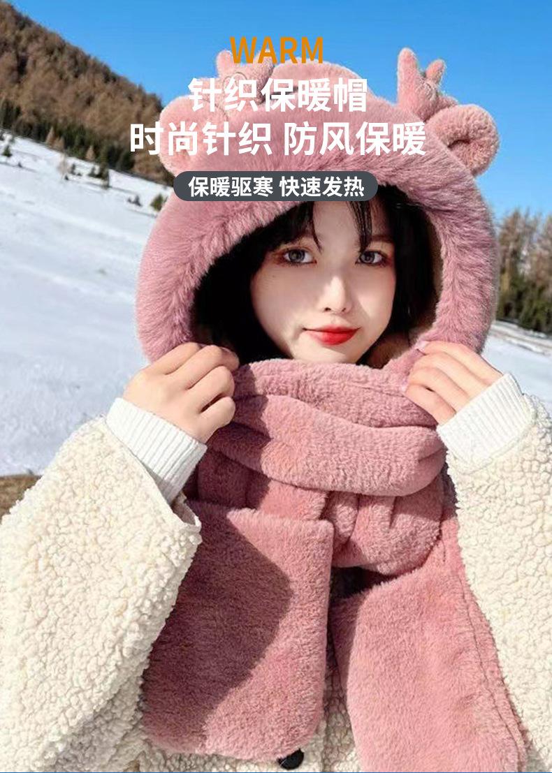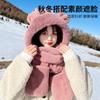 Gorro de invierno, bufanda, una pieza, guantes cálidos de oso para mujer, conjunto de tres piezas, bonito gorro con capucha y protección para las orejas para estudiantes, gorro de felpa