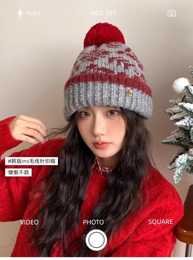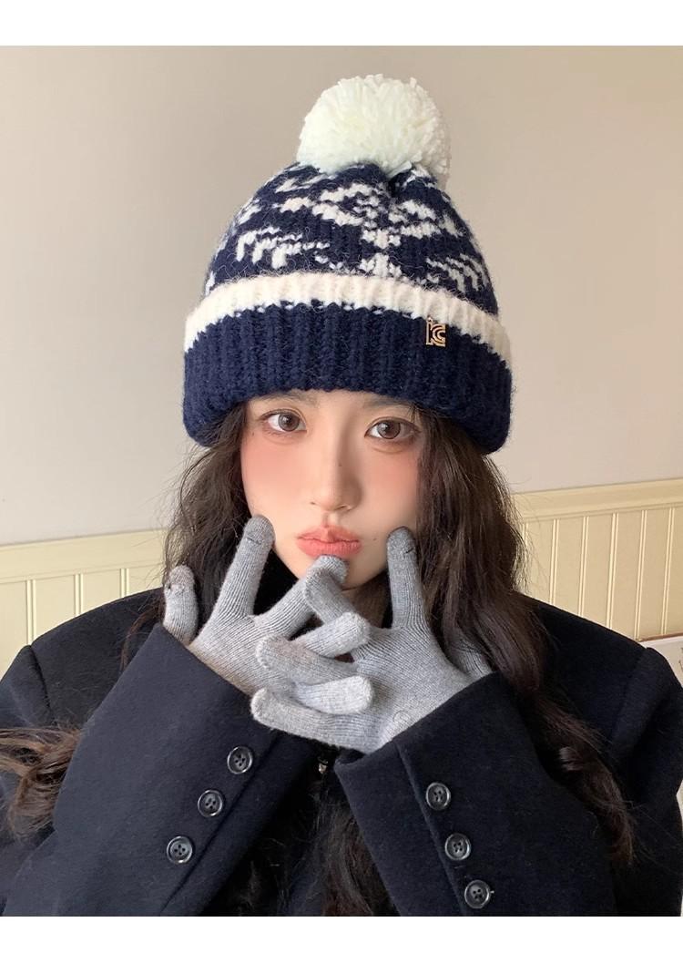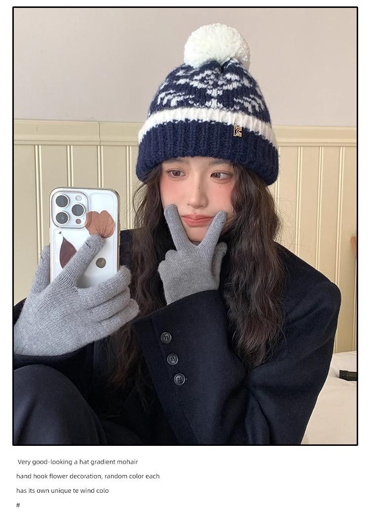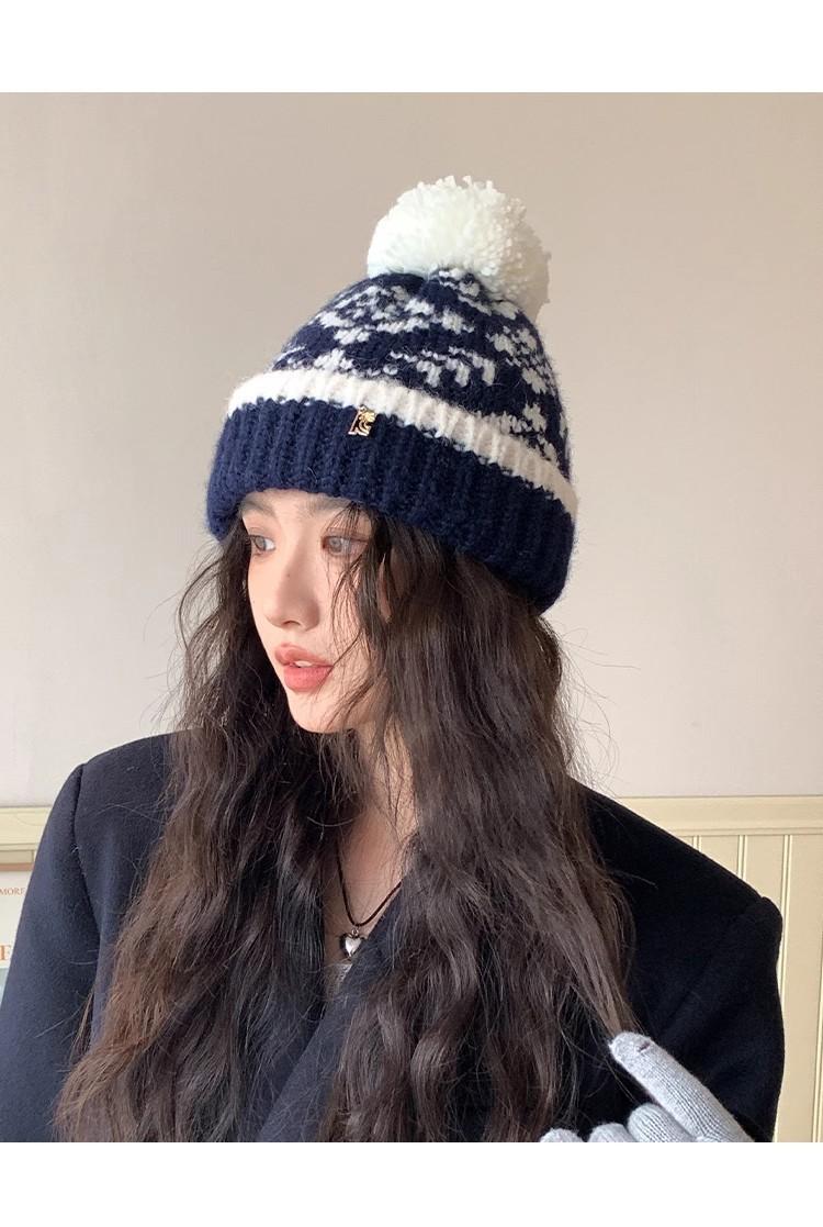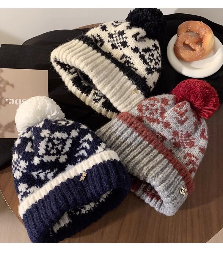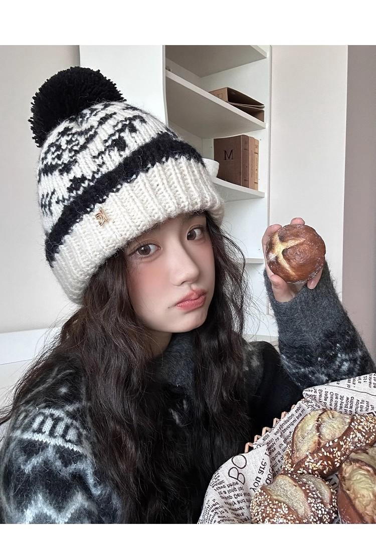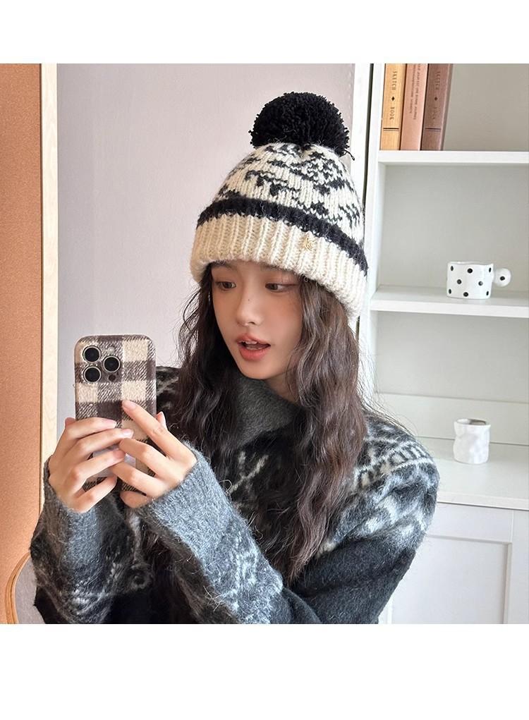 Fairisland Sombrero de Lana con Bola de Piel Retro para Mujer Otoño e Invierno Forrado de Polar Cálido Protección para los Oídos Sombrero para el Frío Sombrero Tejido Sombrero Baotou